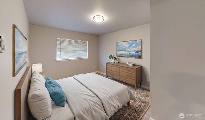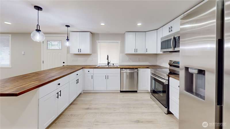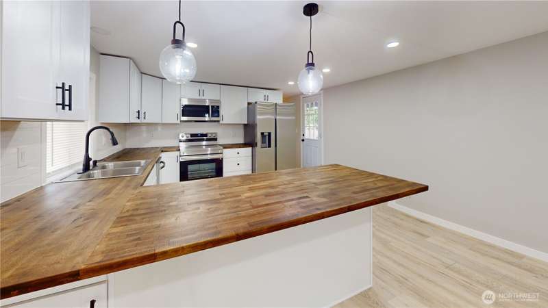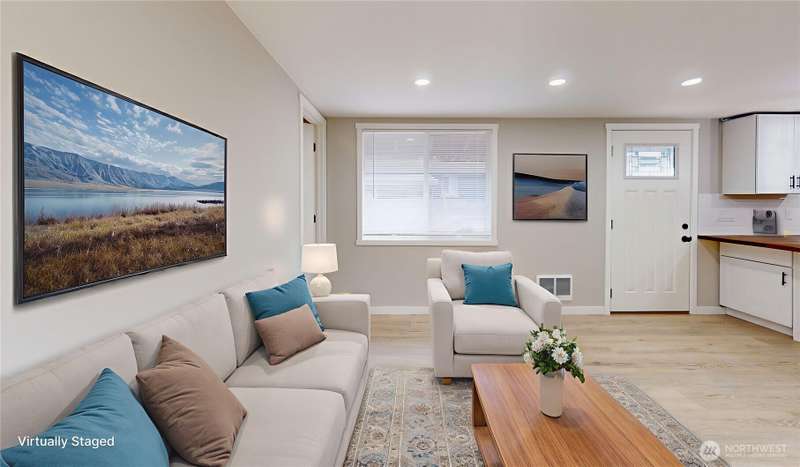 Completely updated 3 bedroom, 2 bath home—better than new! New roof, windows and blinds, endless hot water tank, interior & exterior paint, laminate wood flooring and so much more! Open floor plan with great room off the kitchen, offering flexible space for relaxing or entertaining. Gorgeous kitchen with breakfast bar, soft close cabinets and drawers, stainless appliances, tile backsplash and upgraded counter and more. Primary suite with vaulted ceiling, barn door, private bath, and large closet. Full main bath and two additional bedrooms. Fenced yard—great for gardening, play, or BBQs. Quiet, all-ages park with low space rent, community park, covered bus stop and R/V parking available. Move-in ready and packed with updates!