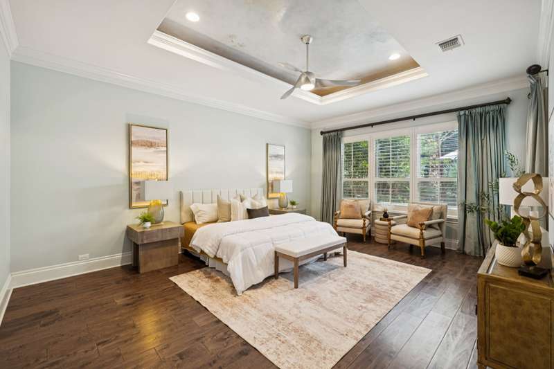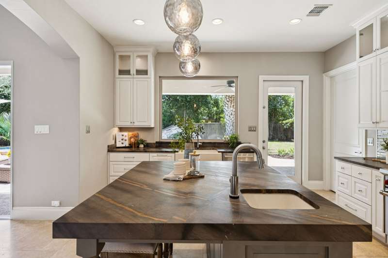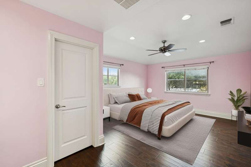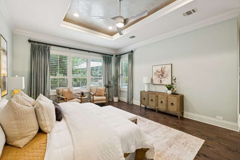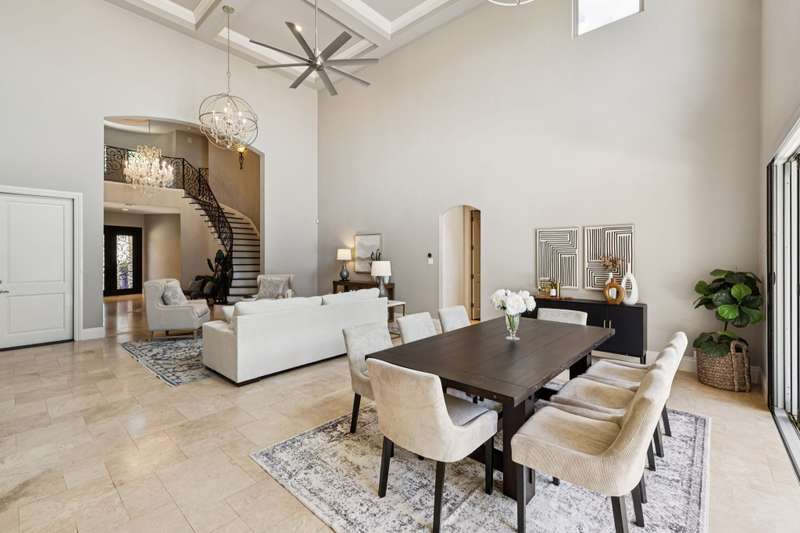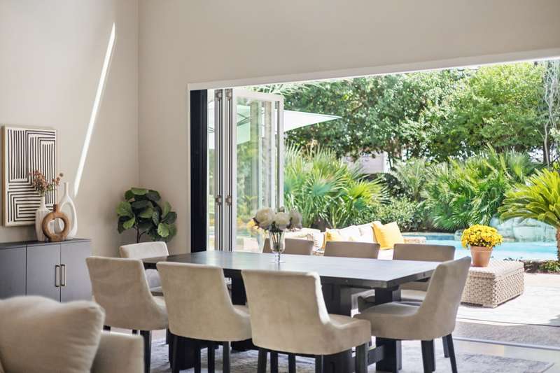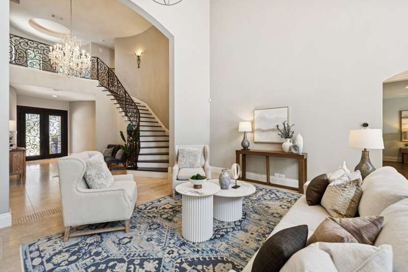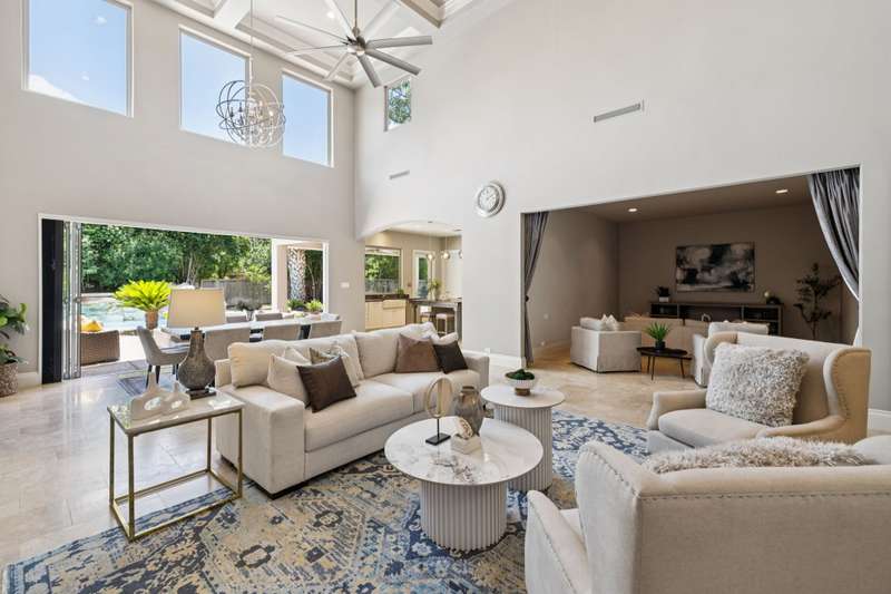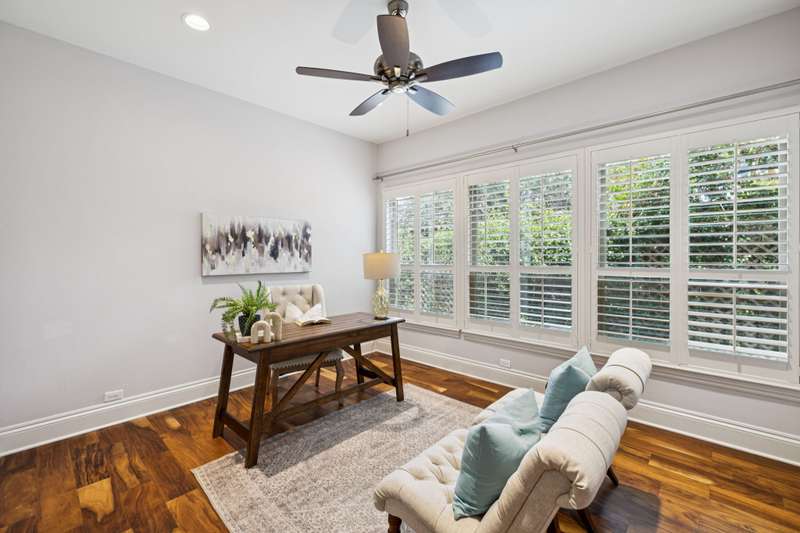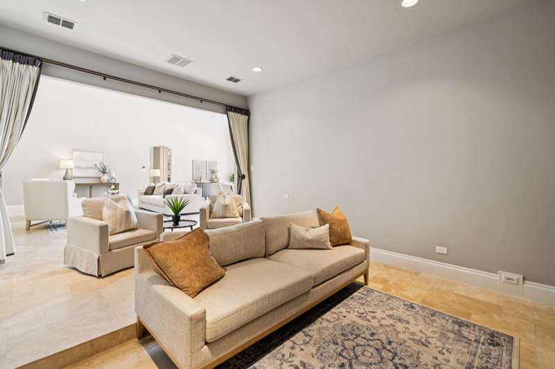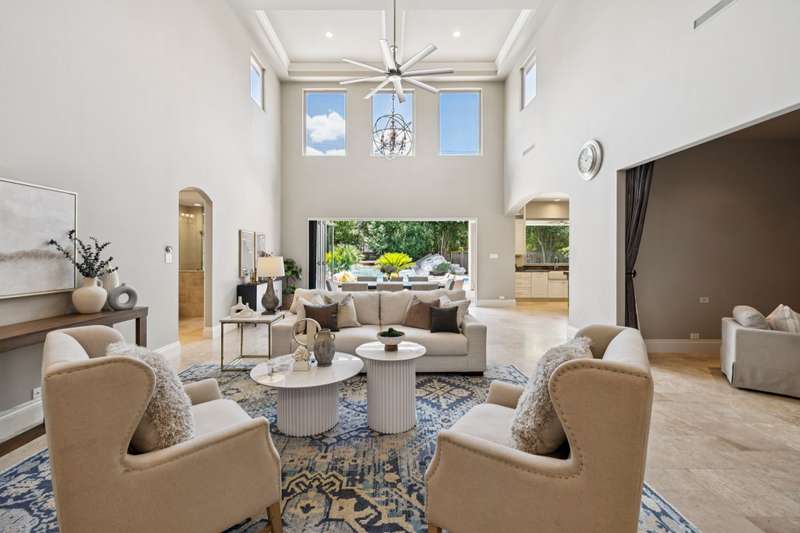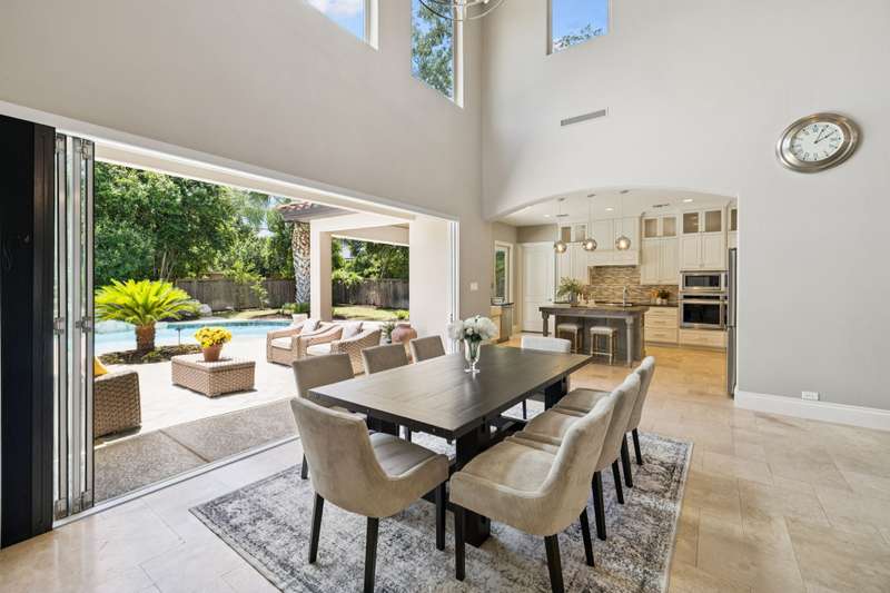 In one of San Antonio's most coveted ultra-luxury communities, this Burdick custom home pairs beautifully finished interiors with a year-round resort atmosphere. Hardwood and travertine floors lead through open, light-filled spaces with 25-foot ceilings, where quartzite and honed granite surfaces and striking light fixtures set an elevated tone. Two bedrooms, including the primary suite, are on the main level along with a private office and media room. The kitchen is anchored by a handsome stainless Wolf gas range and custom cabinetry. The primary suite features an incredible walk-in closet and a bath with a steam shower and a dramatic marble wall above the tub. Upstairs, a generous flex space adapts for storage, fitness, or a second office. Glass accordion doors open to a Keith Zars pool and spa with natural rock waterfall and slide, an outdoor kitchen with built-in grill and Green Egg, and an outdoor shower surrounded by lush landscaping and shaded terraces. 4 bed 4 bath 4258 sq ft .32 acre 25 ft ceilings Private study Media room Flex room Pool + spa w outdoor shower 3 car garage - 11/3/2025 3:15:14 AM