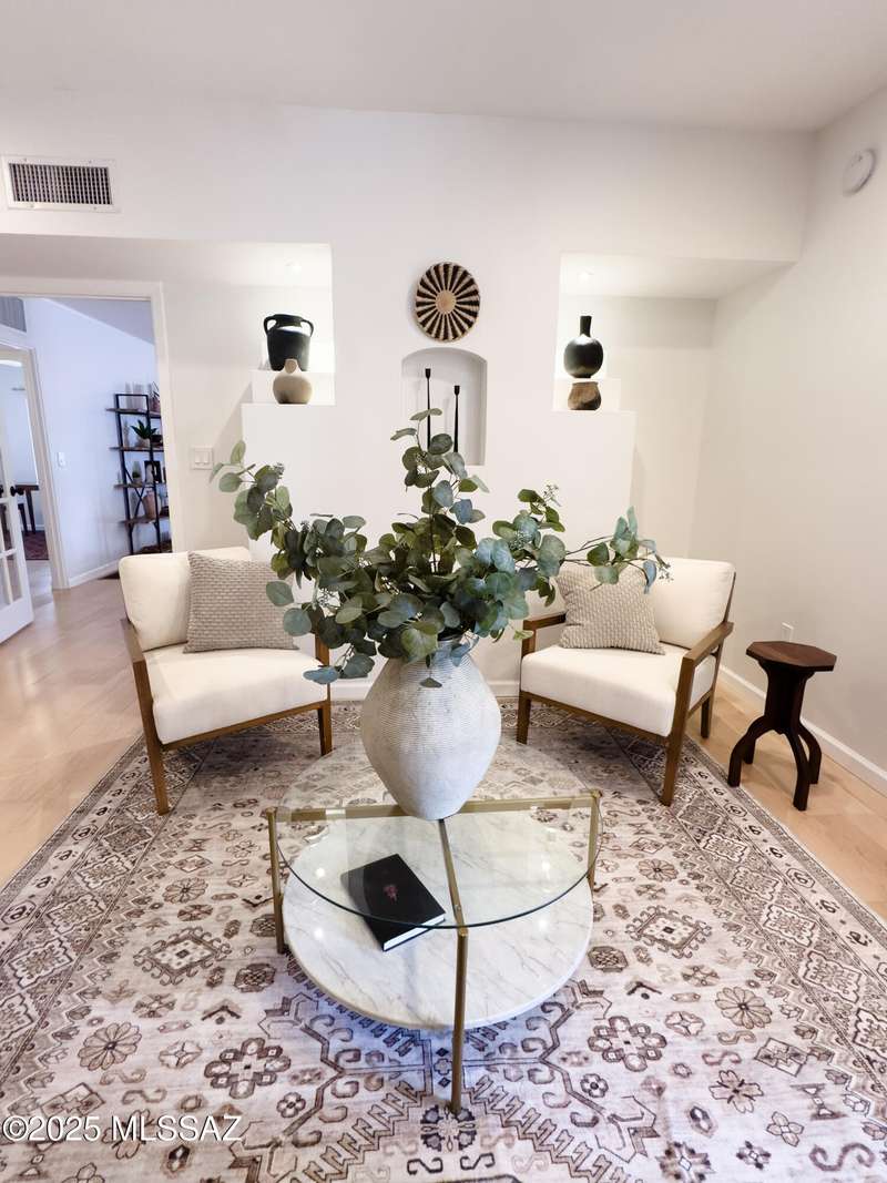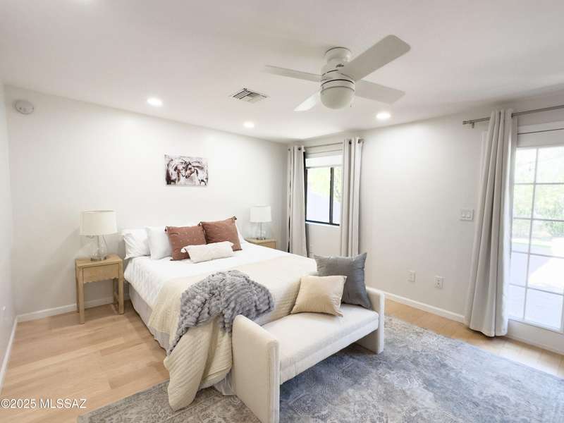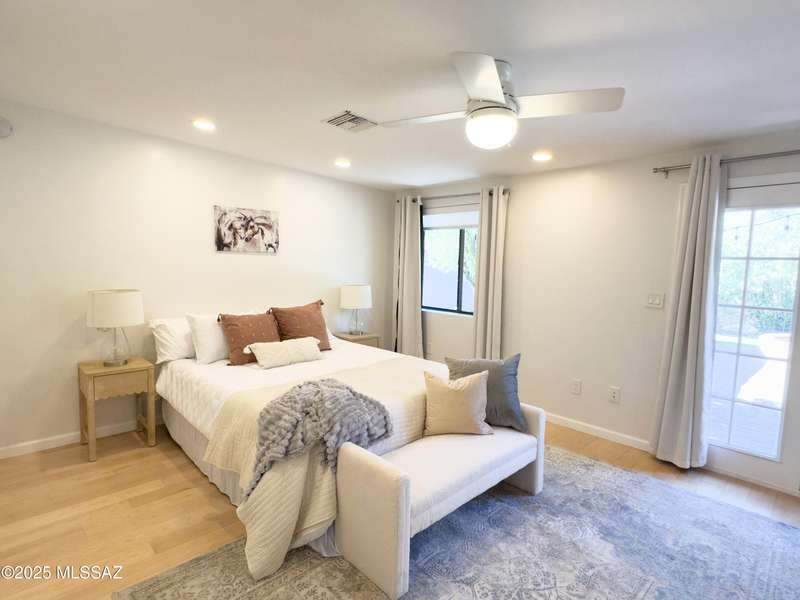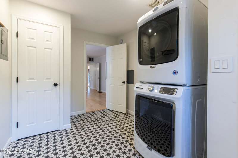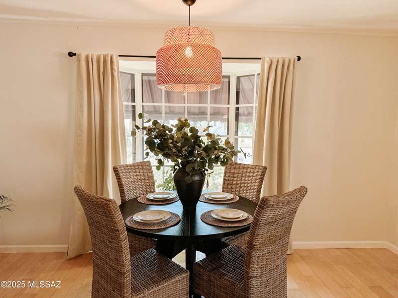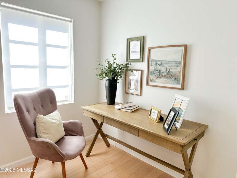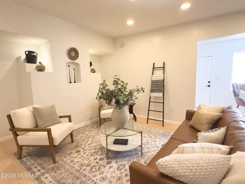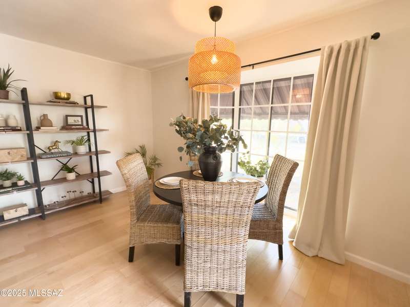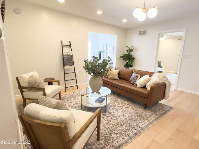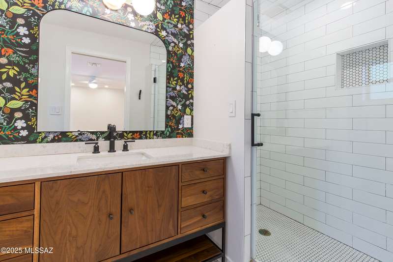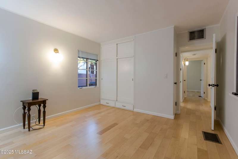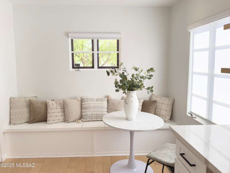 This Gem of a 3 bedroom, 2 bath bungalow perfectly blends historic charm with modern sophistication in one of Tucson's most sought-after neighborhoods. Lovingly maintained and thoughtfully updated, the home features gorgeous maple hardwood floors and a light-filled layout that invites you in.The kitchen is a stunning focal point-- quartz countertops, a crisp white tile backsplash, floating maple shelves, and a chef-worthy gas range and beverage fridge. The living room offers a stunning bay window that floods the space with natural light a true window to the neighborhood, along with a cozy wood-burning fireplace that adds ambiance to those cool desert nights.