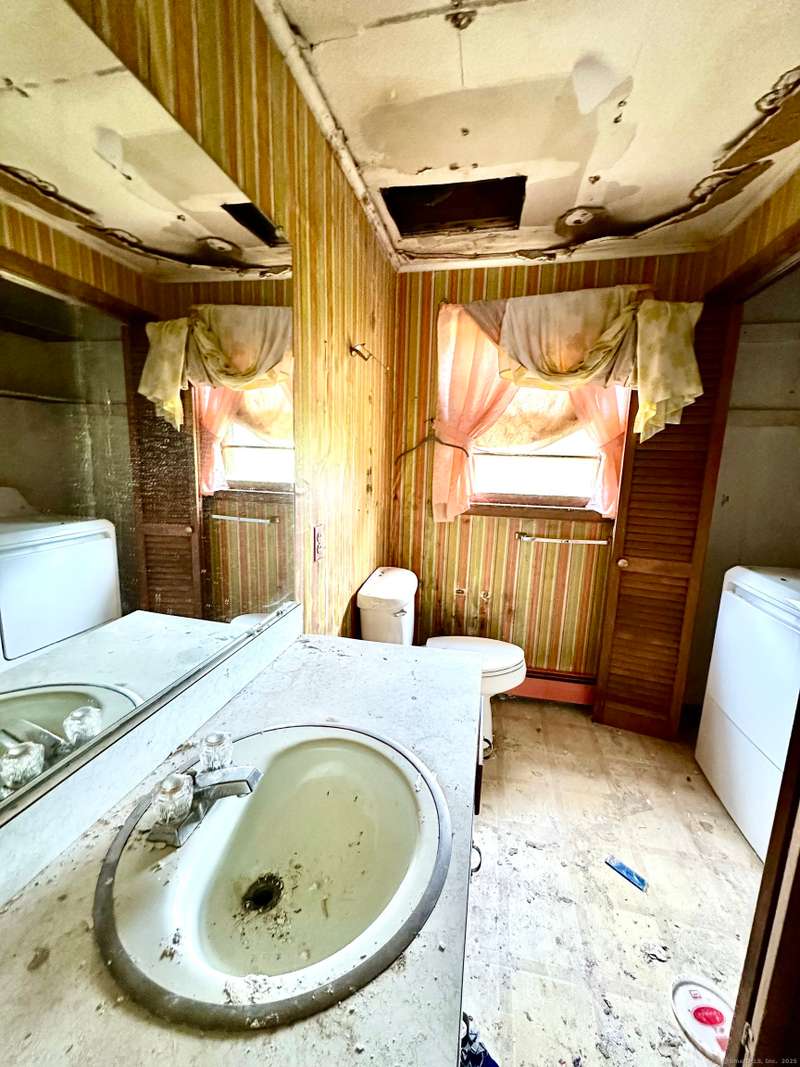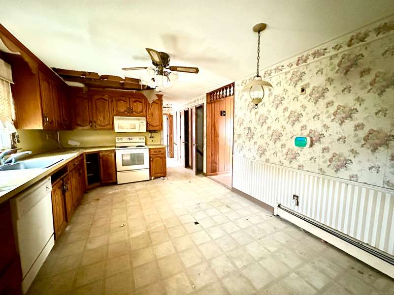 Attention investors! Looking for a winter project? This is it. This 2200 square foot Colonial with 4 bedrooms and 2.1 baths sits on nearly an acre of level land. The main level has a spacious living room, dining room, family room and kitchen, along with a half bath with laundry area. Upstairs are four generously sized bedrooms, all with good closet space, along with two full bathrooms, one of which is located in the primary bedroom. The primary also has a large walk in closet. The home has gas heat and hot water and a two car attached garage. Located in a quiet yet convenient location. Come explore the upside of this one. Possible mold present. Enter at your own risk. Highest and Best Offer are due bt Monday 10/20/25 at 3:00 PM.