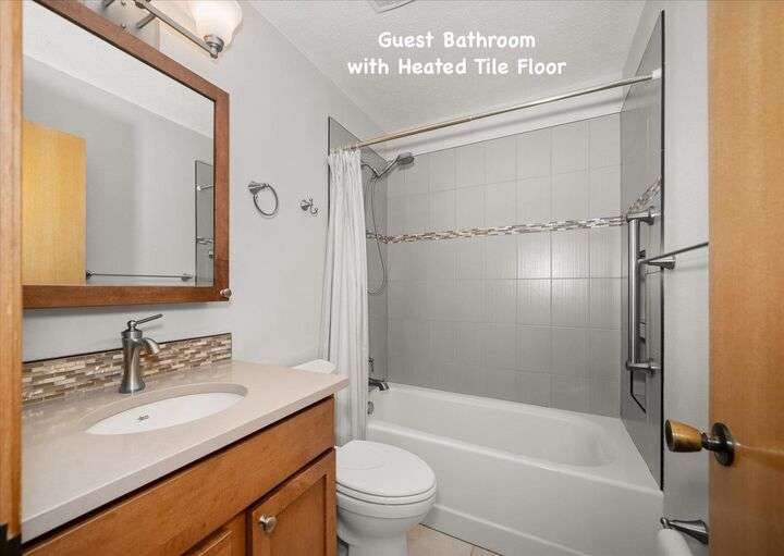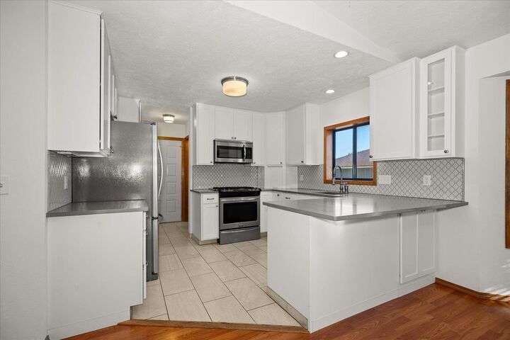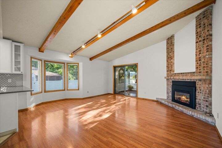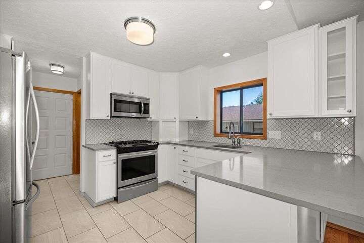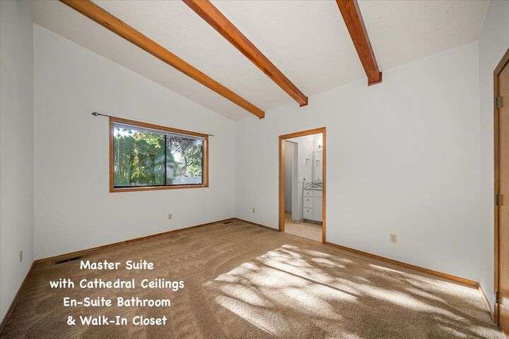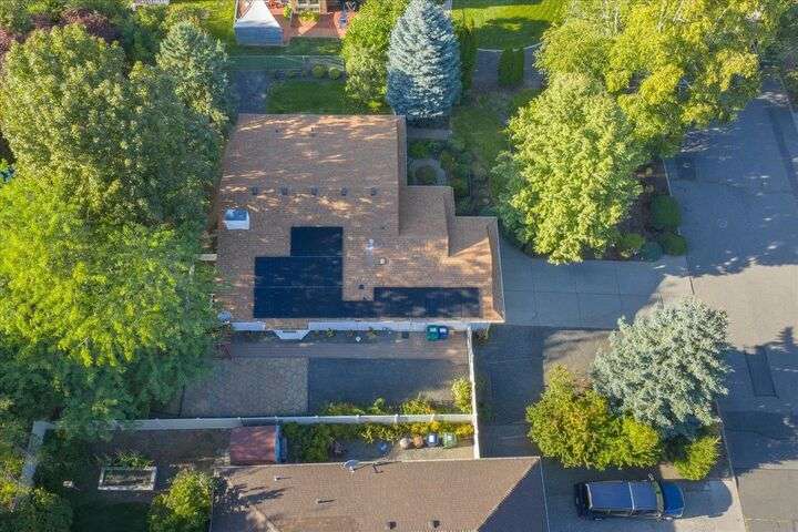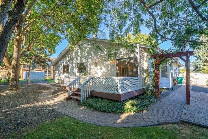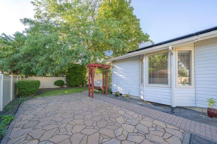 Beautifully updated 3 bedroom 3 bath single-level home on an oversized, low-maintenance 1/4 acre lot. House features cathedral ceilings in the great room with a gas fireplace and sliding door opening out to a peaceful back deck with evergreen arbor vitae flanked by large shade trees. Spacious kitchen has quartz countertops, a gas range, stainless steel appliances and new cabinets. Large den with 10-ft ceilings could be used as a home office or formal dining room. Master bedroom has cathedral ceilings and a beautifully updated en-suite bathroom with radiant floor heat and a walk-in closet with heated tile floor. Guest bath is also updated with heated tile floor. Updated 1/2 bath off laundry room. Major remodel in 2015 included kitchen, master suite, new appliances & new furnace. New roof 2013. Solar panels added 2022 (seller will pay loan at closing). No HOA. Potential RV parking. Exceptional location just 8 blocks from Manito Golf Course with abundant shopping & dining options nearby on 57th Ave or Regal St.