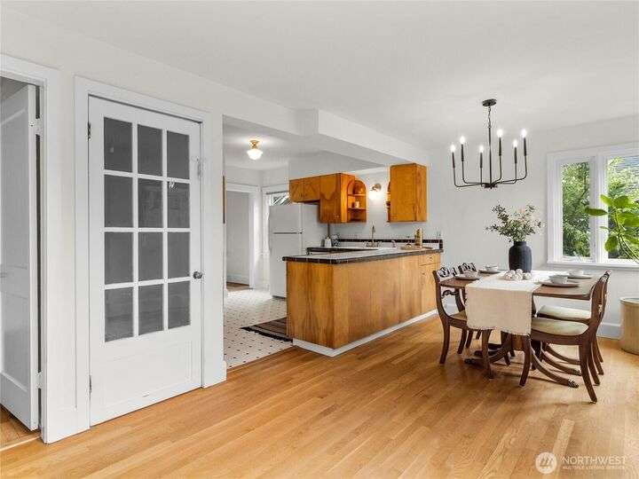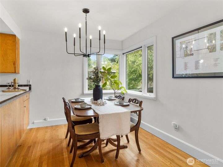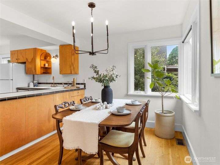 Be greeted by handsome, gleaming hardwood floors as you enter this charming Ballard bungalow. Large windows bathe spaces w/natural light, a cozy gas fireplace to keep warm on winter nights. The kitchen & dining room offer beautiful garden views. Perfect blend of modern updates & original craftsman details throughout, gracious kitchen and updated bathrooms. Lush fully fenced backyard—perfect for gardening, relaxing or entertaining. A detached garage w/additional workspace. Located in the heart of Ballard, just steps from popular shops, acclaimed restaurants, breweries, marina, Ballard Locks, & beautiful parks. Experience the unique blend of historic charm & vibrant community that makes Ballard one of Seattle’s most desirable neighborhoods.