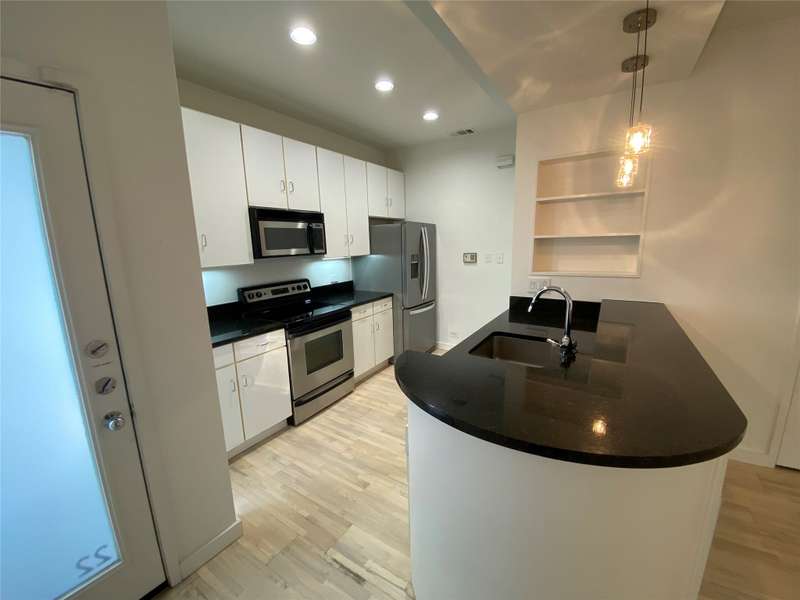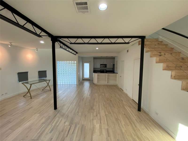 INVESTMENT OPPORTUNITY occupied by TENANTS until Aug.31, 2026. This gorgeous corner unit is located in a recently remodeled complex. With the most SF in the complex, the condo interior has an open floor plan with museum lighting which showcases unique architectural elements. On the first level are bleached hardwoods throughout, a fireplace with gas logs, and living & dining area which open to the galley kitchen. Upgraded stainless steel appliances, granite counter tops, and a breakfast bar make entertaining easy. A large, loft-style primary bedroom is on the second level with floor to ceiling bookcases and a large walk-in closet. The primary bath is complete with double sinks, marble vanity, shower, and stacked washer & dryer nearby. Two assigned, side by side, parking spaces #75 & #76 are a few steps from your deck entry front door. ENJOY urban living at it's best with Katy Trail access and walking distance to Trader Joes & Travis Walk with many restaurants and shops nearby.
