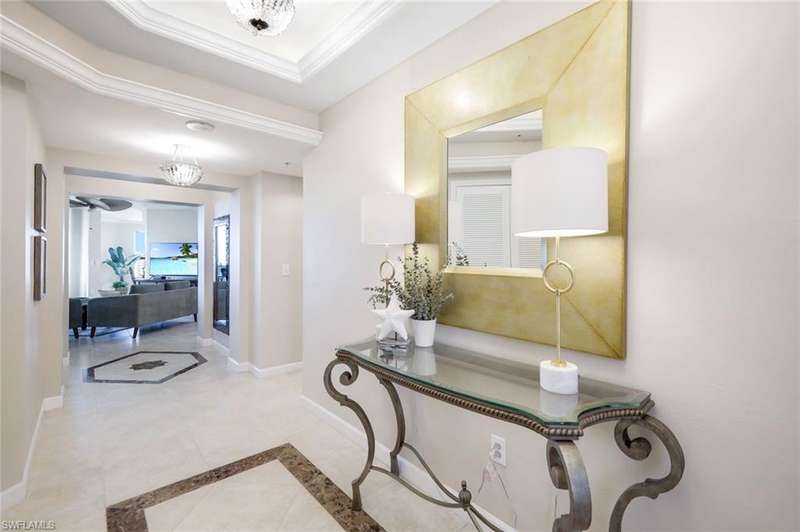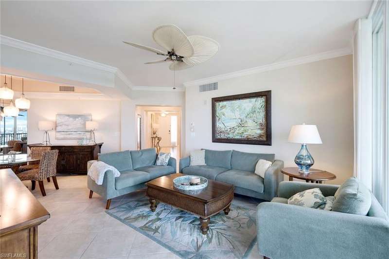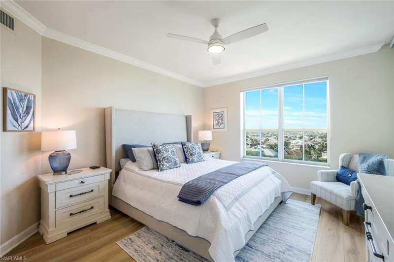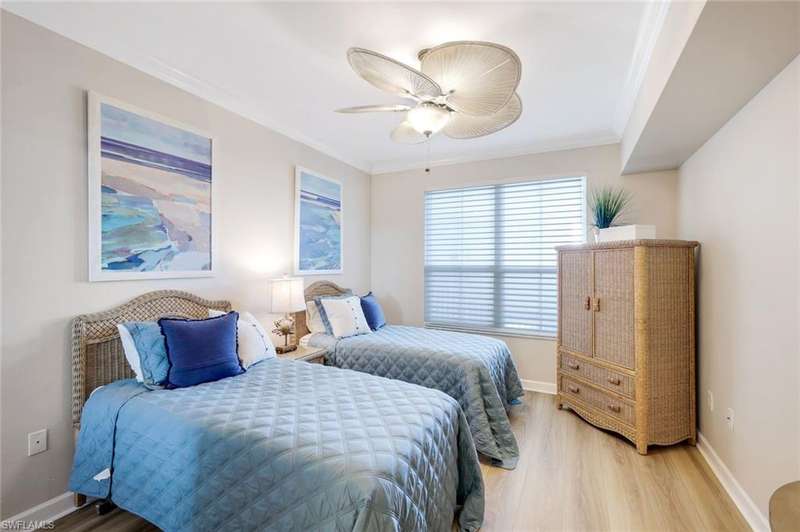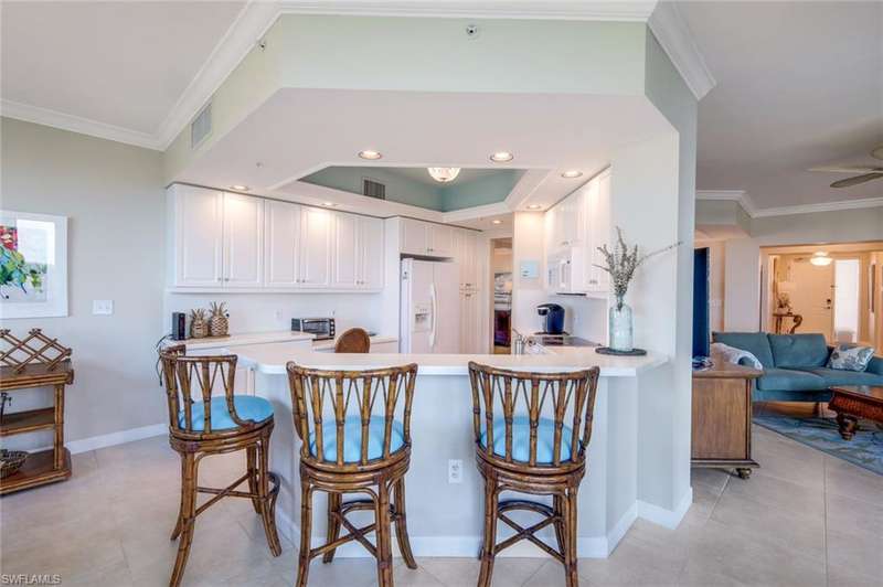 This beautifully updated condo offers a host of desirable features, including luxury vinyl tile flooring in all bedrooms, stylish new furnishings in the master suite, updated light fixtures throughout, newer kitchen appliances and ceiling fans. The vibrant artwork and beach-inspired accessories enhance the lively, coastal atmosphere. Step outside to the screened lanai, where you can unwind and enjoy views of the Gulf, Bay, and lush tropical landscaping. The Dunes presents a top-tier resort lifestyle with an impressive selection of amenities, all just steps from Vanderbilt Beach and the acclaimed Delnor Wiggins State Park. This world-class community revolves around the award-winning Club at the Dunes, offering a perfect blend of luxury and relaxation. The coastal-themed Amenities Center features a newly built 25,000 sqft clubhouse with casual dining options like the Royal Palm Room, the Sandbar, and the Tiki Bar by the pool. The spectacular pool area includes a spacious sundeck with fir