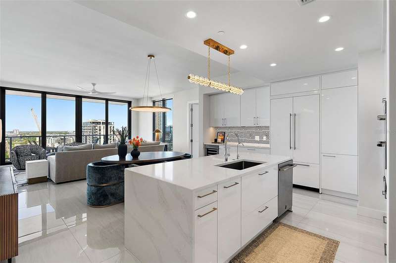 Step into a world of unparalleled luxury and refined design in this newly constructed 2-bedroom plus den, 2.5-bath condo at Saltaire. Offering an impressive 1,663 square feet of interior space and a nearly 200-square-foot balcony, this home is the perfect blend of elegance and modern sophistication. With sweeping south-facing views that span from Tampa Bay to the east and the Gulf to the west, you’ll enjoy breathtaking vistas from sunrise to sunset. Curated by the acclaimed local design team at Bee Studio Design, this residence features custom finishes and the finest attention to detail. The gourmet kitchen is a chef’s dream, complete with top-of-the-line appliances, sleek countertops, a custom backsplash, and a wine fridge paired with a stylish bar area for the ultimate entertaining experience. The designer lighting throughout the home enhances every space, casting a warm glow that complements the chic modern aesthetic. The spacious, airy layout flows seamlessly into the living and dining areas, perfect for both relaxation and entertaining. The versatile den offers endless possibilities, from a home office to a cozy reading nook or media room. Each of the spacious bedrooms is a private retreat, complete with generous walk-in closets and luxurious ensuite baths featuring the highest-quality finishes. The master suite is a sanctuary, offering direct access to the expansive balcony and stunning views of the bay. The convenient laundry room is designed for added practicality, making day-to-day living a breeze. This exceptional condo also includes two highly sought-after parking spaces and a climate-controlled storage unit for added convenience and peace of mind. Saltaire’s resort-style amenities are second to none. Residents enjoy a stunning 7th-floor pool terrace with panoramic views, a state-of-the-art fitness center, elegant club rooms, and a dog park for your furry companions. With the added security and peace of mind of a builder’s warranty, this home offers everything you need to live in absolute comfort and style. Perfectly situated in the heart of downtown St. Petersburg, you’ll have immediate access to waterfront parks, upscale dining, high-end shopping, and the vibrant energy of city life. This is the elevated downtown lifestyle you’ve been waiting for!