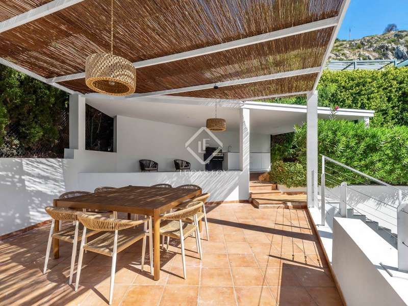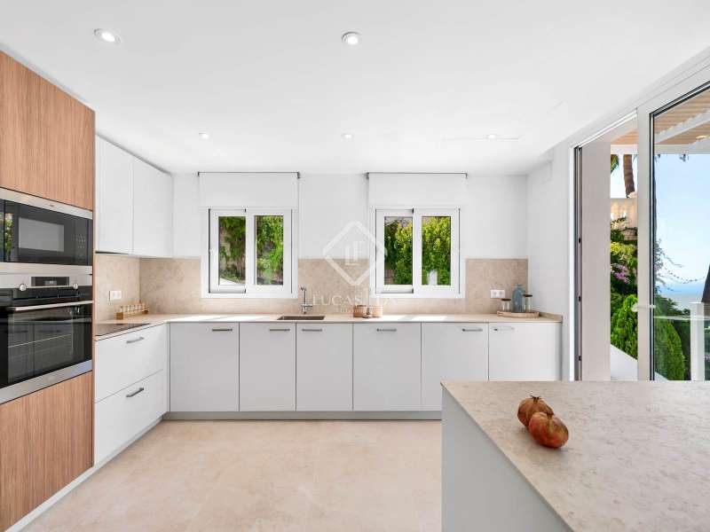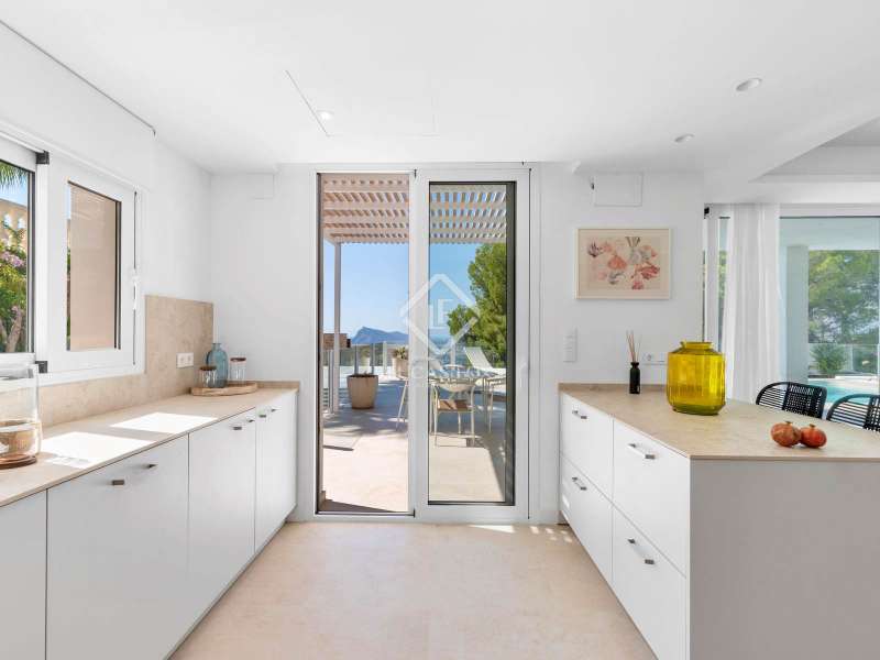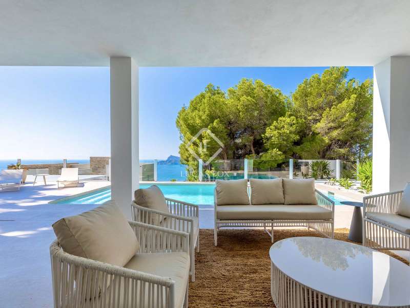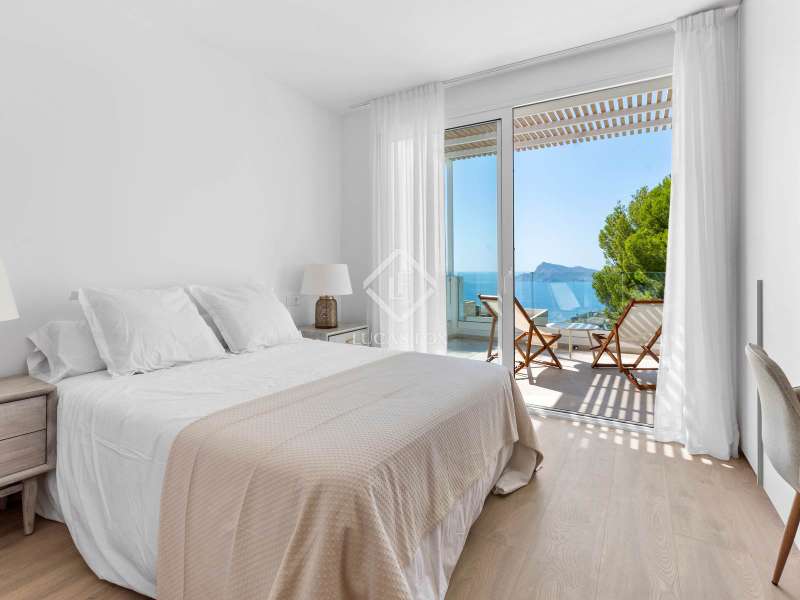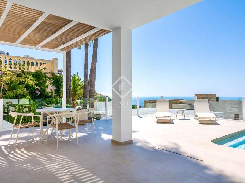 We present a detached villa located in one of the most exclusive areas of Altea, offering stunning panoramic views. This luxurious property, completely renovated to the highest standards, is now ready to move into. With a total constructed area of 235 m², the villa is spread over two floors, designed to provide maximum comfort and elegance. On the main floor , you'll find a spacious open-plan living room and dining room area, seamlessly integrated with a modern kitchen. This space extends to a spectacular terrace with a private pool, where you can enjoy magnificent ocean views. On the second floor, the villa features two double bedrooms, each with its own en-suite bathroom , as well as a stunning master suite. The main bedroom has a private bathroom and an exclusive terrace with spectacular sea views. The villa is equipped with high-end features, including premium thermal and acoustic insulation, double-glazed windows with thermal break, and an advanced aerothermics system that provides efficient heating and cooling through ducts. This exceptional property is perfect for those seeking luxury, comfort, and unparalleled views in one of the most prestigious locations on the Costa Blanca.