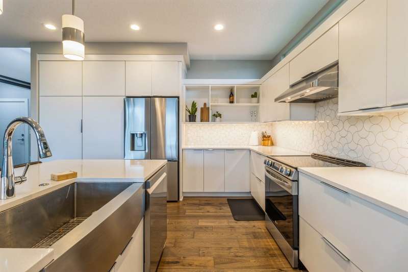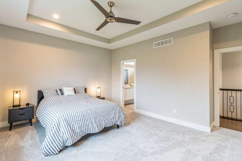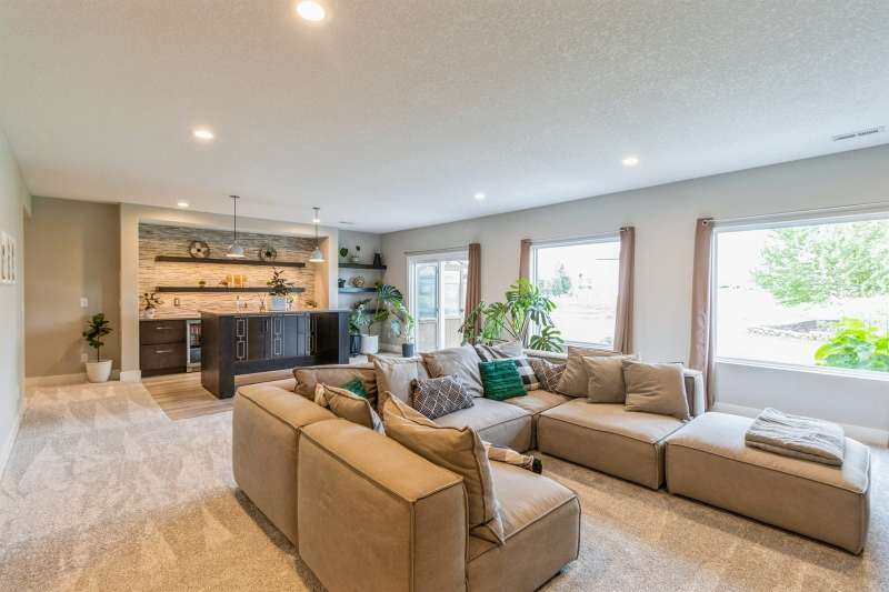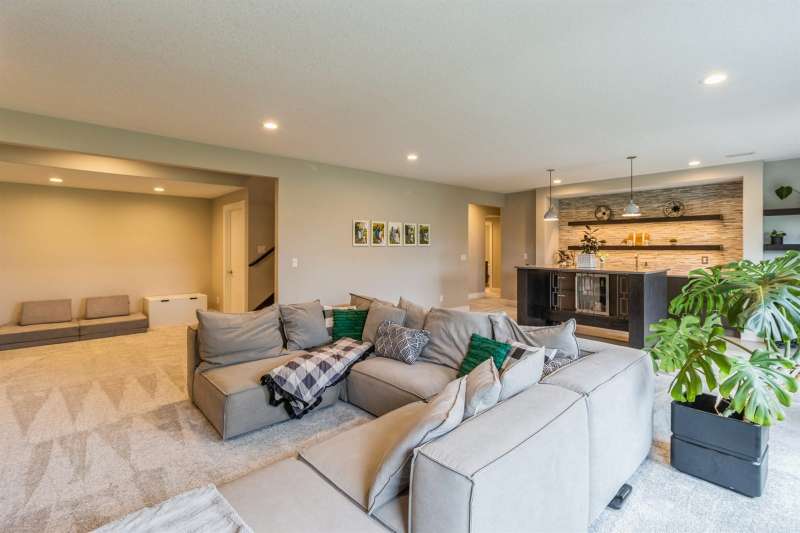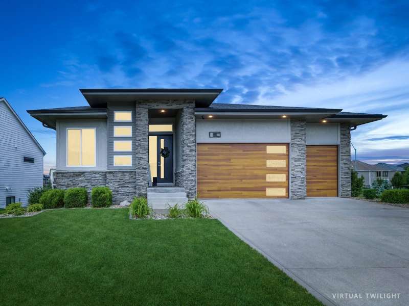 Step inside and discover a home that feels welcoming from the moment you enter. The main floor living area immediately captures your attention with its impressive floor-to-ceiling windows overlooking a landscaped backyard and a stocked pond complete with fountain. Throughout the home, modern finishes blend seamlessly with warm, inviting touches. NEW carpet throughout. The kitchen features bright white cabinetry, a striking custom backsplash, white quartz countertops, newer appliances, a reverse osmosis system, walk-in cabinet pantry, and a generous center island, plus an eating area large enough for a sizable table. The family rm offers a stone gas fireplace, built-ins, and a tray ceiling. The primary suite includes its own tray ceiling, a spacious tiled shower with glass surround, double sinks, and a walk-in closet connected to the laundry room. Two additional main-floor bedrooms share a full bath. The walkout lower level offers expansive windows, a large family rm, a custom wine bar with tile flooring and a stone accent wall,two more bedrooms, and another full bath. The oversized 3-car garage is a hobbyists dream, with Swiss Trax flooring, cabinetry, storage, and a 220V heater.