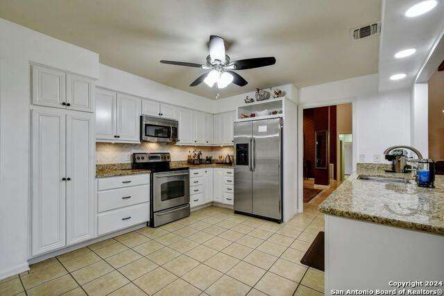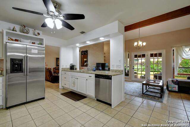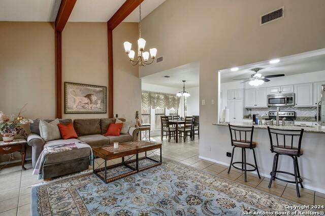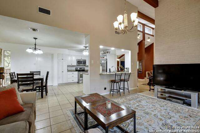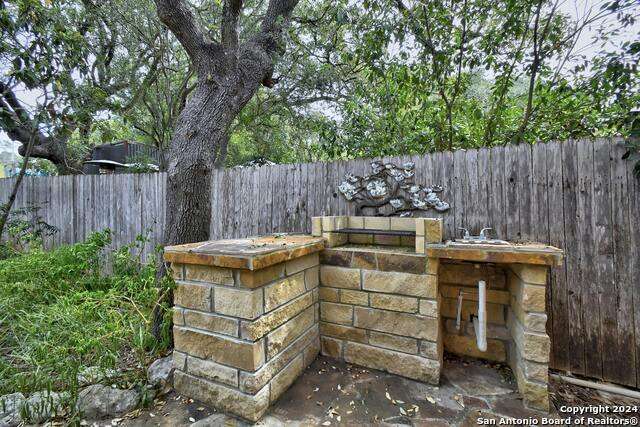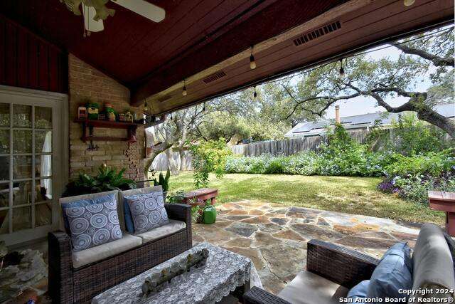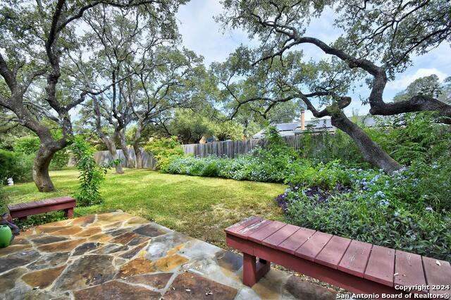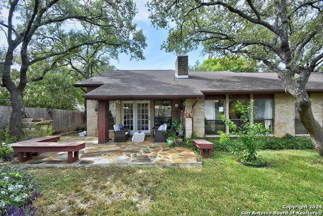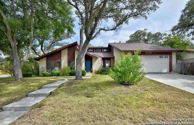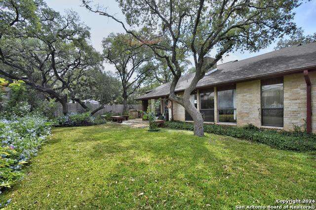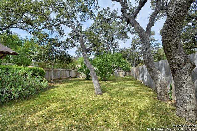 Charming corner lot in the desirable Woods of Shavano, featuring a beautifully landscaped backyard. This home showcases modern, newly remodeled bathrooms and kitchen. As you enter, you'll be greeted by an open-concept layout with high ceilings and abundant natural light, complemented by a cozy fireplace for creating lasting memories. Enjoy distinct living, dining, and breakfast areas that provide privacy for intimate gatherings or entertaining. Additional highlights include ample storage, walk-in closets, a water softener, reverse osmosis system, sprinkler system, bar area, and a convenient walk-in laundry closet, all with no carpet throughout. Situated on over a quarter acre, the attractive front entrance and landscaping enhance its curb appeal. The covered backyard patio and outdoor grill make it perfect for entertaining guests in privacy. This well-maintained home comes with zero mandatory HOA fees and is located in the highly regarded NISD school district. 4435 Meredith Woods is truly the perfect sanctuary. Schedule a tour today and experience the charm of this "home-sweet-home" tucked away in the peaceful Woods of Shavano!
