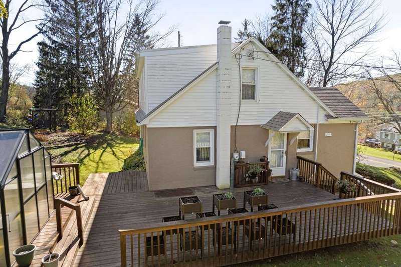 Welcome to this well-maintained 4-bed, 2-bath Cape offering comfort, functionality and country charm. The bright kitchen features windows with peaceful hill views, and the adjoining living area creates a warm, inviting space. Replacement windows throughout! Central A/C. Convenient first-floor living includes bedroom, full bath with walk-in shower, and laundry area?ideal for flexibility and accessibility. Upstairs, you'll find three additional bedrooms and a second full bath. The finished lower level provides a cozy gathering space with an epoxy floor, fireplace, and walk-out entrance. Ample storage/space for a workshop or hobby area. Set on a beautiful .41-acre lot this property includes a greenhouse, raised beds, a covered front porch?and open deck to enjoy outdoor living. A new furnace and roof (installed 2023) adds peace of mind. Located in the Windsor School District, this home offers a country setting close to town?a wonderful blend of rural tranquility and everyday convenience.