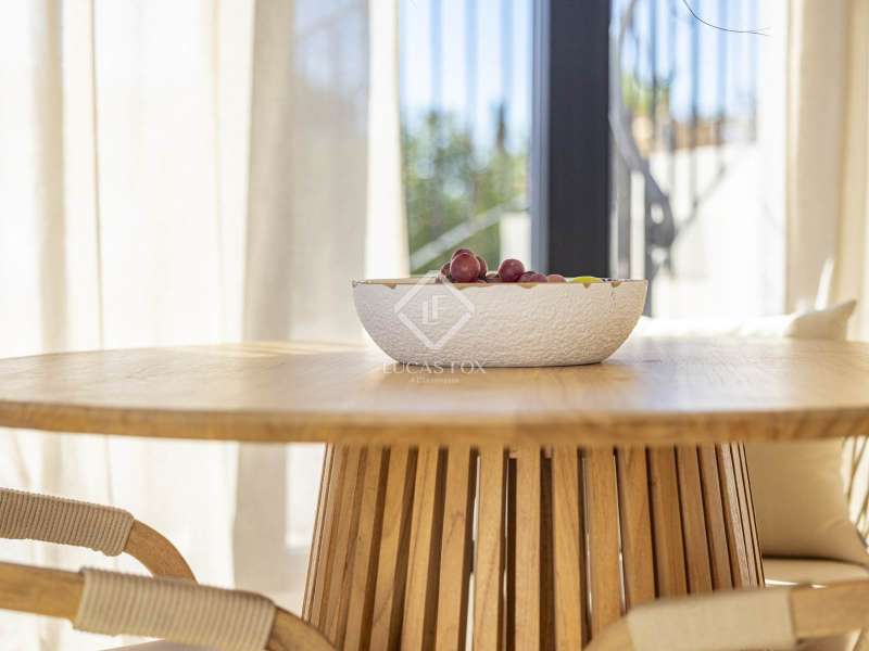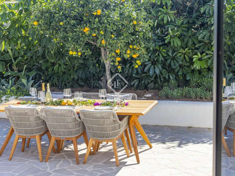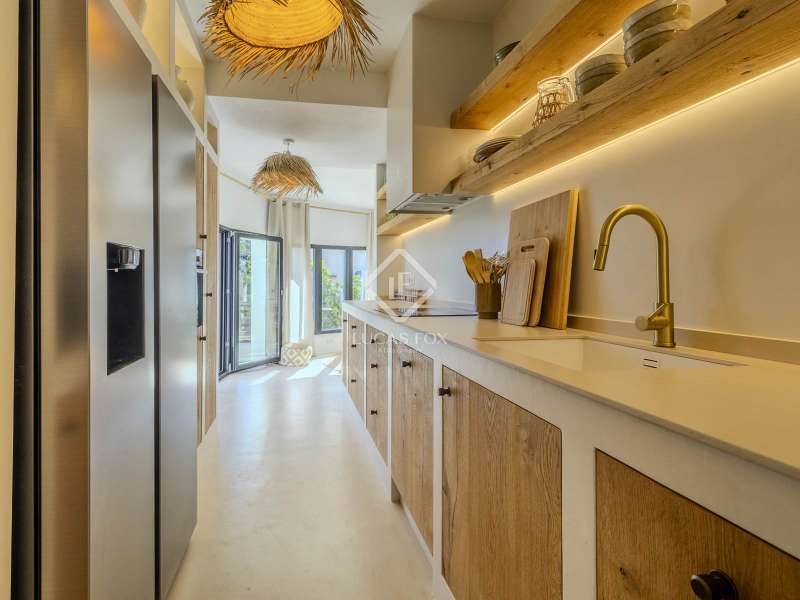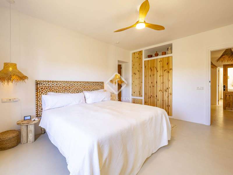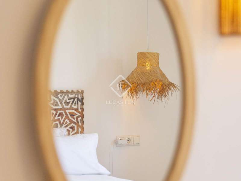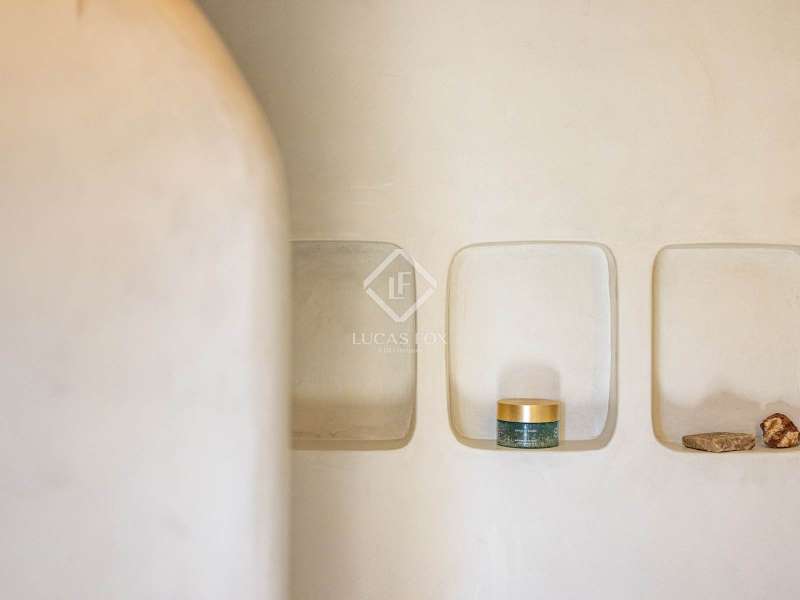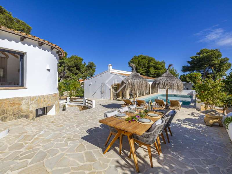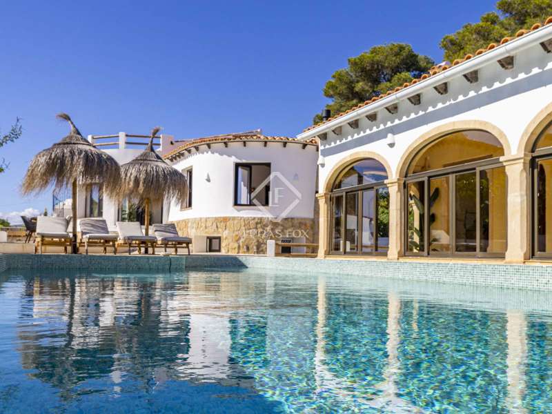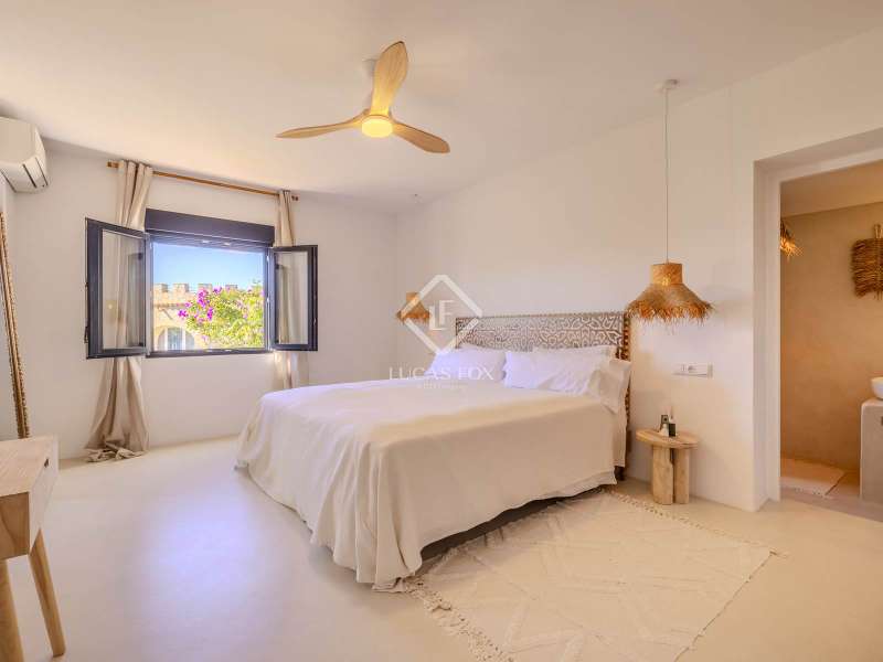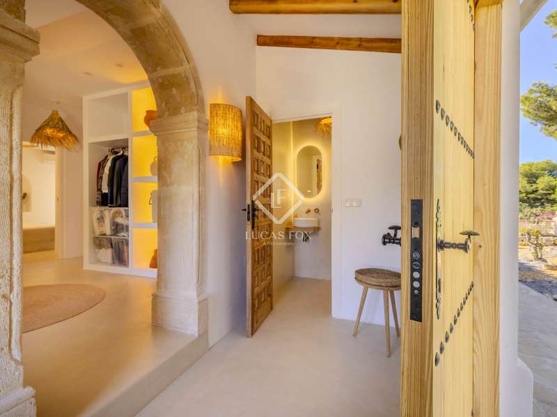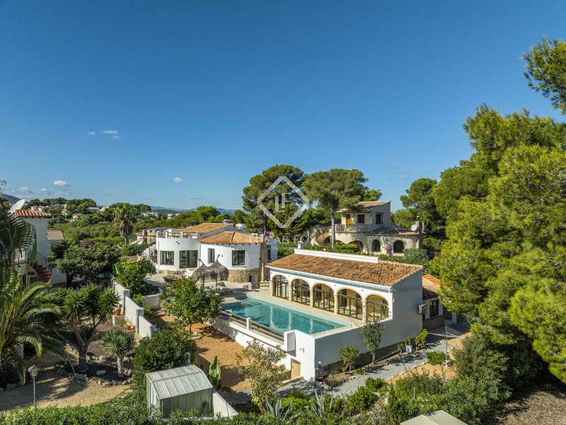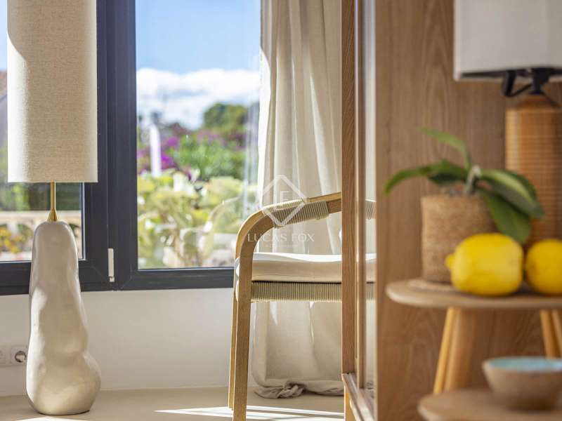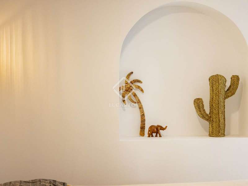 Located in the sought-after residential area of Balcón al Mar, this superb property enjoys an elevated position, ensuring wonderful sea views throughout. Recently completely renovated, the home beautifully combines timeless Mediterranean charm with modern luxury. The renovation includes all new double-glazed doors and windows, microcement floors, and original sandblasted Castellano doors, preserving character while enhancing comfort. The Ibiza-style kitchen features high-quality equipment, sleek finishes, and a relaxed yet elegant design. Access to the property is available via a pedestrian gate or through the private garage, which offers parking for one large vehicle. From the garage, an internal staircase leads to the lower level of the house, while a second staircase connects to the main hallway. The beautiful wooden front door opens into an elegant entrance hall with a guest toilet and built-in wardrobe. From the central hallway, we can access two bedrooms, both with their own en-suite bathrooms, the spacious living room, and the fully equipped kitchen. From the kitchen, the bright dining area opens through glass doors onto the terrace, where we can enjoy views of the pool, garden, and sea beyond. The living room also enjoys sweeping sea views and features a cozy wood-burning fireplace, adding warmth and ambiance during the cooler months. Natural light floods the home through its many windows, and there is hot and cold air conditioning throughout for year-round comfort. The lower level of the house offers a laundry and storage room that also houses all the technical installations. In addition, there is a versatile room with an en-suite bathroom and direct access to the terrace, ideal for use as a gym, spa, or extra guest bedroom. A winding staircase from the main terrace leads up to the roof terrace solarium, a true retreat offering both space and spectacular sea views, creating a tranquil and luxurious atmosphere. The pool terrace is one of the property’s standout features. The entire exterior has been newly tiled with “piedras alemán”, adding a refined and contemporary touch. The 10x5 metre swimming pool has been fully retiled with elegant Bali green tiles, surrounded by ample space for sunbathing and relaxing, as well as an outdoor shower. The low-maintenance Mediterranean garden is landscaped with gravel, mature hedges for privacy, and a variety of plants and fruit trees well-suited to the local climate. The property also includes a separate guesthouse, offering its own entrance, fully equipped kitchen, covered naya/living area, and a large double bedroom with an en-suite bathroom, ideal for guests or extended family seeking independence and privacy. On the side of the guest casita, there are two additional storage spaces, and at the rear of the property, an extra office space with its own terrace and sea views, a perfect spot for working from home in a serene setting. This wonderful, fully renovated villa, with its separate guesthouse, versatile additional spaces, and breathtaking sea views, is perfect as a family residence or as a luxurious Mediterranean retreat. Call us today to arrange your private viewing.
