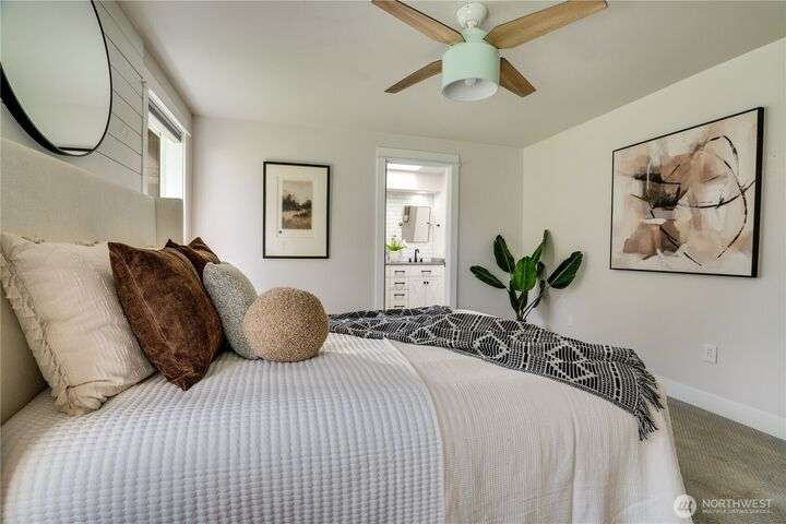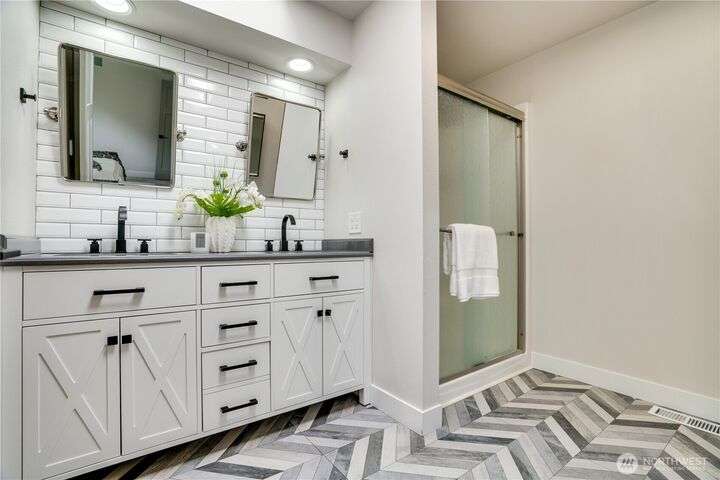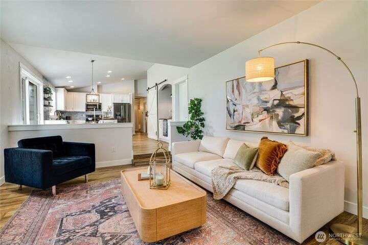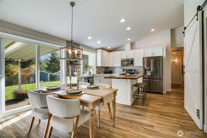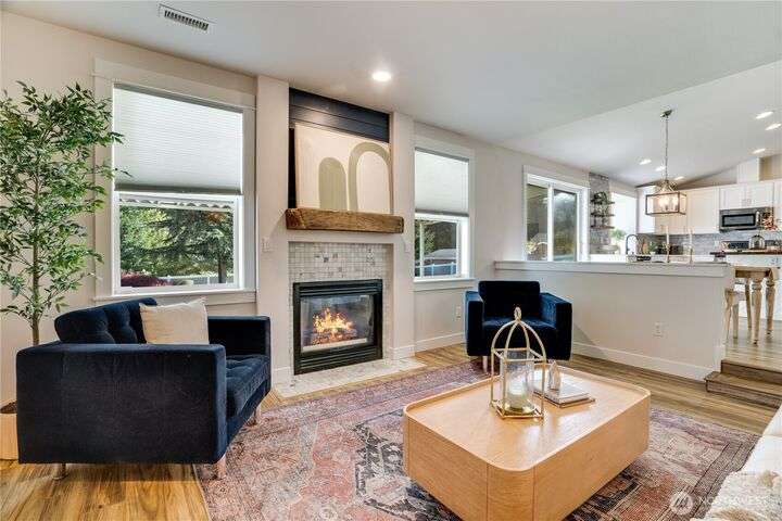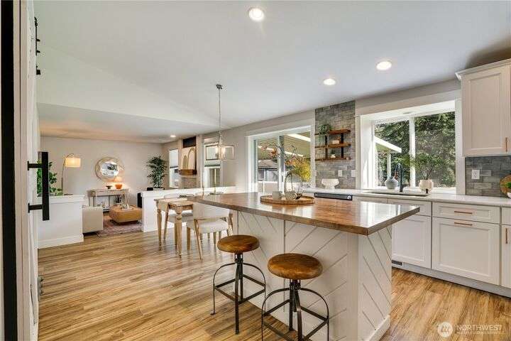 Exceptional single-level living in a quiet cul-de-sac! This remodeled rambler impresses with its open-concept design, vaulted ceilings, and designer finishes. Stunning kitchen features shaker cabinets, quartz and butcher block counters, newer stainless appliances, and a stylish coffee bar, perfectly connected to the dining & living spaces for effortless entertaining. The large primary suite offers heated floors, dual sinks, and a walk-in closet. Enjoy peace of mind with newer roof, flooring, fixtures, AC, and backup generator with auto switch. Two add’l bedrooms and a fully updated bath. Private patio ready for Northwest BBQ’s roomy garage & shed for extra storage! No HOA and easy access to 512, shopping, and top-rated Puyallup schools.