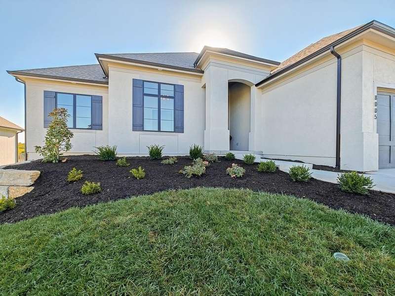 Expected Spring 2026 completion, welcome to the gold award-winning Brookridge IV by the esteemed Don Julian Builders. Located on a quiet cul-de-sac on lot 19, backing to green space with a dramatic view to the horizon, this reverse 1.5-story plan in Bristol Highlands Estates blends luxury with livability. Enter through double doors into a dramatic foyer and great room with 2-story windows, vaulted wood-beamed ceiling, and a striking stone fireplace to impress from the moment you step inside. The kitchen shines with an oversized island, 5-burner gas cooktop, custom hood, vaulted ceiling with skylights, and a massive walk-in pantry with prep space and second fridge. Just off the dining area, step onto the covered deck—perfect for morning coffee or unwind in the evening with a view to the horizon. The main-level primary suite offers a spa bath with dual vanities, soaking tub, tiled shower, and a walk-in closet that connects to the laundry. Two more bedrooms, a full bath, and a powder room for guests round out the main floor. Downstairs, the finished walkout basement is built for fun with a media wall, rec room, game space, spectacular bar, plus 2 more bedrooms with private bathrooms that walks out to a patio for another outdoor entertaining space. Nestled in the rolling hills of Shawnee, Bristol Highlands offers stunning views and a peaceful setting. Enjoy top-rated De Soto schools, shopping, dining, and outdoor recreation with nearby parks, trails, Shawnee Mission Park, and multiple golf courses. It’s the perfect balance of convenience and natural beauty. Photos and virtual tour are of a similar model home.