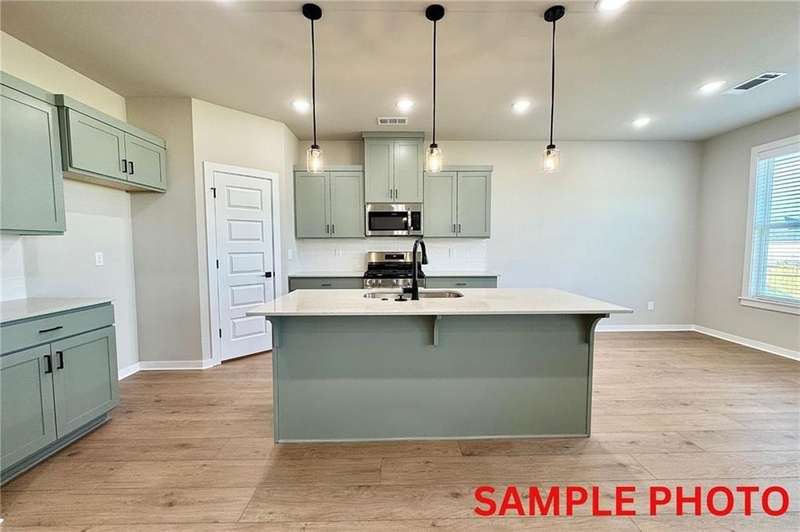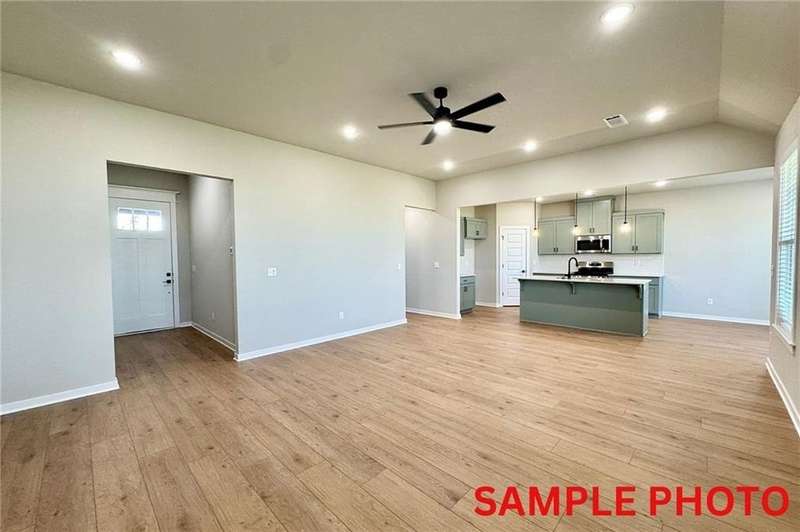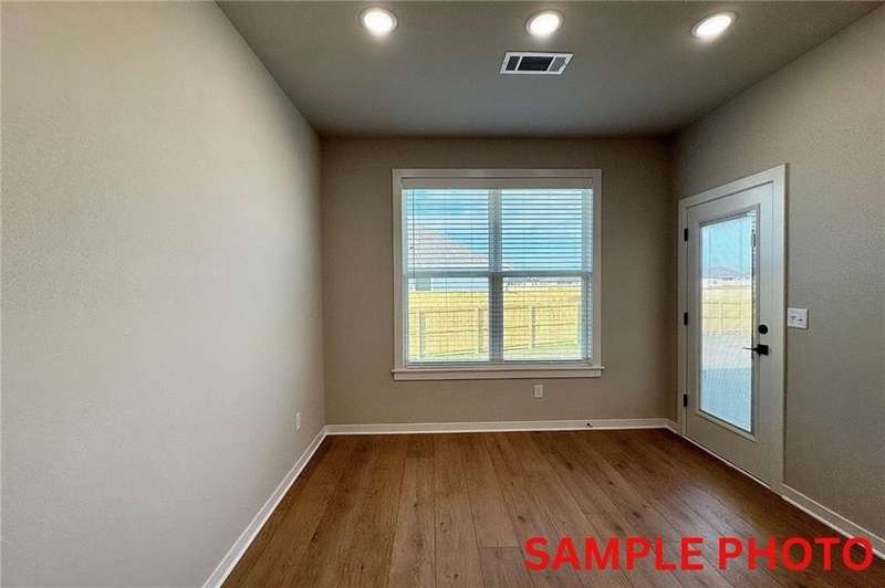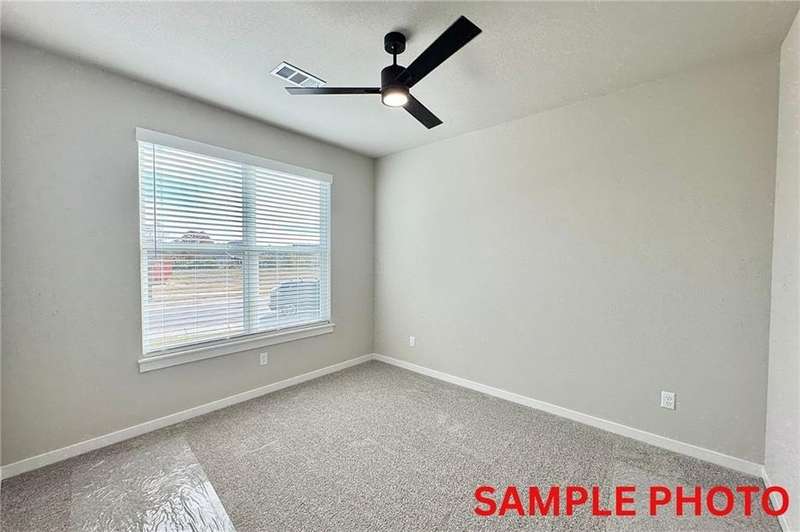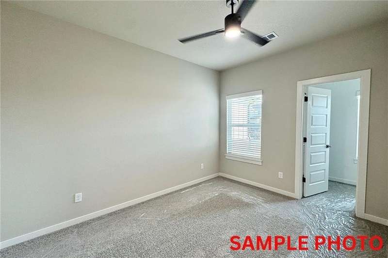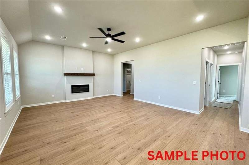 Fence, blinds and gutters included! Discover your dream home in the new neighborhood- Jacob's Crossing. Clifford plan with 1 level, garage on the right and South facing! 10 ft ceilings, linear electric fireplace, LVP flooring throughout the main areas and primary bedroom, quartz countertops and more. Chef's kitchen boasting Frigidaire stainless steel appliances, gas range, pantry, quartz countertops, bar pull handles, large island and gorgeous backsplash. Luxurious primary bedroom features abundant natural light, while the spa-like primary bathroom offers a walk-in shower, double sinks, tub, and spacious walk-in closets. Additional features include three large secondary bedrooms and a functional laundry room. Nestled on a generous lot with covered patio that overlooks the serene sodded, fully fenced backyard. Model home located at 3631 Tranquility St- Lot 1.