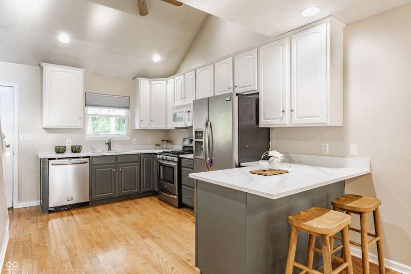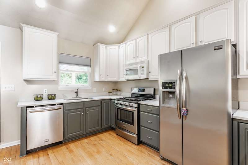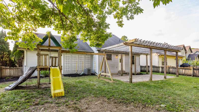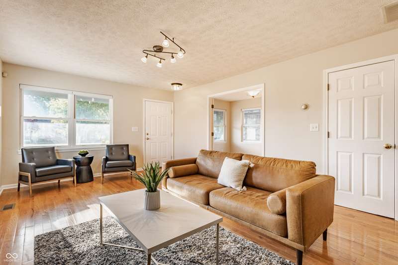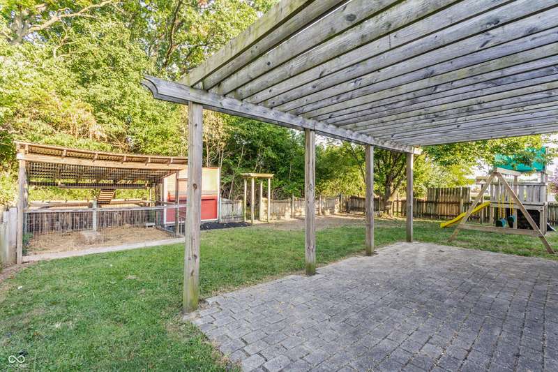Where else can you find four bedrooms, three full bathrooms, three levels with a two-car attached garage in a single-owner 30 year old home in the city under $300,000? On a wide, quiet street in Martindale-Brightwood, steps away from Douglass Park, a KIPP school, and the Edna Martin Christian Center, this home has been well maintained and given new life with extensive updates. Each of the three living levels has at least one full bathroom and bedroom. The main level features open-concept dining and living areas with a vented gas fireplace, and a kitchen with a cathedral ceiling, along with a full bedroom perfect for guests, a bathroom, and an office with abundant natural light. The second level is exclusively dedicated to a primary bedroom with a large walk-in closet, whirlpool tub with a new pump, separate shower, and water closet. The 9 ft ceiling basement features a full living room with a second vented gas fireplace, full bedroom, full bathroom, laundry room, additional storage, and a bonus room with a closet that could be used as a fourth bedroom. The fenced backyard includes a large outdoor dining space, paved and adorned with a massive pergola. Along with a sturdy playset, the yard is also equipped with a restored chicken coop worthy of your highest urban farming aspirations. Updates include full interior wall and cabinet paint, new hot water heater, quartz countertops, light fixtures and faucets, and a garbage disposal. The neighborhood was recently granted special development resources with the "Quality of Life Plan for Martindale-Brightwood" to develop arts and culture, the economy, education, environment, health and wellness, housing and infrastructure, neighborhood engagement, public safety, workforce development, and youth engagement.