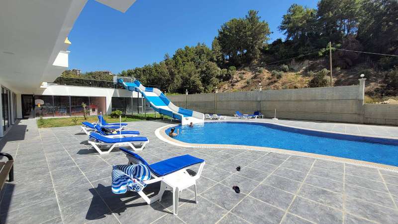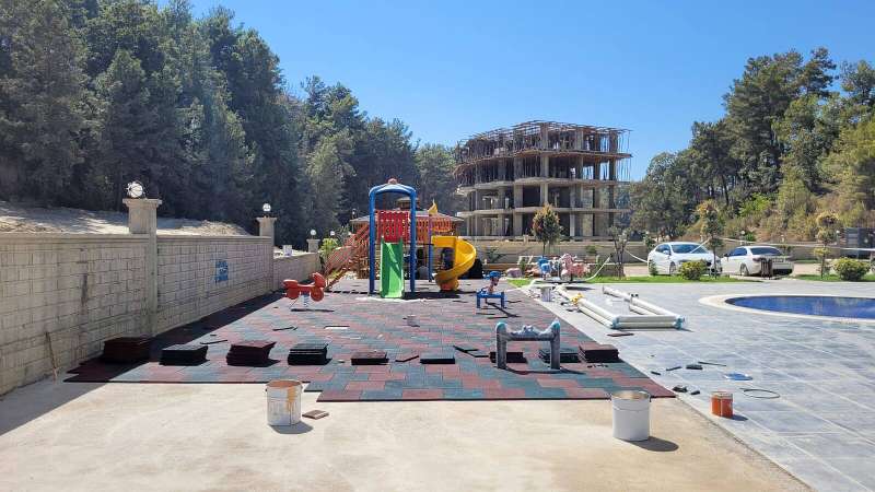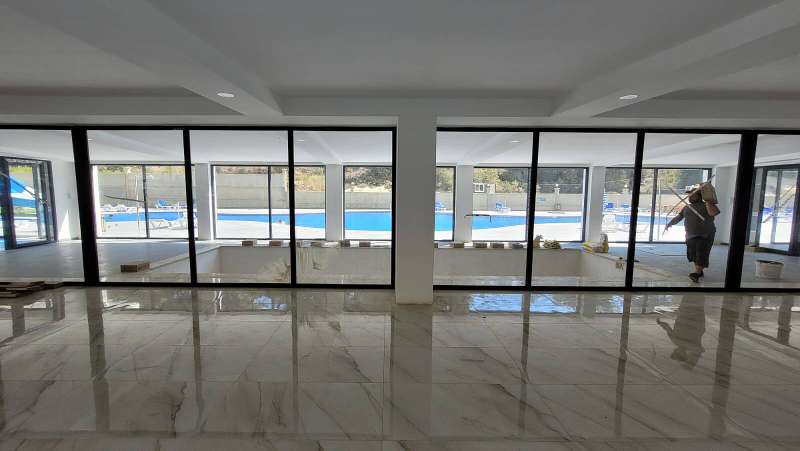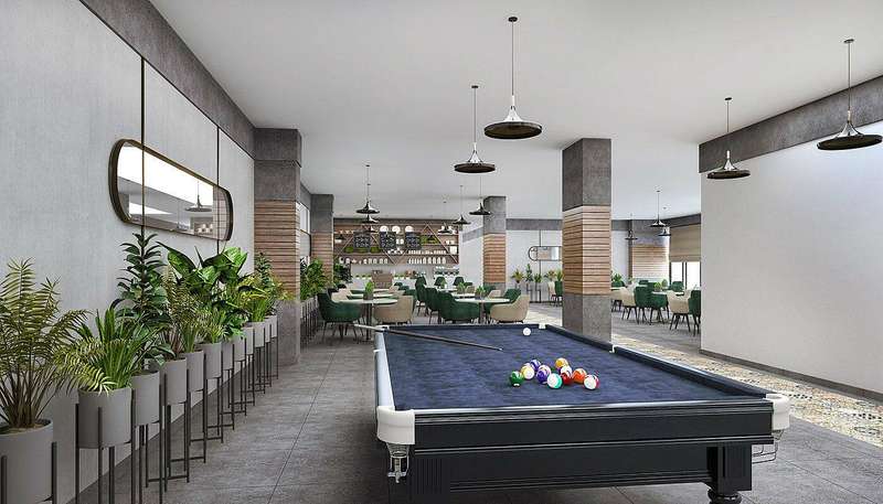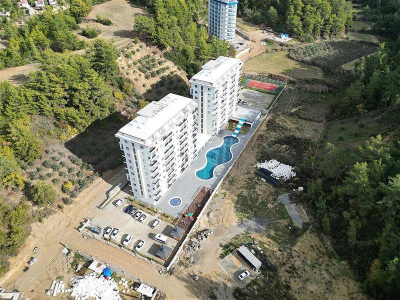 The apartments are in a complex consisting of two connected blocks, with a total of 180 apartments. The complex offers rich amenities such as open and closed pools, a water park, spa, Turkish bath, sauna, steam room, relaxation room, gym, cinema, restaurant, library, cafe-bar, mini-golf, tennis court, basketball and volleyball courts, children's play area, game room, mini-club, generator, free internet, TV satellite system, pergola and barbecue, parking, concierge, 24/7 security cameras, and security.