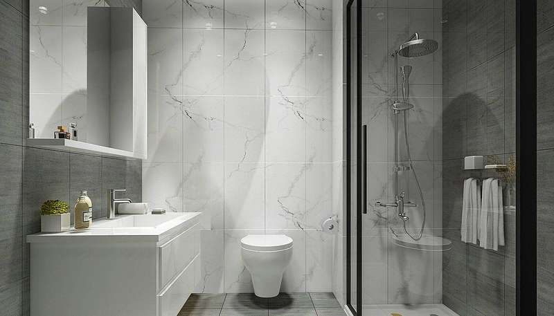 The apartments feature ceramic floors, spot lighting, PVC windows, an American kitchen, and a shower cabin.