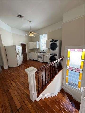 Sunny & bright upstairs 2 bedroom, 1.5 bath unit in the Garden District available now. Spacious living room that leads to a separate large dining room area. Beautiful hardwood floors throughout. Large walk in closets, ample storage space, upstairs balcony, brand new entire house central air and heating, gas stove, high ceilings, stainless steel appliances, dishwasher, gas cooktop, private washer/dryer, 11 ft ceilings, backyard access, big kitchen with pantry, new roof on property, and more! Less than one block away, you’ll find a dog park, Breaux Mart grocery store, and the Bulldog Uptown!! Steps away from all the shopping, coffee shops, restaurants and nightlife Magazine Street offers. 12 month lease minimum. Landlord pays for water, tenant responsible for electric and gas. Pets ok with $300 nonrefundable pet deposit.