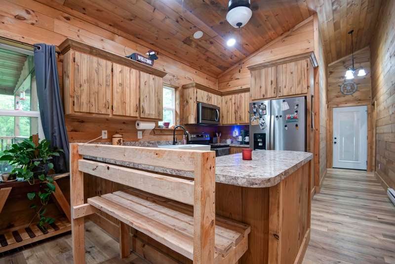 This isn't your average housethis is a bespoke home, offered at a price lower than most spec builds! Tucked into a beautifully wooded one-acre lot just a short walk from Table Rock Lake, this newly completed home is bursting with charm and thoughtful craftsmanship.Every detail has been carefully consideredfrom custom finishes and built-ins to unique touches that make the space feel warm, welcoming, and entirely your own. There's not a stitch of carpet or a scrap of drywall herejust high-quality materials throughout, including soaring vaulted wood ceilings that create a sense of space and character you don't often find at this price point.The kitchen is both charming and practical, featuring a farmhouse sink, custom cabinetry, and plenty of counter space.The spacious en-suite primary bathroom includes dual sinks and a stunning walk-in shower.Step outside to discover two gorgeous decks: a covered one surrounded by mature trees for added privacy and ambiance, and a second perfect for entertaining. Flower boxes, trellises, and lush climbing plants complete the picture.Whether you're looking for a full-time residence, a vacation retreat, or a dream basecamp for RV adventures, this one checks every box. And with the lake just two minutes away by caror a leisurely strollyou'll always be close to the beauty of the water!