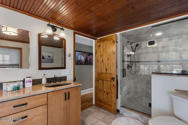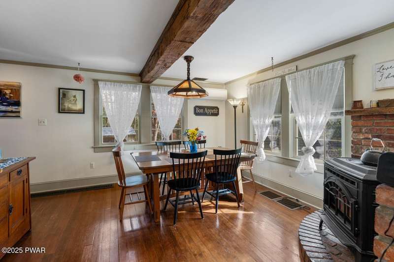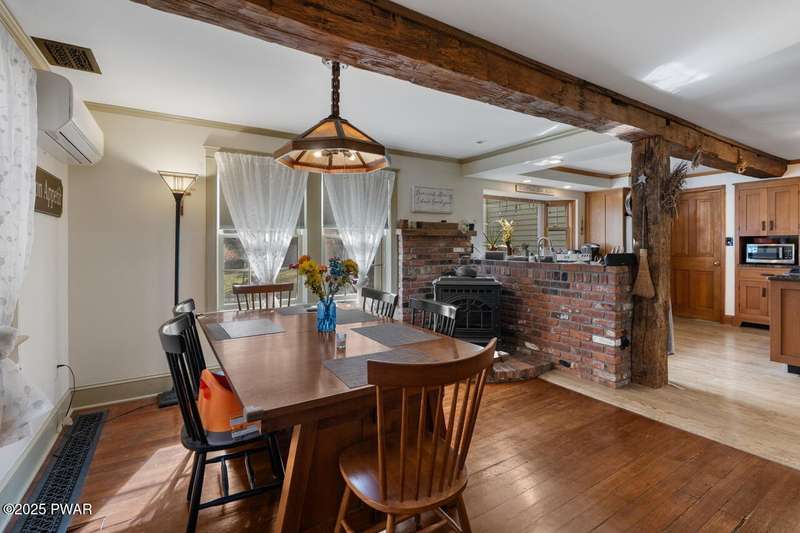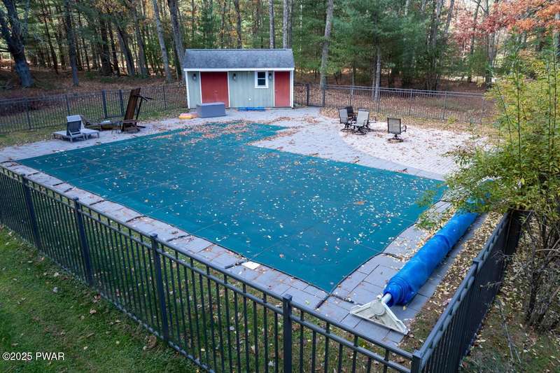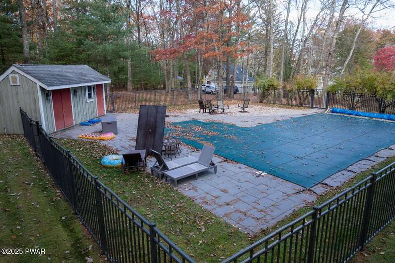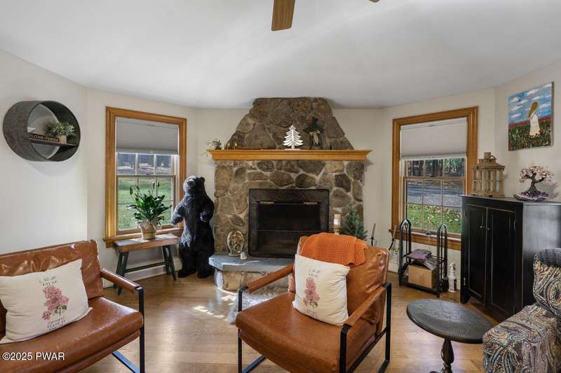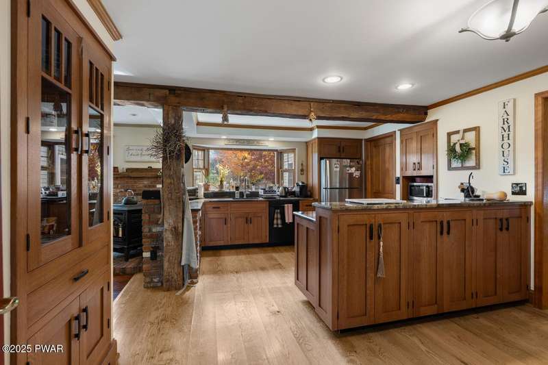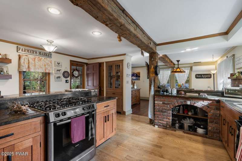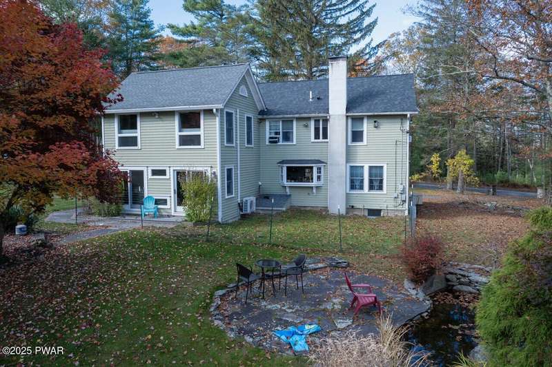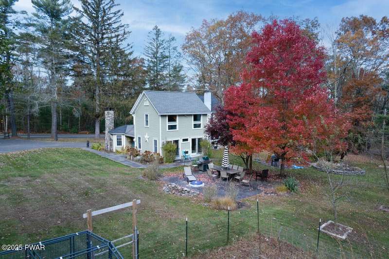 On over 4 acres with NO HOA, this modern farmhouse is not just a home, it's quite literally a retreat. Ideal for someone seeking an elegant yet comfortable home where there is ample space both indoors and out. Arriving at the home, you will notice the outside of the house features a wrap-around driveway with ample places to park and a detached garage. A gated inground saltwater pool with a pool house, Koi pond, chicken coop, multiple out buildings for storage or even horses if you like. This property is designed very thoughtfully to maximize outdoor living. Upon entering the home through the mudroom, you will have access to an additional room with access to a partially finished basement or you can go in straight to the kitchen with features such as stainless steel appliances, exposed wood and brick for aesthetic charm that you don't see much of. The main living room boasts high ceilings with wood beams, and a stone wood burning fireplace that you are sure to enjoy on the cool nights. Through the dining room you will pass a full bathroom and head upstairs to find three bedrooms and two full baths. The grand primary bedroom has beautiful windows that allow you to appreciate the setting you are in with a large bathroom and walk-in closet with an additional closet for plenty of storage. Head back outside to your detached garage and find a two car garage. You will immediately appreciate this additional heated living space. The area downstairs is currently used as an art studio but would also make a great office. Upstairs you will find another full bathroom and another full additional living area for guests, or inlaws. Another detailed and well thought out space for this home. There is also an entrance/exit at the rear of the garage along with more outside storage.This home is truly a must see!!