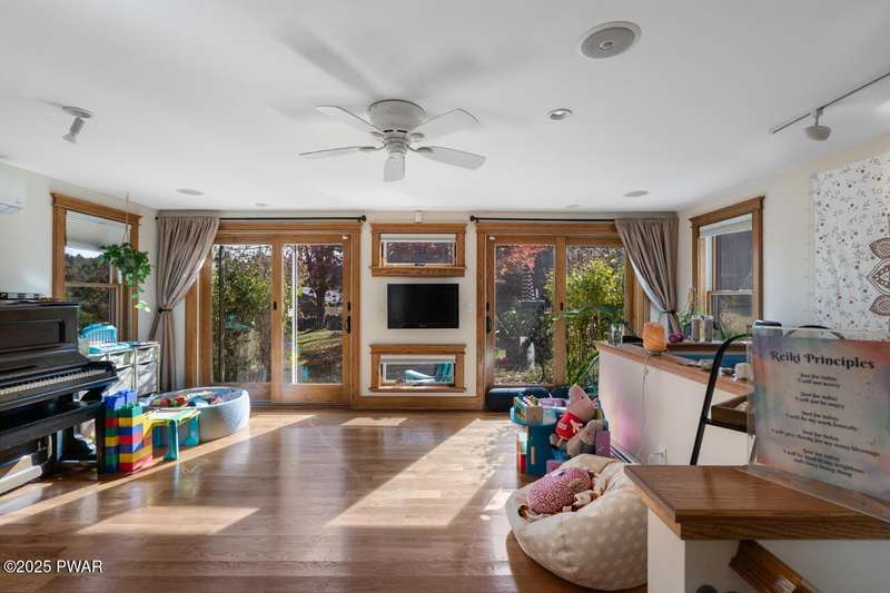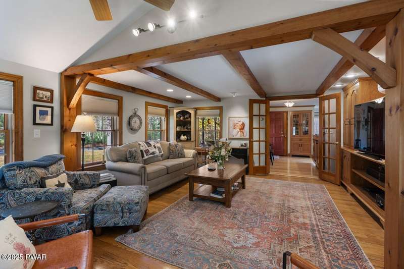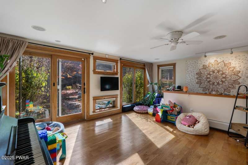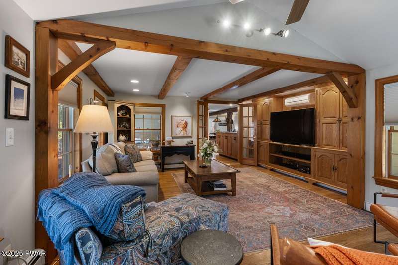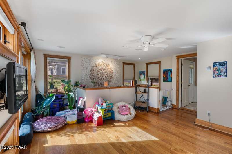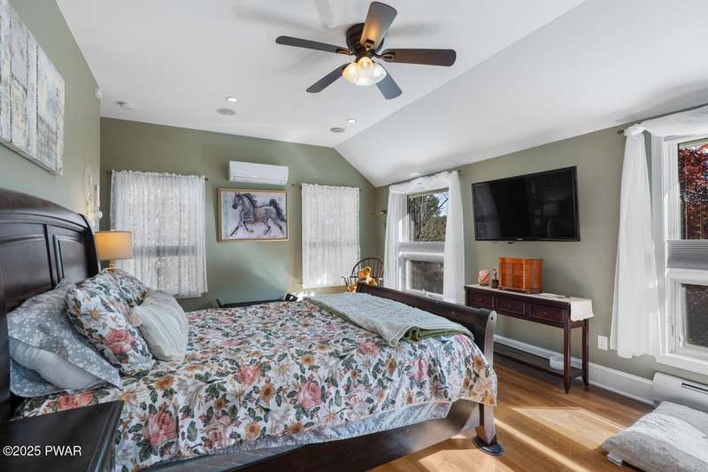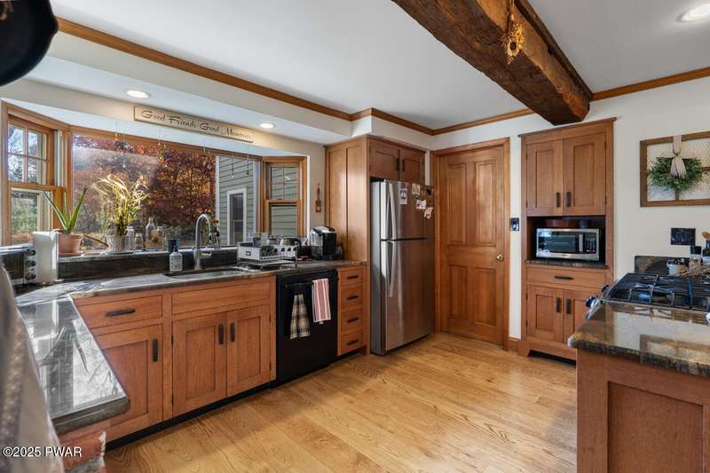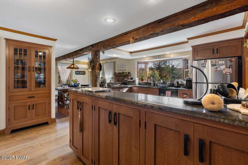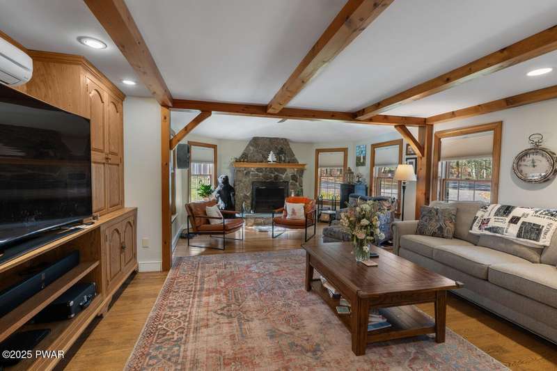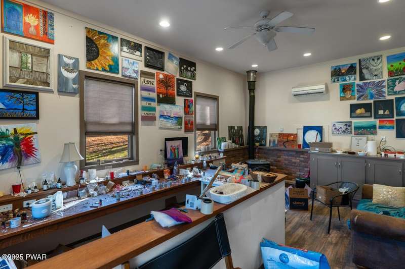 On over 4 acres with NO HOA, this modern farmhouse is not just a home, it's quite literally a retreat. Ideal for someone seeking an elegant yet comfortable home where there is ample space both indoors and out. Arriving at the home, you will notice the outside of the house features a wrap-around driveway with ample places to park and a detached garage. A gated inground saltwater pool with a pool house, Koi pond, chicken coop, multiple out buildings for storage or even horses if you like. This property is designed very thoughtfully to maximize outdoor living. Upon entering the home through the mudroom, you will have access to an additional room with access to a partially finished basement or you can go in straight to the kitchen with features such as stainless steel appliances, exposed wood and brick for aesthetic charm that you don't see much of. The main living room boasts high ceilings with wood beams, and a stone wood burning fireplace that you are sure to enjoy on the cool nights. Through the dining room you will pass a full bathroom and head upstairs to find three bedrooms and two full baths. The grand primary bedroom has beautiful windows that allow you to appreciate the setting you are in with a large bathroom and walk-in closet with an additional closet for plenty of storage. Head back outside to your detached garage and find a two car garage. You will immediately appreciate this additional heated living space. The area downstairs is currently used as an art studio but would also make a great office. Upstairs you will find another full bathroom and another full additional living area for guests, or inlaws. Another detailed and well thought out space for this home. There is also an entrance/exit at the rear of the garage along with more outside storage.This home is truly a must see!!