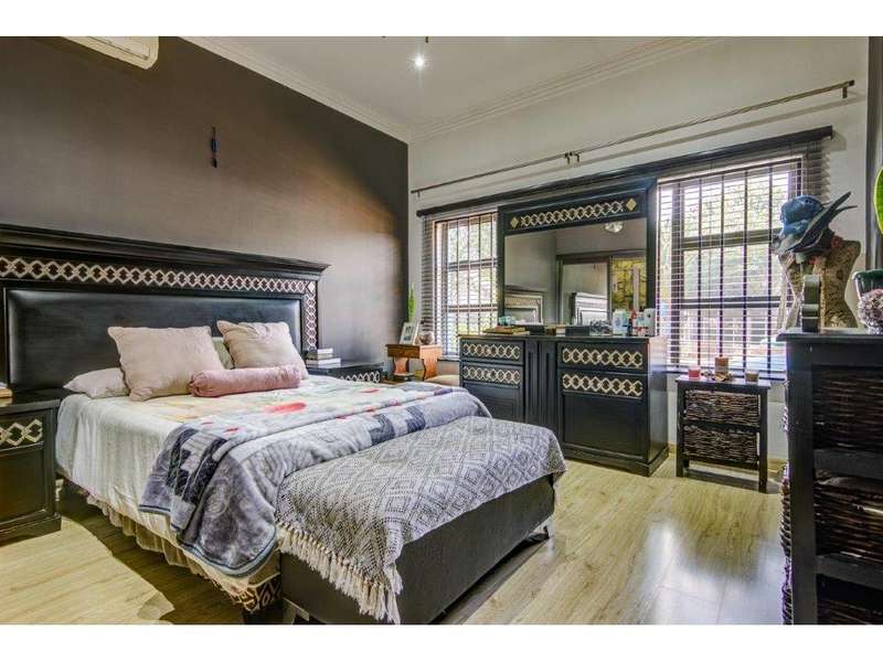 This stunning contemporary home exudes luxury and sophistication from the moment you walk in. Meticulously renovated, the property boasts high end finishes and elegant fittings that creates an atmosphere of comfort and refinement. The architectural design is perfectly suited for entertaining and provides a cosy retreat for private moments. The layout enhances the majestic feel of the home, making it ideal for family living. Situated on a spacious stand of approximately 1017m2, this stunning family home offers ample space and the added bonus of 2 flats with separate entrance, ideal for extended family living or rental income. Main House features: 3 Bedrooms Study/Guest Bedroom Main Bedroom has En-suite modern bathroom offering his and hers basins and double shower. Modern 2nd Bathroom with corner bath, basin and toilet. Modern Kitchen with Island equiped with Gas Stove and 50mm unique ceasar stone counter tops, Scullery, lots of build in cupboards and double eye level ovens. Large dining room with fireplace leading to sunken lounge and entertainment room with build in bar and braai for the entertainer. Outside covered patio overlooking the sparkling pool and inviting 20 seater boma area. Flatlet 1 consists of two bedrooms with balconies, full bathroom, lounge & kitchen Flatlet 2 consists of 1 bedroom, 1 bathroom and kitchen. Double Electric fence, Alarm, Beams around property and 16 cameras with backup system provides peace of mind whether you are home or away. Extra features just to mention a few.... 2 Granny Flats for extended family or extra rental income Separate entrance, parking and courtyards for the flatlets 5KVA invertor system with 8 Solar panels 5000L Jojo tank for backup water Brand new garage motors that can be operated from your phone Samsung aircons 2 Koi Ponds 90% paving around the property LED lights throughout the property Separate DB Boards for house and flats Gas Stove in Main house JBL Speakers in roof at lounge and fireplace 3 garages for Main house A Must See!!! Don't delay, call today!! Brink Property Group Brakpan (Pty) Ltd trading as Chas Everitt Brakpan operates in terms of a franchise agreement with First Realty Central (Pty) Ltd Registered with the PPRA