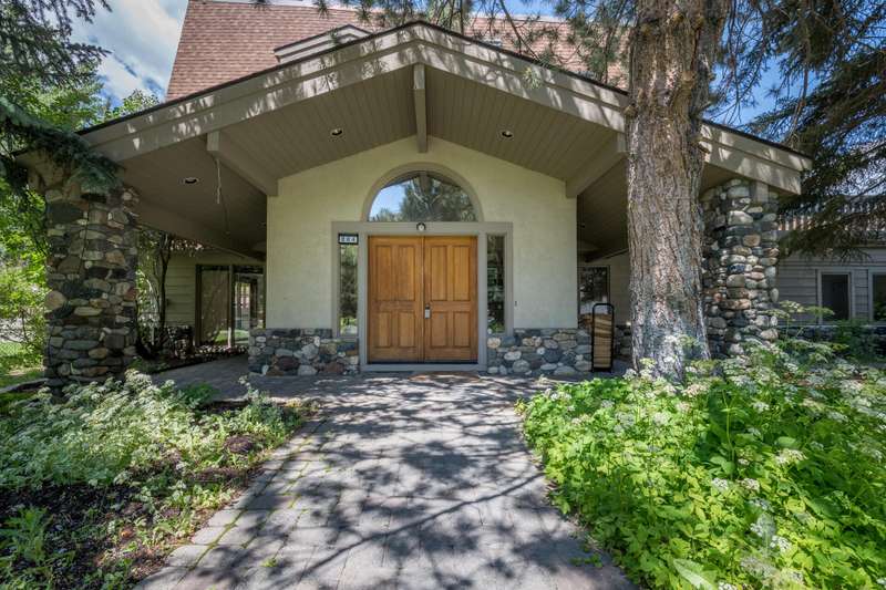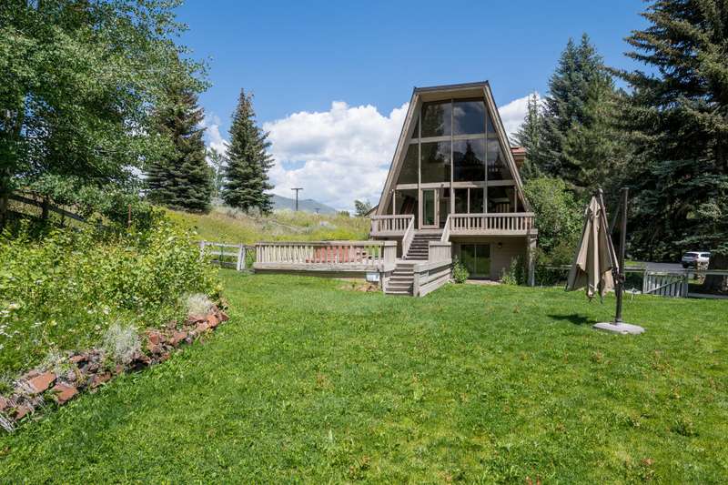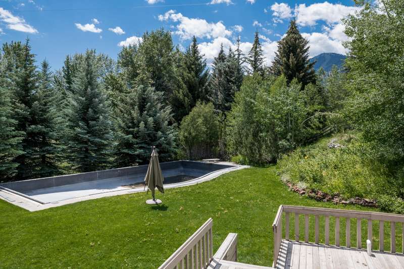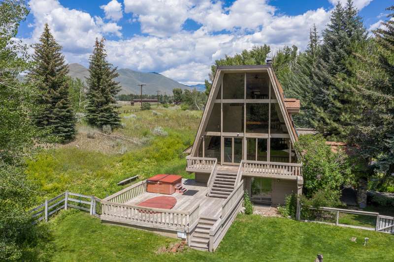 Elevated Trail Creek Subdivision lot, adjacent to ''Open Space'' that the Sun Valley Company red barn sits on. Beautiful views of Baldy. Walk to Ketchum, Sun Valley, Festival Meadows. Large home with garage, decks, infinity pool. Home is priced for a substantial remodel or as vacant land. Being offered As Is.