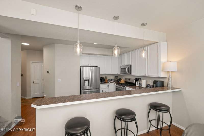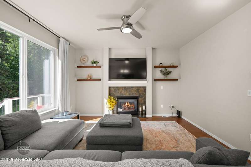 Chic Home with Upgrades Galore! Imagine living perched on the hillside of the Eagle River Valley! You will love the open & spacious floor plan w/all Bedrooms & laundry room UP! Upper hall loft for reading/office nook/or play area! Ensuite w/private bath, walk-in closet & stunning views. All bathrooms & lighting updated. Open kitchen/living/dining area w/cozy gas fireplace, large pantry, roomy w/closet, 9' ceilings, sliding doors to a fantastic brand new back deck offering south facing treed privacy to enjoy the Northern Lights or star gaze! Huge under home crawlspace for storage. ZLL home w/no neighbors behind you. *4 Plus Star Energy Rating when built. Must See!