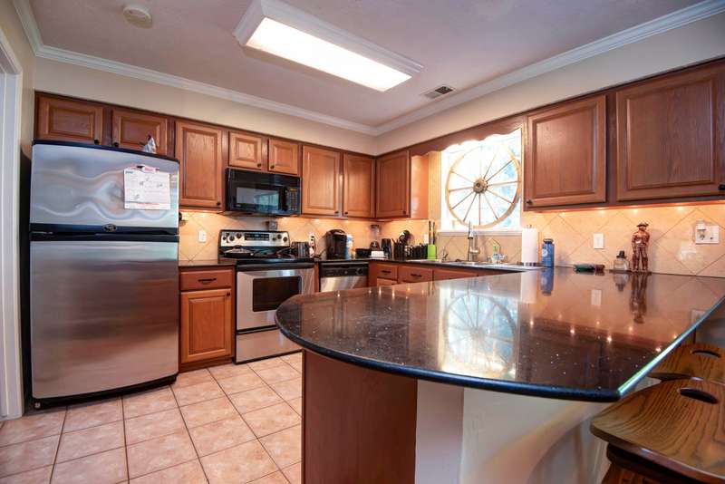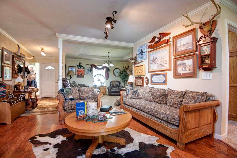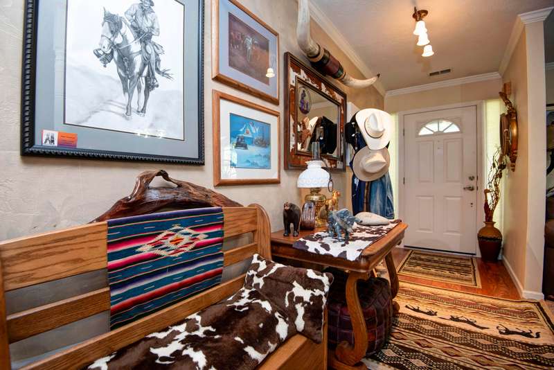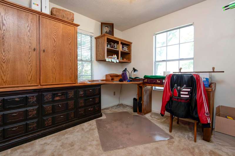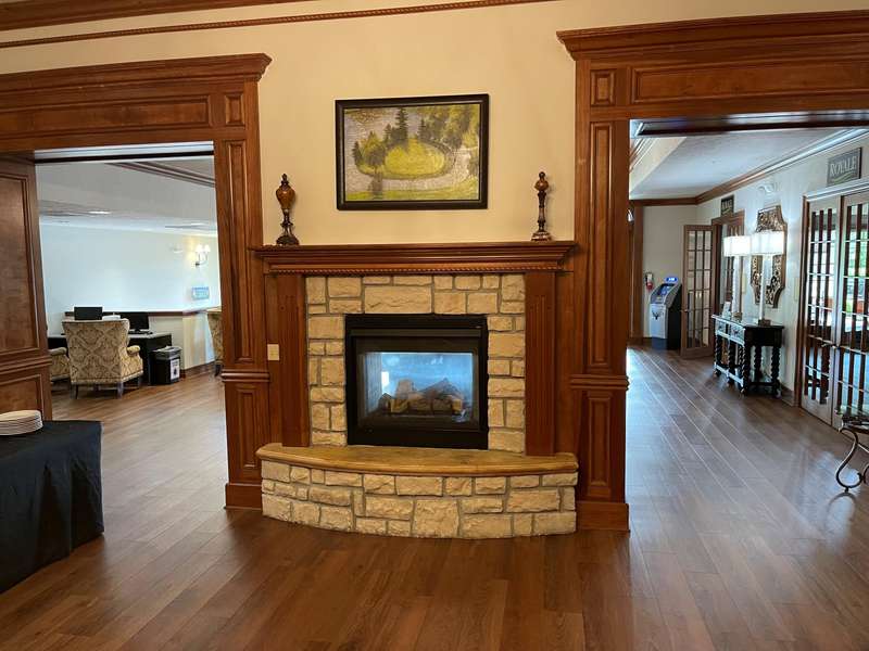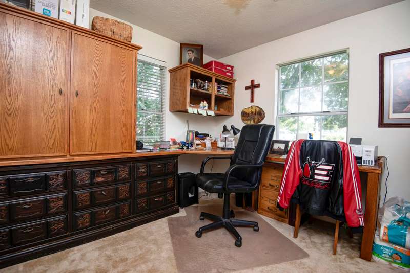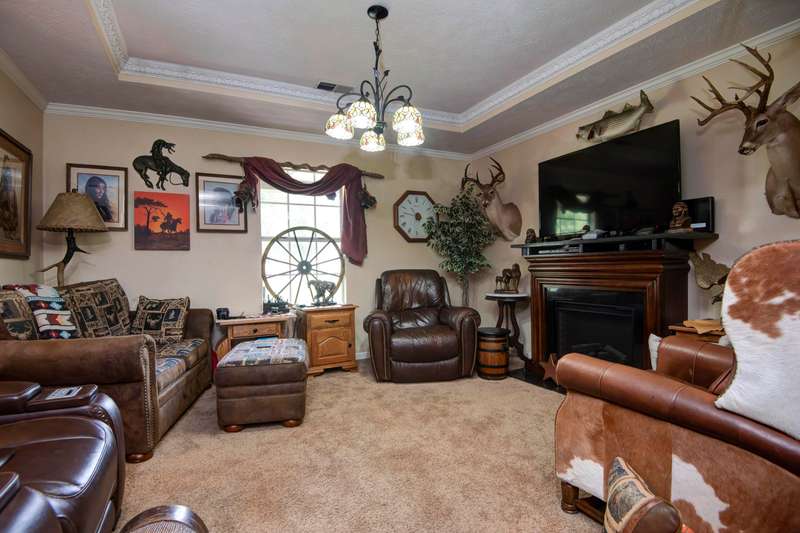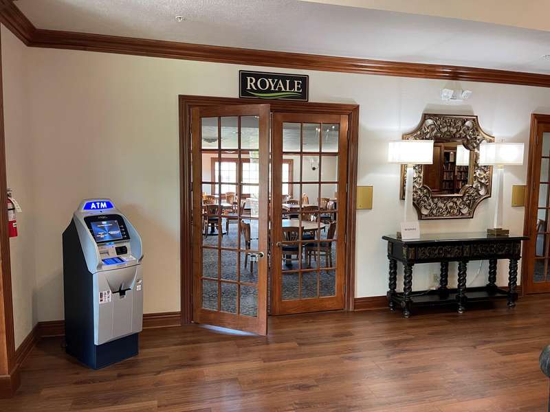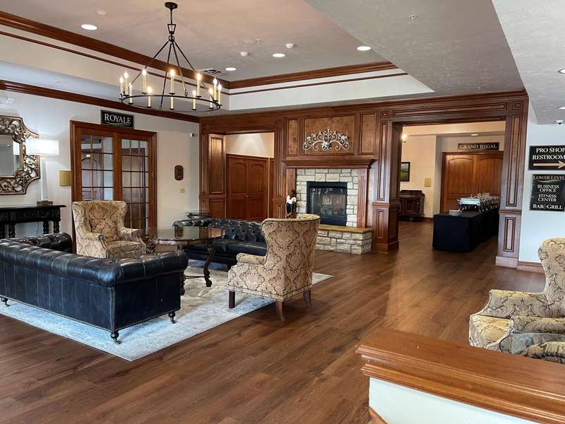 Live Like Royalty At An Affordable Price, With Amenities Galore, at Prestigious Pointe Royale Village! You'll love the flat park-like corner lot with lots of trees, an invisible fence for Fido, and nicely shaded back patio for your barbeques! This one-level home has many cool features including an oversized 25-foot wide garage, no steps entry, permanent stairs up to partially finished attic space with a half bath and hobby/storage area. Inside you'll find entertaining living & sitting areas, perfect & comfortable for entertaining guests. The living room features an electric fireplace and crown molding. The kitchen sports quartz counter tops & plenty of cabinetry. All major appliances, including refrigerator are included. There's a separate laundry room. The second bath with walk-In shower has a Vevor Shower Panel Tower. The 3rd bedroom is currently being used as an office with built-in corner desk and storage cabinets. Come & See This One!