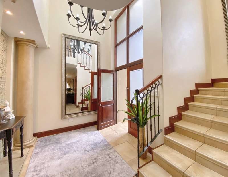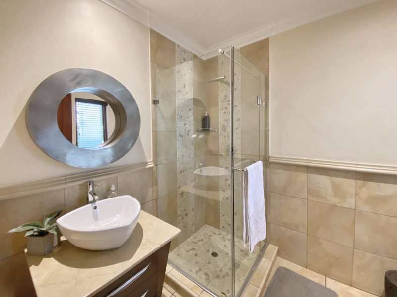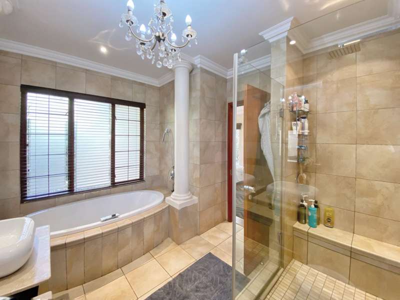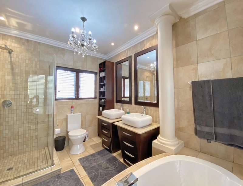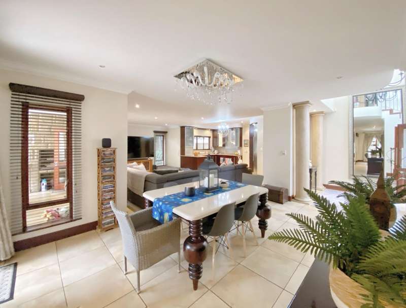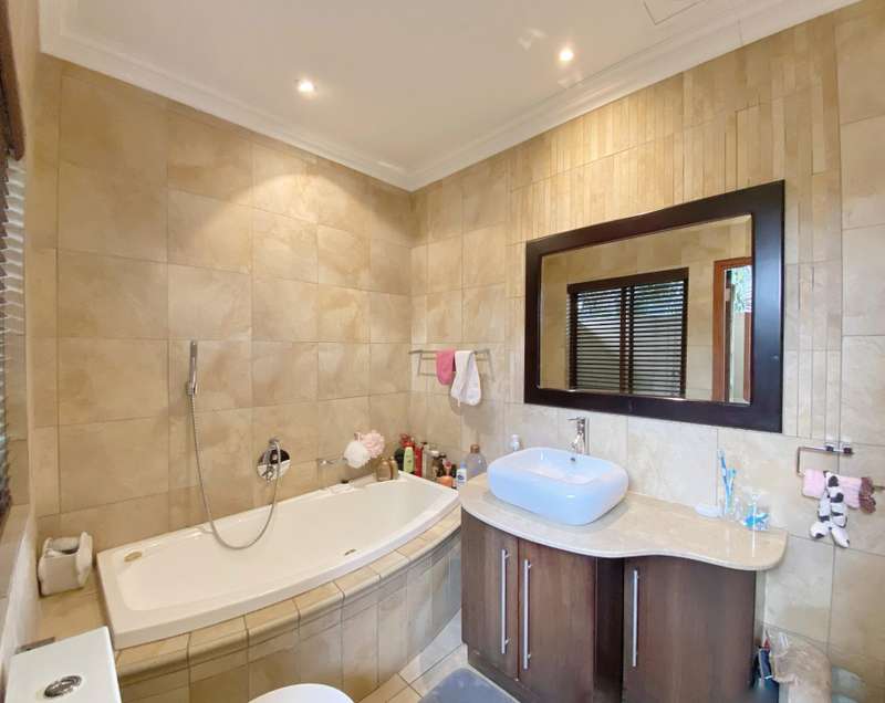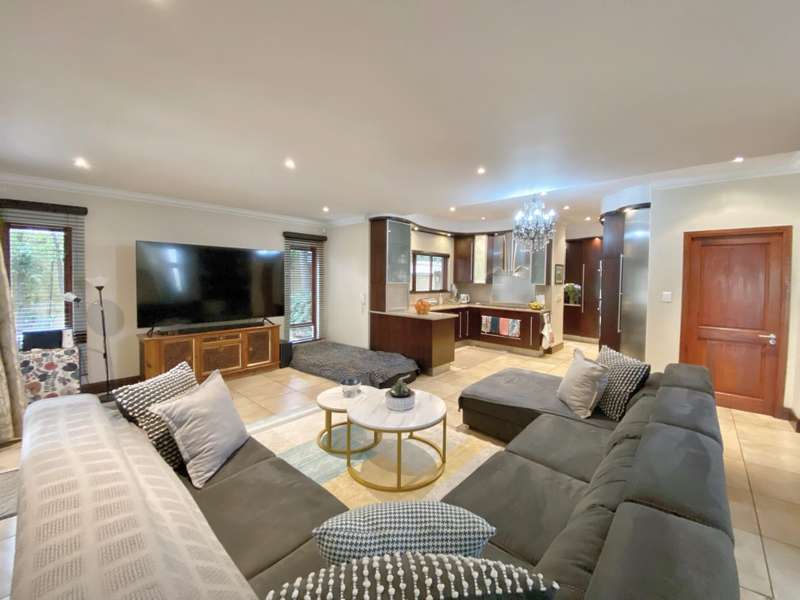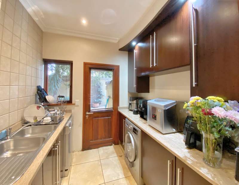 Step into a lifestyle of comfort and contemporary elegance with this beautifully designed 4 bedroom home, ideally situated in a serene and sought-after location. From premium flooring to sleek cabinetry and designer lighting, every detail reflects quality and style. Ideal for families, professionals, or anyone seeking a balance of style and tranquility, this residence offers a seamless blend of functionality and luxurious living. Enjoy effortless flow throughout the spacious living, dining, and kitchen areas?Çöideal for entertaining guests or simply relaxing with family. The kitchen features modern finishes, high-end appliances, and a separate scullery with space for appliances. The double patio doors lead onto a covered patio with built-in braai and landscaped garden?Çöideal for alfresco dining or unwinding in nature. Each of the 4 bedrooms offers good proportions and plenty of natural light, and are complimented by 3 modern bathrooms. The main bedroom includes a private en suite for added convenience and privacy. Nestled in a quiet cluster-style complex with only a few neighbours with leafy outlooks, this home is a sanctuary from the bustle of everyday life.