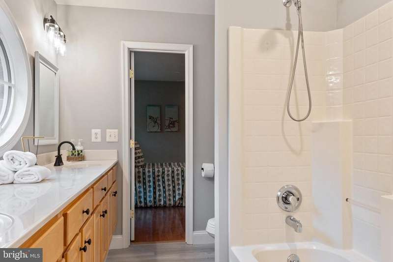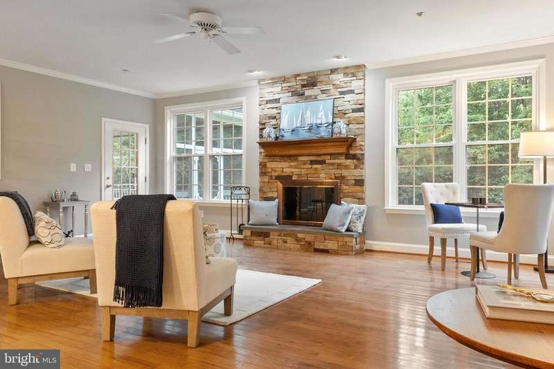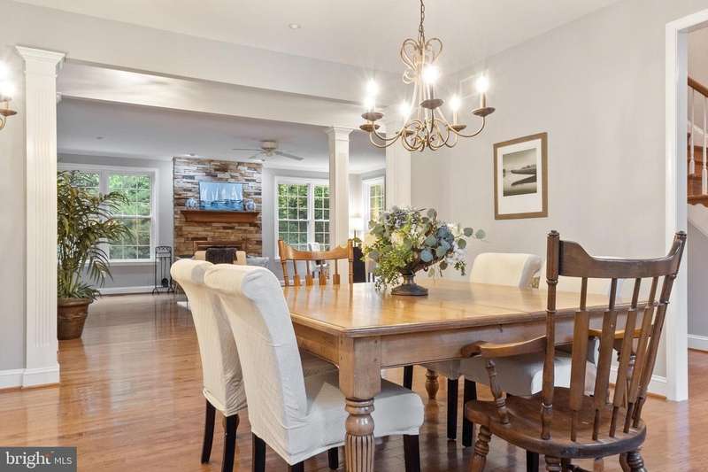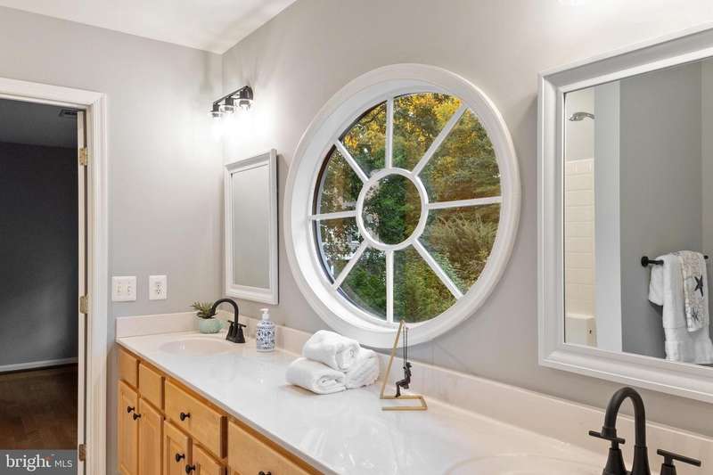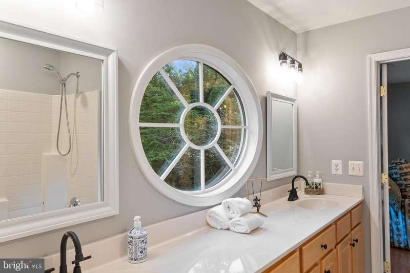 Welcome to 210 Canterwood Court, located in the beautiful community of Old Mill Bottom Estates. Privately situated on 9.71 wooded acres, it is a perfect place for children to enjoy the outdoors, build forts, and explore nature. From the side porch, you'll feel as though you're in the middle of a park, surrounded by trees and wildlife. And while this home enjoys all the benefits of the community, it is not subject to HOA fees, a rare and desirable feature. Inside, the gracious foyer opens to the inviting family room, flanked by a formal dining room to the left and a formal living room to the right. Natural light fills the family room, where a wood-burning fireplace creates a warm gathering space. The room lends itself to plenty of family and friend time, whether enjoying Sunday football or an evening of games. A glass-paneled door leads to a lovely screened-in porch, the perfect spot for quiet mornings or relaxed evenings without interruption from pesky bugs. The heart of the home is the newly refreshed kitchen, featuring quartz countertops with soft gray veining, new sinks and faucets and abundant cabinetry. A built-in wine and coffee bar, a new cooktop in the island with seating space for barstools, and room for a large farm table make this kitchen as functional as it is beautiful. The space also opens to the screened porch. Just beyond, you'll find a walk-in pantry, a private office, and access to the back staircase. The main level also offers a bedroom with adjoining full bath and french doors to the backyard, ideal for guests or multigenerational living. Upstairs, the primary suite is a true retreat with a gas fireplace (currently not hooked up), new lighting and flooring, a built-in coffee bar, an expansive closet, and a luxurious bath with laundry. Three additional bedrooms complete the upper level: an ensuite guest room with a new vanity and flooring, and two front-facing bedrooms that share a Jack & Jill bath and get loads of natural light, with new bathroom flooring and refreshed dual vanity sinks. Thoughtful updates throughout the home include new lighting, new bathroom faucets, fresh paint, plantation shutters, and landscaping. The oversized garage boasts high ceilings and a workbench. No worries about bringing in the outdoors from your adventures in the woods, as there is an outdoor shower perfect for cleaning off before coming inside. The unfinished basement, already plumbed for a bathroom, offers endless possibilities for creating a media room, fitness space, or recreation area tailored to your lifestyle. Whether gathering in the formal spaces, enjoying quiet evenings on the screened porch, or taking in the natural beauty that surrounds the property, this warm and welcoming home offers the perfect balance of comfort, style, and privacy.