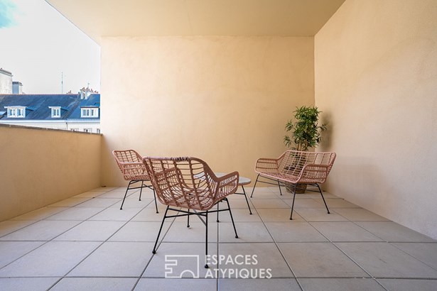 The fully secured residence combines historical character with contemporary features in a unique architectural style. The meticulous renovation offers the benefits of a new, energy-efficient home while preserving Lorient's rich architectural heritage.