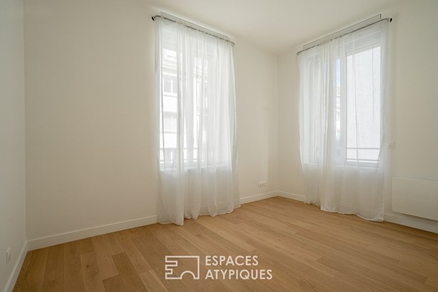 The layout has been carefully designed to offer an elegant, functional, and comfortable living environment. The entrance leads into a large living room, extended by an open-plan kitchen space ready to be fitted according to your preferences. The whole benefits from rare volume and a refined contemporary ambiance.