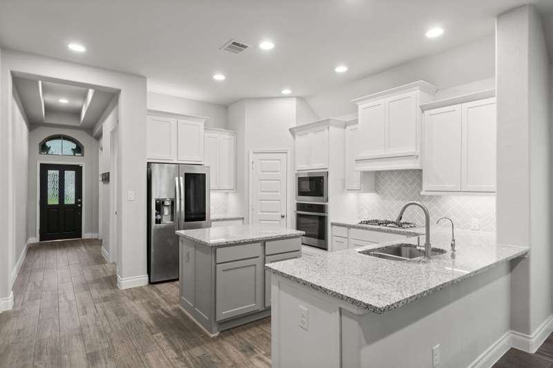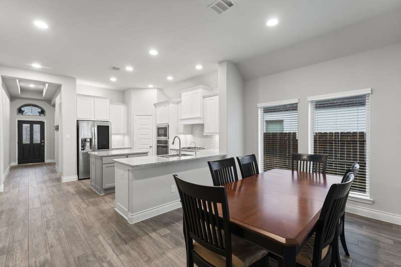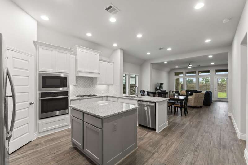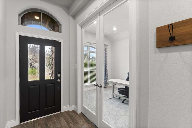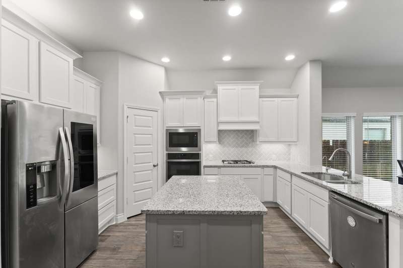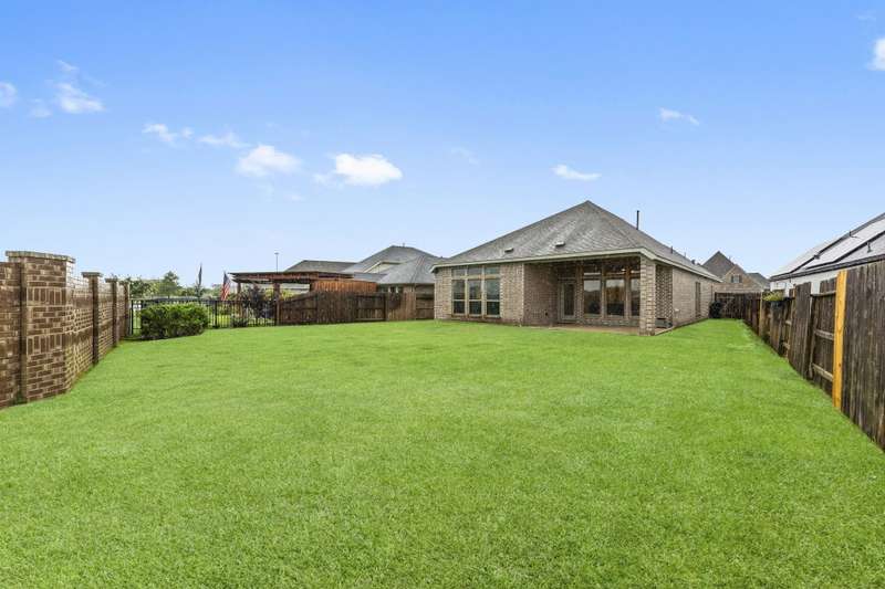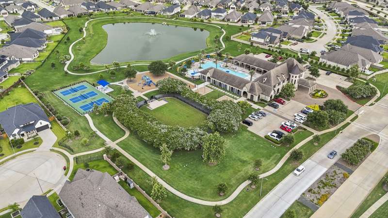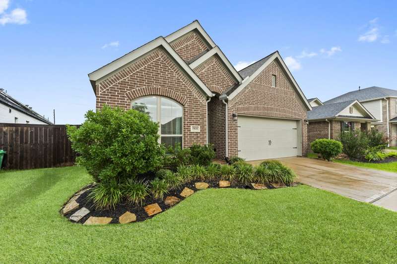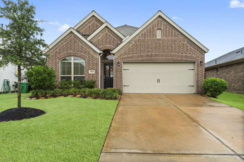 No back neighbors, premium lot, lake view! This like new home in the coveted Amira boasts new paint on interior & updated finishes in a fresh, neutral palette. Attention to detail is everywhere, starting at the open foyer, private home office, & stunning wood look tile floors that flow seamlessly throughout the common areas. This move in ready home also features an all brick exterior for low maintenance, whole home water softener/RO system, mud room off the garage entry, split plan layout, high ceilings, & stunning island kitchen that is open to the light & bright living & dining areas. The kitchen highlights include additional bar seating on the peninsula, spacious corner pantry, timeless herringbone backsplash, see through door fridge that stays, and a gas cooktop with separate wall ovens. The tranquil primary suite looks out into huge backyard. The primary ensuite has dual vanities & separate soaking tub/shower. Washer/dryer may also stay. Great access to 99 & amenities galore!
