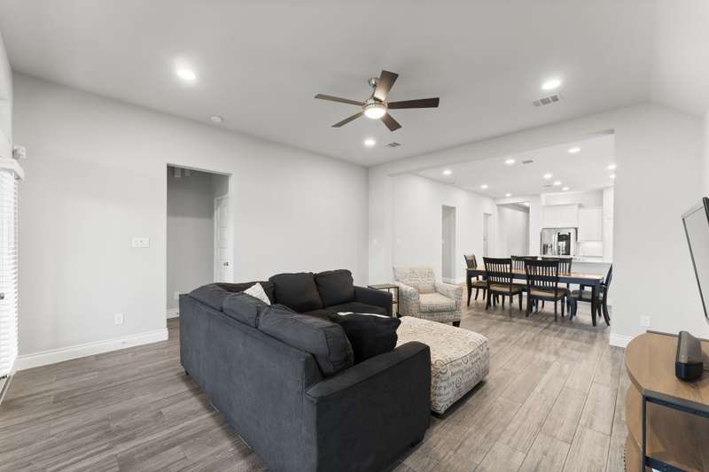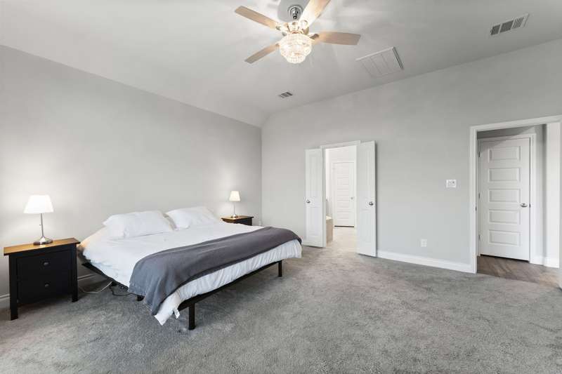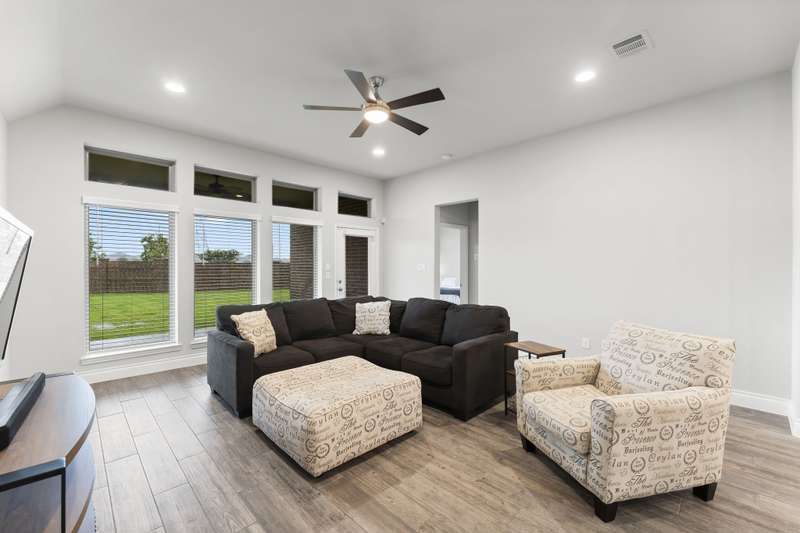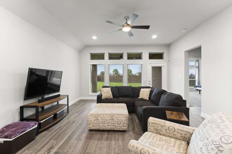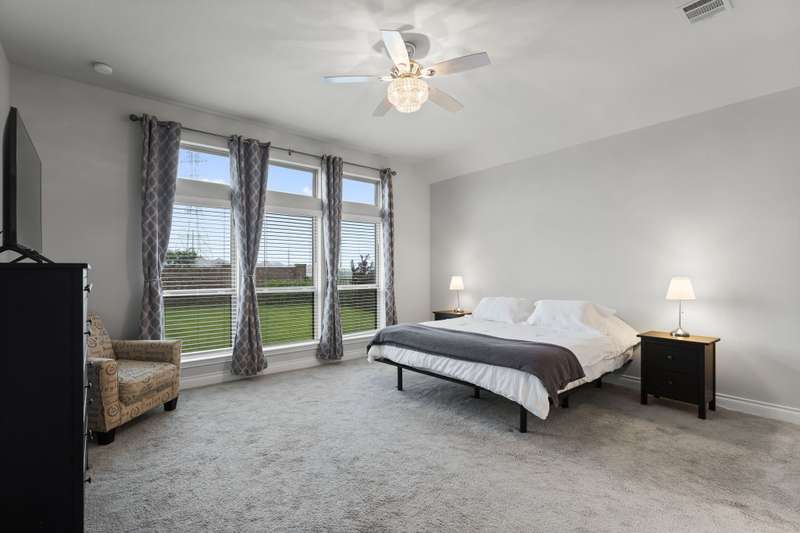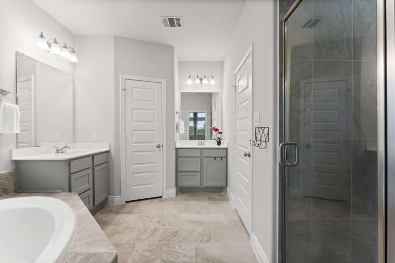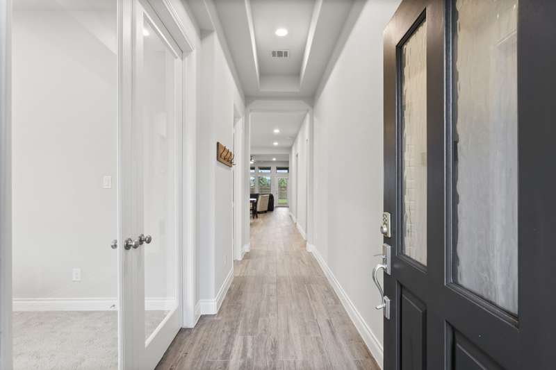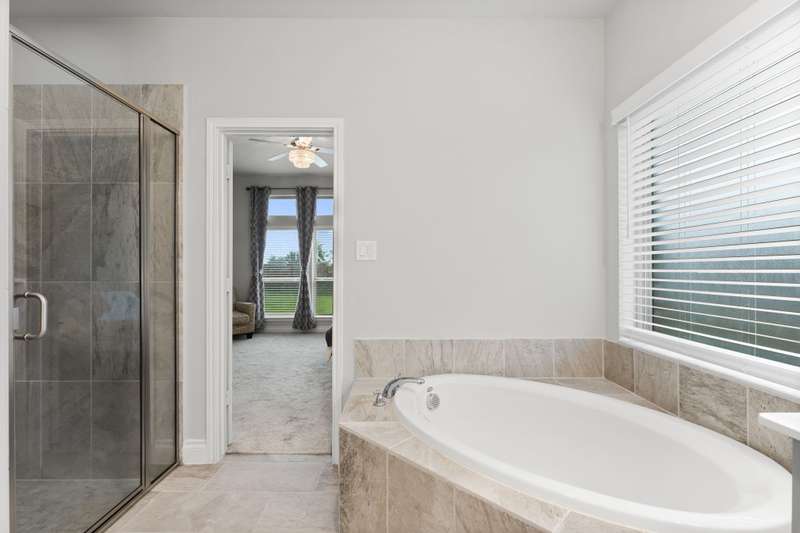 No back neighbors, premium lot, lake view! This like new home in the coveted Amira boasts new paint on interior & updated finishes in a fresh, neutral palette. Attention to detail is everywhere, starting at the open foyer, private home office, & stunning wood look tile floors that flow seamlessly throughout the common areas. This move in ready home also features an all brick exterior for low maintenance, whole home water softener/RO system, mud room off the garage entry, split plan layout, high ceilings, & stunning island kitchen that is open to the light & bright living & dining areas. The kitchen highlights include additional bar seating on the peninsula, spacious corner pantry, timeless herringbone backsplash, see through door fridge that stays, and a gas cooktop with separate wall ovens. The tranquil primary suite looks out into huge backyard. The primary ensuite has dual vanities & separate soaking tub/shower. Washer/dryer may also stay. Great access to 99 & amenities galore!