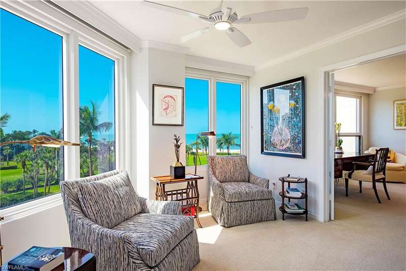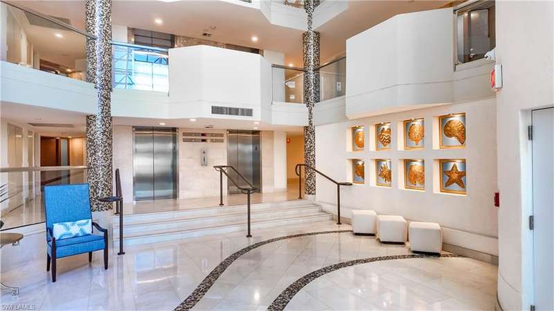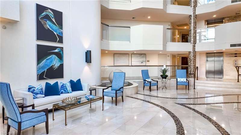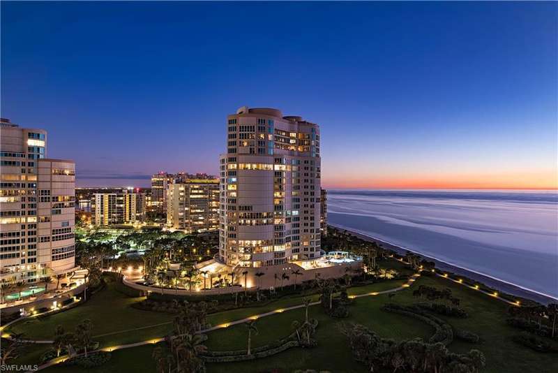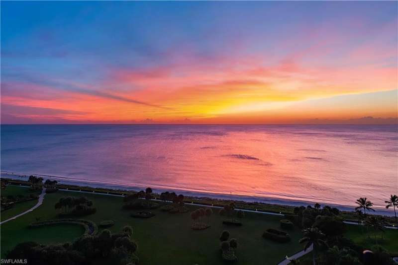Experience the pinnacle of beachfront living in the prestigious C stack at Park Shore Tower, one of Naples most luxurious condominiums. Embraced by southwest exposure, this two-bedroom-plus-den residence spans over 2,300 square feet and showcases sweeping views of the Gulf and bay. A generous covered balcony invites you to relax amid tranquil coastal breezes, perfectly capturing the essence of Naples waterfront lifestyle. The thoughtfully designed primary suite features a spa-like bath with exceptional storage, ensuring effortless organization without compromising on elegance. Additional conveniences include one designated parking space, ample storage throughout, and comprehensive hurricane protection. Park Shore Tower itself has recently renovated its social room and resort-style pool area boasting one of the largest pools on the beach complete with additional seating, a fire pit, and new outdoor grills. Other desirable amenities feature 24-hour security, a well-equipped fitness cen