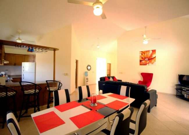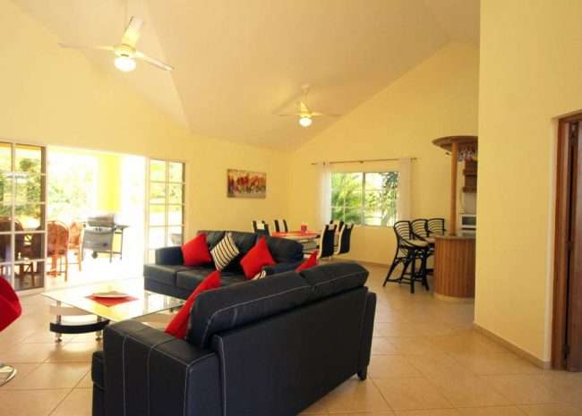 This Dominican Republic four bedroom family home is situated on a private quiet street, in a residential villa development. The gated villa community has magnificent ocean view with refreshing winds from the east and is in walking distance to the town of Sosua and beaches.