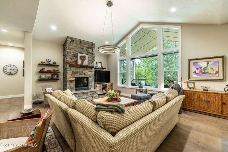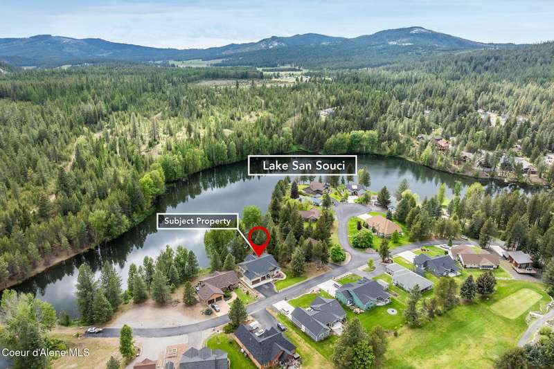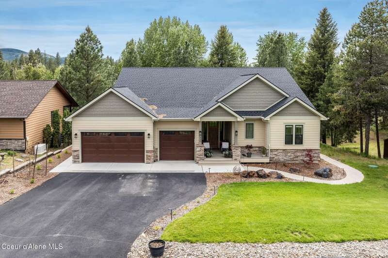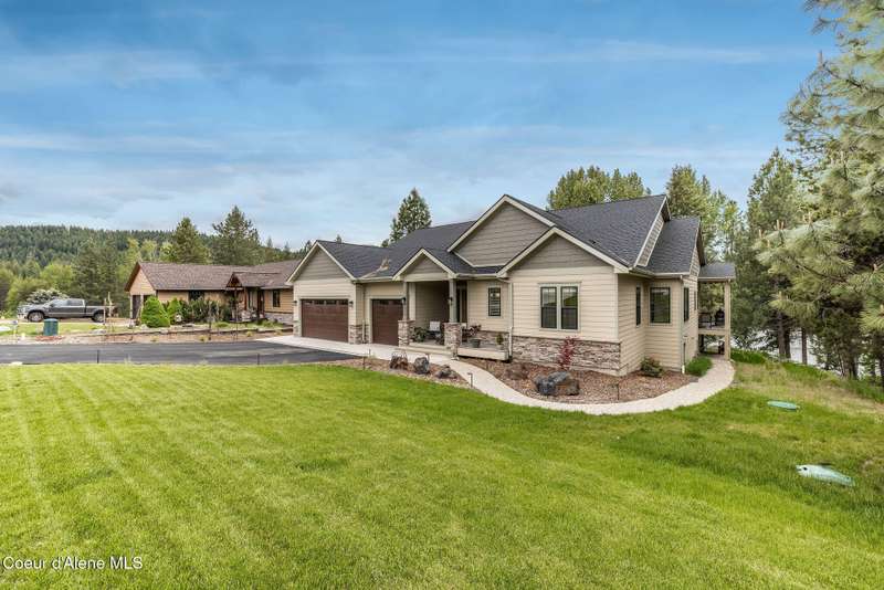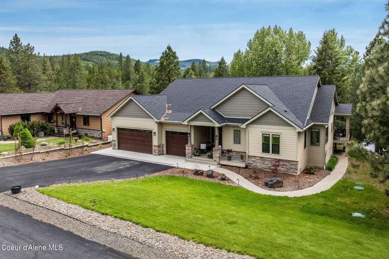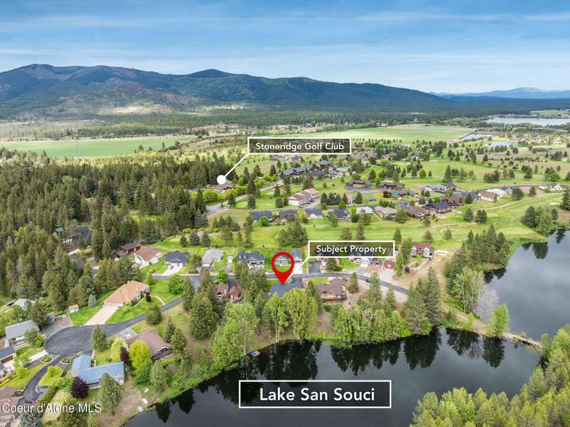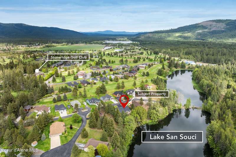 EXPERIENCE WATERFRONT LIVING IN ONE OF NORTH IDAHO'S PREMIER GOLF RESORT COMMUNITIES! Enjoy tranquil lakeside living in this stunning 2021-built, single-level rancher on Lake San Souci in the Stoneridge community with convenient highway access to both Sandpoint and Coeur d'Alene. Spanning 2,481 sq.ft. on a .39-acre lot, this well-appointed 3BD/2BA home blends modern luxury with outdoor adventure. You'll find 10' ceilings, engineered oak hardwood floors and a gourmet kitchen featuring quartzite countertops, an induction cooktop, stainless appliances, and walk-in pantry. Cozy up by the propane fireplace with floor to ceiling rock surround, or relax on the covered deck, perfect for soaking in tranquil lake views. The spacious master suite offers dual vanity sinks, soaker tub, curbless step-in shower, and walk-in closet. The laundry room is a dream with plenty of storage, utility sink, bench & coat hooks. Stay comfortable year-round with central air and secure with a whole-house propane-fueled Generac generator. High-speed internet keeps you connected. The Stoneridge community offers access to a rec room, indoor pool, tennis and pickleball courts, and a workout facility. Enjoy fishing, swimming, and kayaking on Lake San Souci, or access the nearby Stoneridge Golf Course with a pay-per-use option. Embrace the Idaho lifestyle in this move-in-ready waterfront gem - your private oasis awaits!