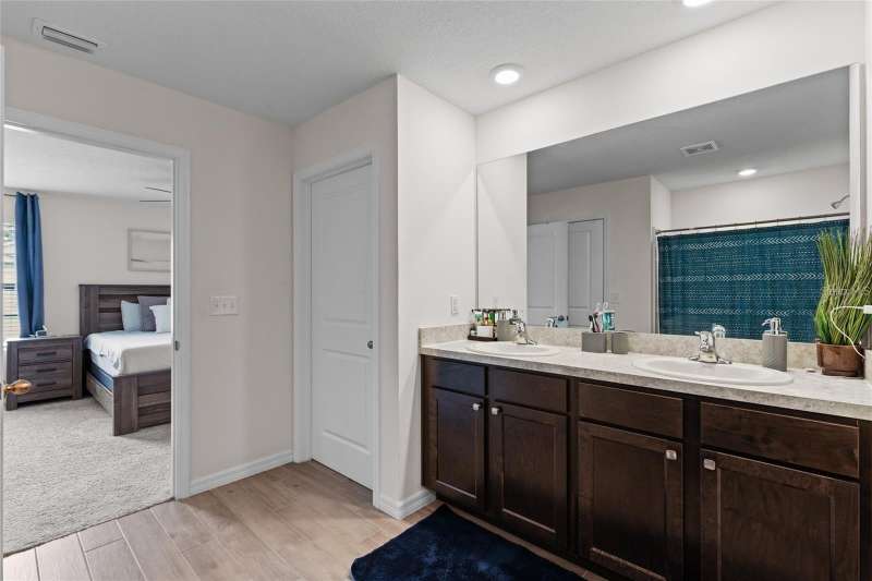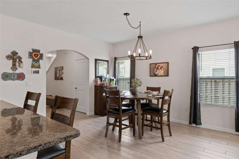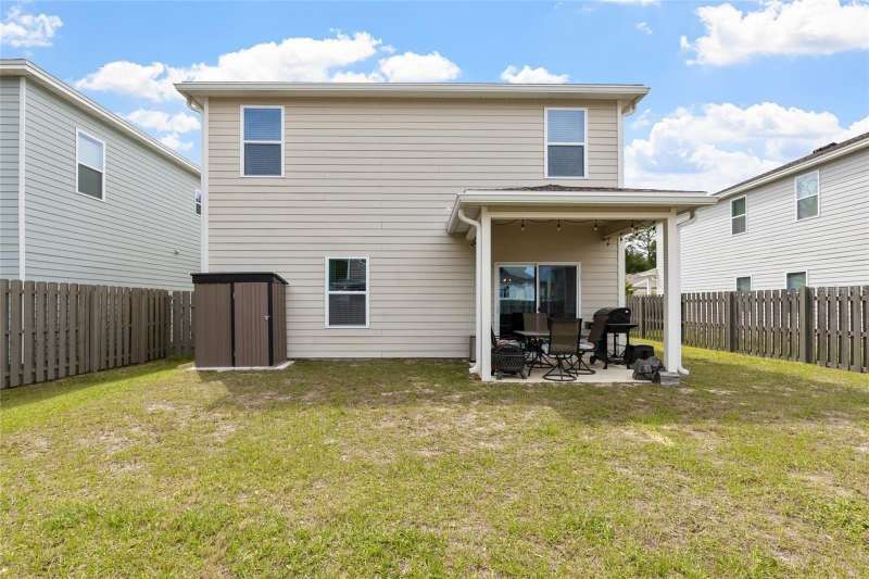 Step into this almost new home nestled within the Arbor Greens community at the heart of Jonesville. Boasting five bedrooms and three bathrooms, this spacious home is primed for immediate occupancy, seamlessly blending contemporary elegance with the tranquility of suburban living. As you enter, be greeted by an expansive interior adorned with low-maintenance wood-look tile floors, crafting an inviting atmosphere throughout. The kitchen features granite countertops, stainless steel appliances, a farmhouse sink, breakfast bar, coffee bar and a generously sized pantry for all your storage needs. Designed with entertainment in mind, the open-concept layout effortlessly connects the kitchen, dining, and living areas, forming a dynamic space for gatherings and relaxation. The owners have tastefully upgraded fixtures, added shelving, installed a paver driveway & gutters, and other finishing touches, setting this home apart from new construction. Retreat to the primary suite, complete with a spacious ensuite bathroom and a walk-in closet, offering a private sanctuary for unwinding. With one bedroom and bath downstairs and four bedrooms and two bathrooms upstairs, this layout offers convenience and privacy. Upstairs, a roomy laundry area with included washer and dryer, along with extra shelves and storage, adds to the home's functionality. Upstairs is also home to some extra space perfect for a play area or study nook. A sliding glass door leads to the covered patio, extending the living space outdoors. The fully fenced yard invites endless outdoor enjoyment, whether it's hosting barbecues, gardening, or simply soaking in the Florida sunshine. Conveniently situated near Gainesville, residents will appreciate easy access to top-rated schools, Tioga Town Center, dining options, parks, and more. Plus, residents can take advantage of community amenities such as the pool, clubhouse, CLAY ELECTRIC, and front yard maintenance provided by the association. Don't miss out on the opportunity to embrace quintessential Florida living at 1425 NW 136th Drive. Schedule your private tour today and discover your new dream home!