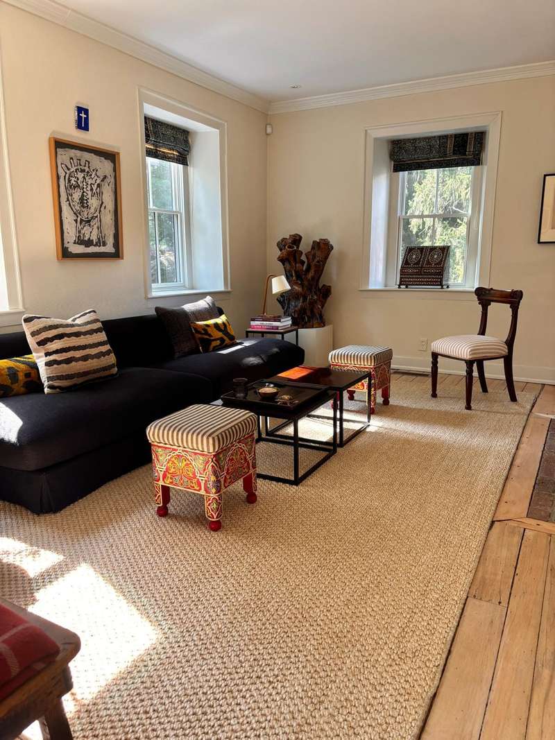 Nestled in the quaint hamlet of Clinton Corners, this rare and tasteful 18th-century Georgian stone house offers classic proportions and timeless charm on beautifully established, landscaped grounds. The home seamlessly blends original architectural detailsincluding preserved woodwork, deep sill windows, six fireplaces, refinished floors, and classic Georgian symmetrywith modern updates such as central air, new windows, and a dramatic wall of windows overlooking the terrace. A 10-foot-wide hallway runs the length of both floors, with Dutch doors at either end, leading to well-appointed rooms including a formal living room, dining room, TV/family room, and a large kitchenall with fireplacesplus a full bathroom on the main level. The attached cottage adds functionality with a mudroom/laundry area, second kitchen, sunroom, studio space, and an additional bedroom and bathroom on the upper level. In the main house, the second floor features four spacious bedrooms and two full bathrooms. Surrounded by mature trees, high fencing, and rolling countryside, this meticulously maintained property is just 10 minutes from Millbrook, 20 minutes from Rhinebeck, and close to all that the Hudson Valley has to offermaking it the perfect full-time residence or idyllic weekend retreat.