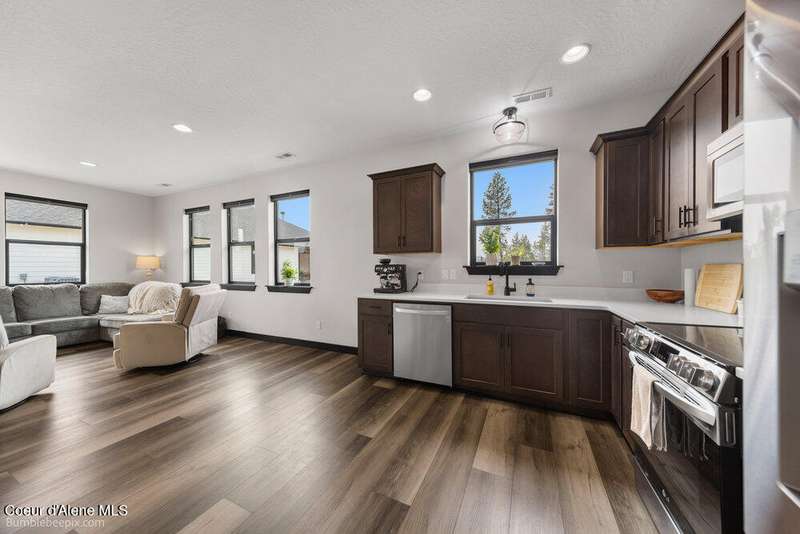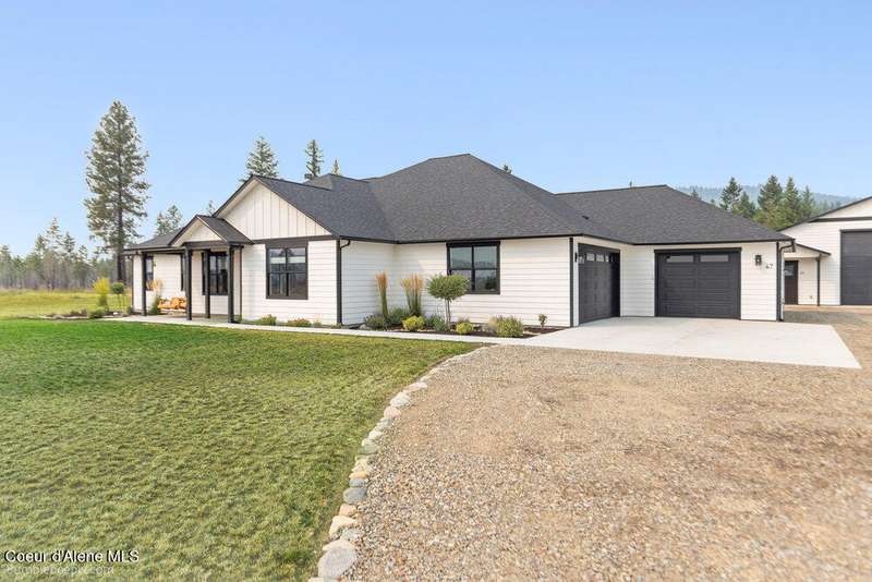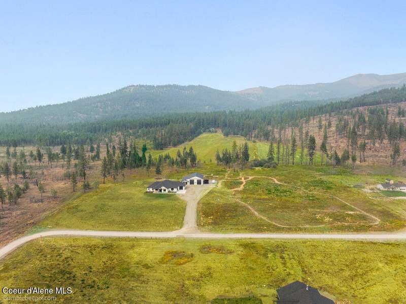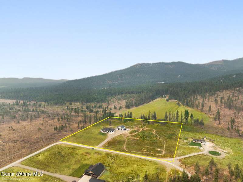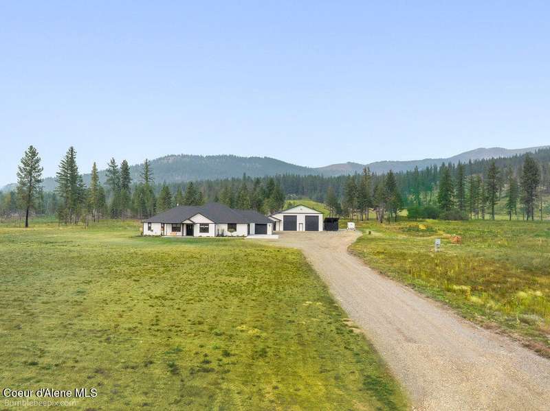Welcome to this exceptional,10 acre property featuring a meticulously maintained 4 bdrm, 2.5 bth main house and a separate 1 bdrm, 1 bth ADU. The main residence boasts a grand entry, open-concept great room with 9-foot ceilings, a high-efficiency wood-burning stove with granite facing, and a elegant tray ceiling. The gourmet kitchen is equipped with Huntwood cabinets, quartz countertops, two refrigerators, a built-in oven/microwave combo, and a 36-inch gas stovetop with a matching hood vent. All 4 bedrooms include walk-in closets, and the primary suite offers a custom oversized tile walk-in shower, a separate soaker, tub, dual sinks, and ample storage. Additional features include an oversized laundry room, covered entry, covered patio with a cedar tongue-and groove ceiling, and an oversized attached 3 car garage. Beyond the main house, discover a spacious 40'x60' shop that is fully insulated and heated. Property backs up to specialty land and features breathtaking 360 degree views.