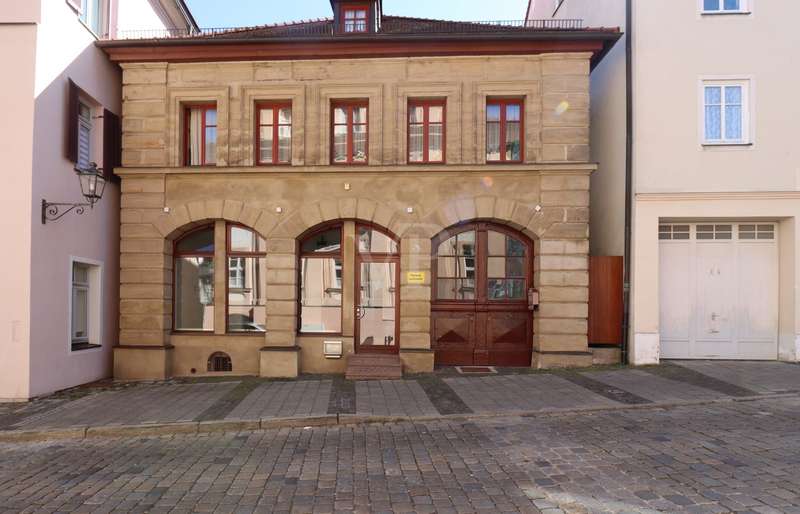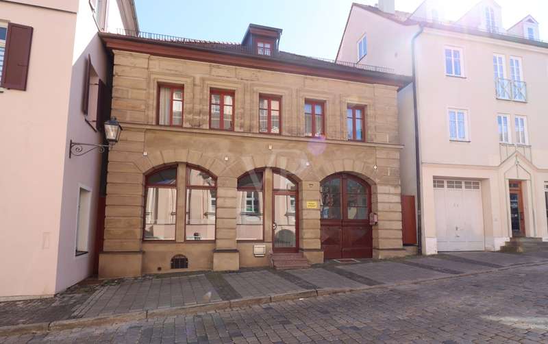 This centrally located commercial property with approx. 140 m² is located on the first floor of a residential and commercial building and can be used in a variety of ways. The two large shop windows offer you optimal opportunities to draw attention to yourself and present your company. Immediate use as office space is possible at any time. It is also perfectly conceivable to set up a café or similar. Alternatively, other uses would also be possible, such as a hairdresser, training rooms, studio or agency office for consulting service providers. The commercial unit is also well suited for courses such as yoga or EMS, or for nutritionists who need meeting rooms for regular meetings with their clients. The property has a spacious sales room, which can also be used as an open-plan office. Adjacent to this is the unit's kitchen. A new kitchenette and a lounge for employees can be set up here. The bright conservatory with glass roof is ideal as a waiting area for your customers. Separate sanitary facilities are naturally located at the rear of the property. The spacious meeting room, which can also be used as an additional office, is also located here. The offer is rounded off by the storage room and further storage space in the directly accessible basement. The entire unit is laid out with easy-care flooring. Of course, a different floor covering can be laid if desired. The store is easy to reach for walk-in customers as well as for a regular customer base, as it is located directly in the old town of Ansbach. The premises are available immediately. VAT opting is desired. Convince yourself of the possibilities of this commercial space during a personal viewing on site - we look forward to seeing you.