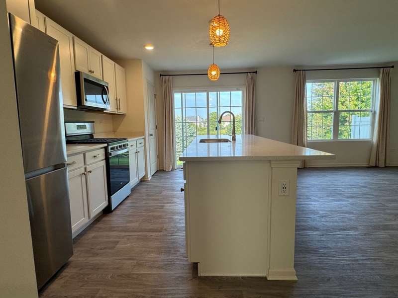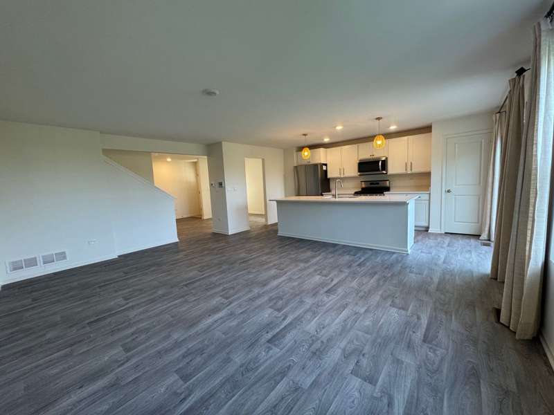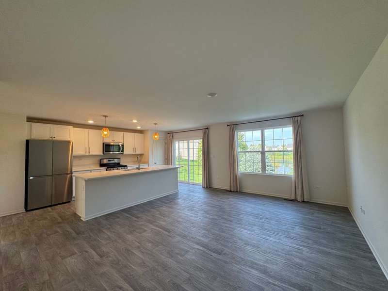 Welcome to this North facing End unit that feels like a single family home! It is a spacious and inviting 1,889 square foot home nestled in a serene neighborhood. This beautifully maintained property offers 3 bedrooms and 2.5 bathrooms, and a loft providing ample space for comfortable living. The open modern concept design seamlessly blends the living, dining, and kitchen areas, perfect for both relaxation and entertaining. Large windows throughout brings in natural light, creating a warm and welcoming atmosphere. The kitchen features modern steel appliances, generous cabinet space, and a convenient breakfast bar overlooking the water view! The Primary Suite is a true retreat, with a spacious layout, walk-in closet, and a private en-suite bathroom with dual sinks, and a separate shower. Two additional bedrooms offer plenty of room for family or guests. A convenient half-bath is located on the main floor for easy access. The home also includes a two-car garage, providing extra storage and parking. Located in a quiet cul-de-sac, this home offers a peaceful environment with nearby parks, shopping, dining, and excellent schools. With easy access to major highways, you'll have quick commuting options. Don't miss the chance to call this lovely home yours. Schedule a tour today!