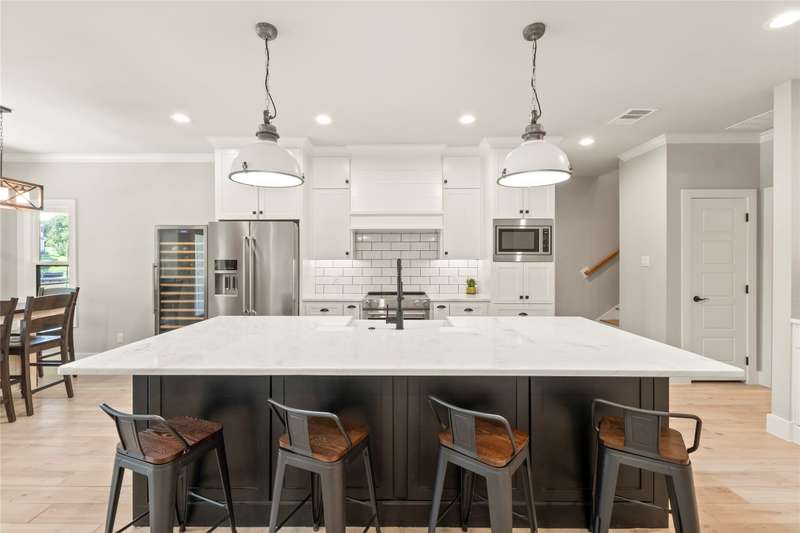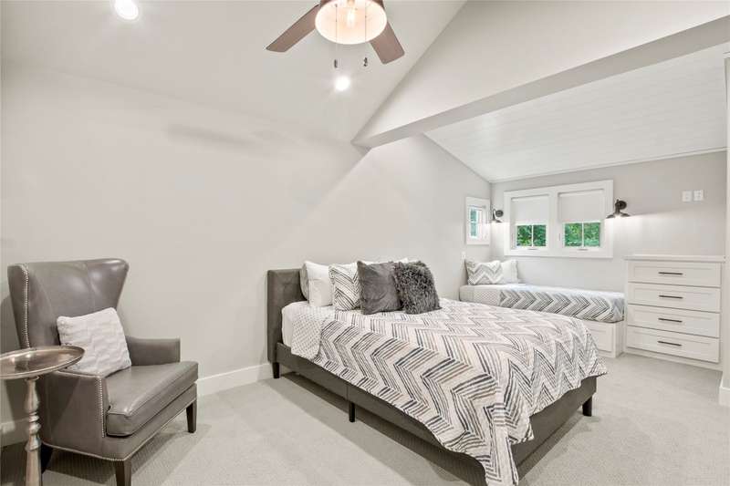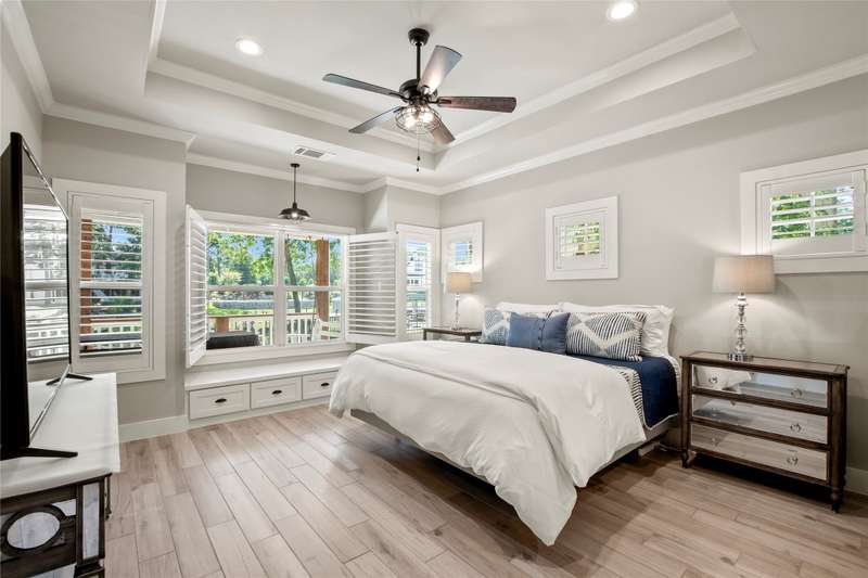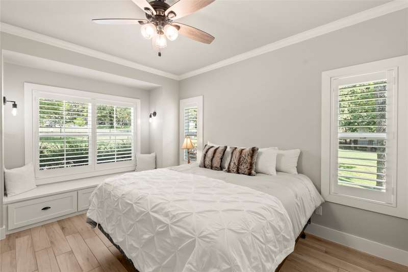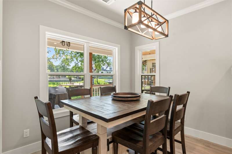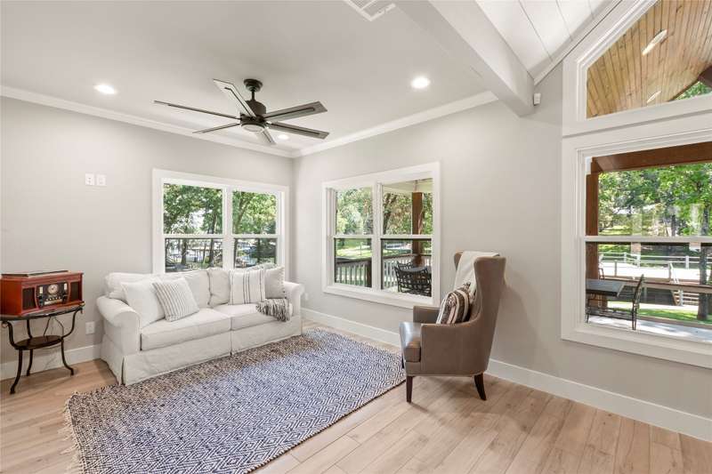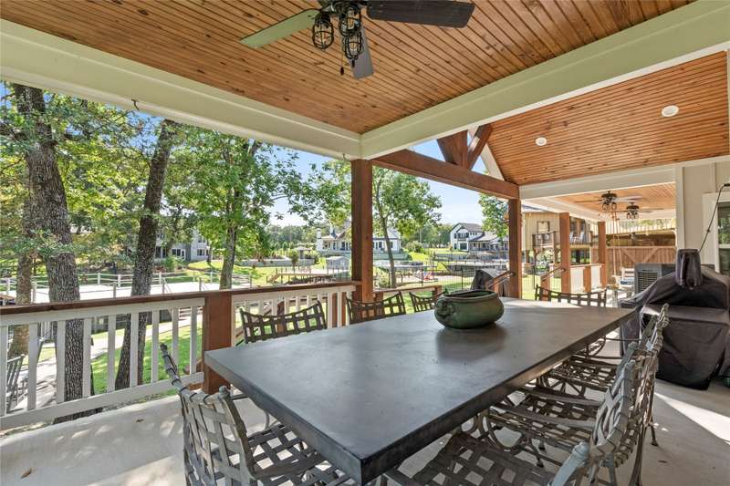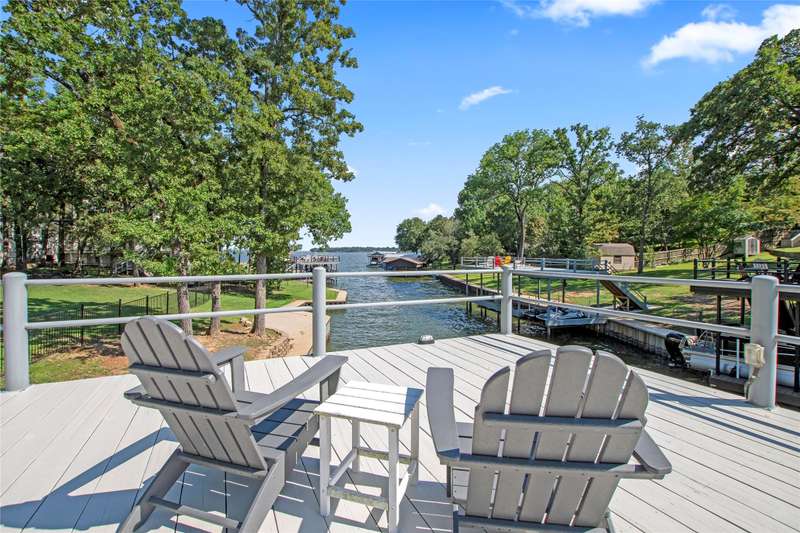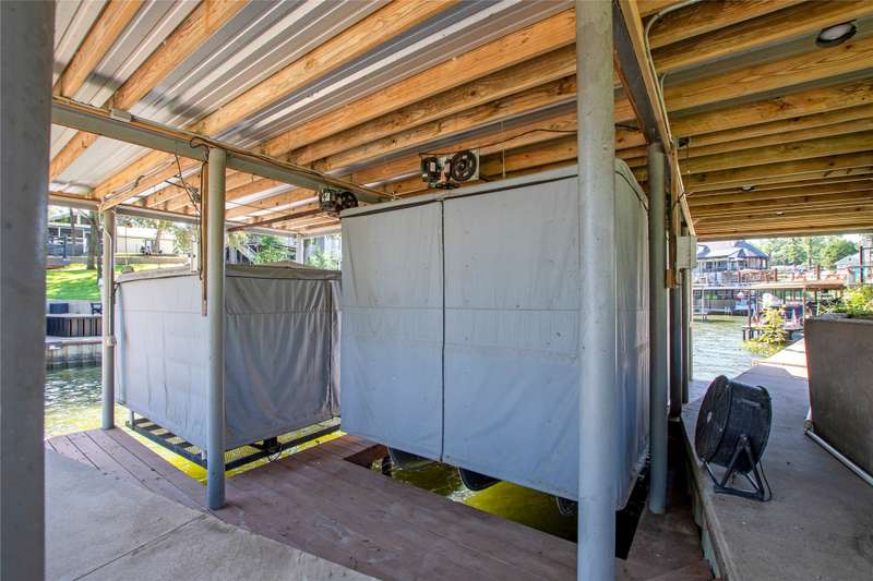 Experience lakeside luxury in this private gated estate, perfectly situated on two fenced lots totaling over three-quarters of an acre with approximately 200 feet of serene shoreline. This 5-bedroom, 3 full bath, 2 half bath Contemporary Craftsman-style home offers 3,063 square feet of refined living space, showcasing a Hardiboard exterior with cedar accents and standout curb appeal. Inside, the main level features three bedroomsone currently serving as an office with a closet and half bathalongside two full baths. The spacious living area boasts vaulted shiplap ceilings, crown molding, and a striking stone fireplace, complemented by a cozy reading nook and a charming built-in dining hutch. The chefs kitchen is a dream, complete with a large island with seating, quartz countertops, farmhouse sink, stainless steel appliances, and abundant cabinetry. The waterside primary suite features plantation shutters, a walk-in tile shower, soaking tub, dual vanities, and an oversized walk-in closet. Throughout the main floor, wood-look tile flooring adds warmth and durability. Upstairs, the versatile family bunkhouse includes a large bonus room with three built-in twin beds, an additional bedroom with a built-in bed, and ample space for more guests, supported by a full and half bath. Outdoor living is exceptional, with a covered patio featuring a wood ceiling, a composite deck, multiple patios for dining and relaxationincluding one with a firepitand a boathouse on a protected cove with automatic lifts, covers, and a party deck offering views down the cove to open water., Wrought iron fencing with an electric gate, an oversized 2-car garage, extended driveway, and a lake pump-fed sprinkler system complete the property. The second lot offers ample space to add a garage, pool, or pickleball courtor even a second boathouse with a TRWD permit. Furnishings and watercraft are available separately.