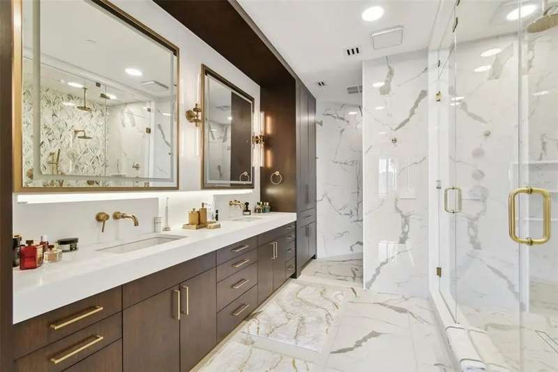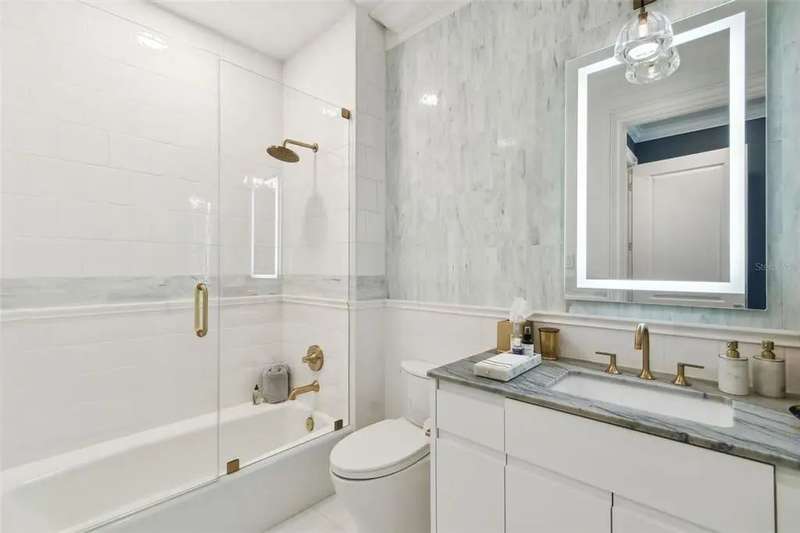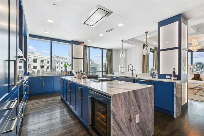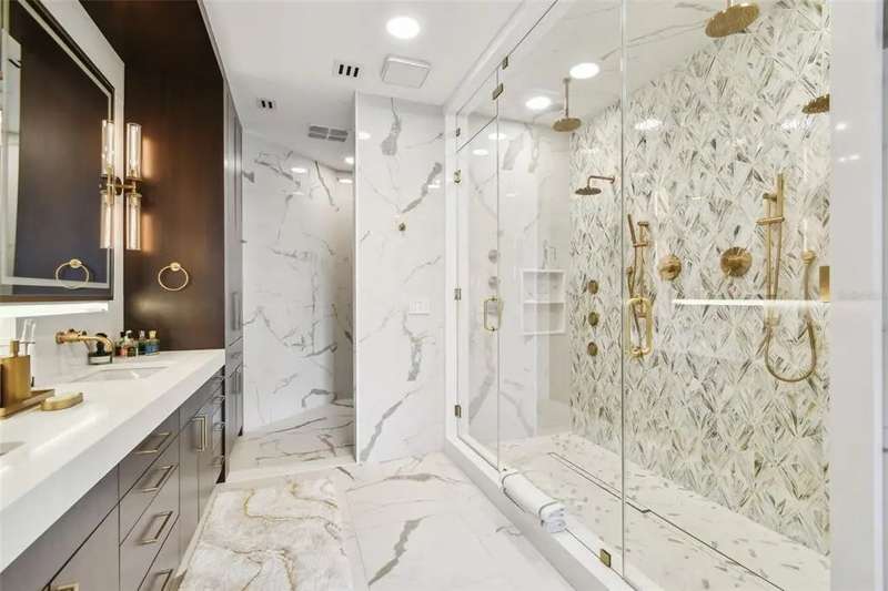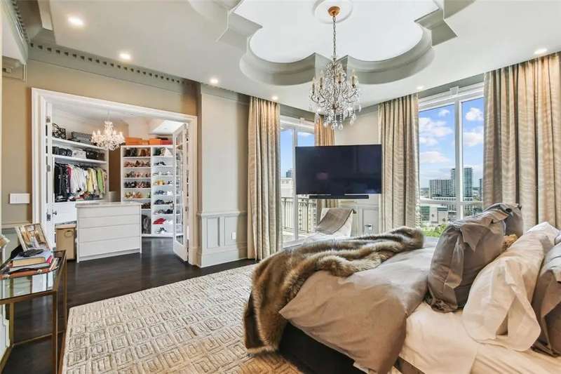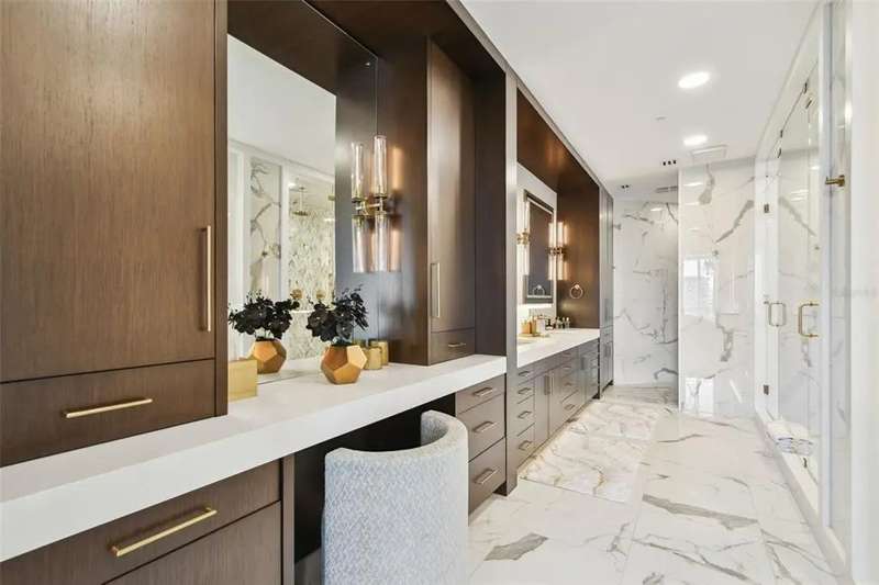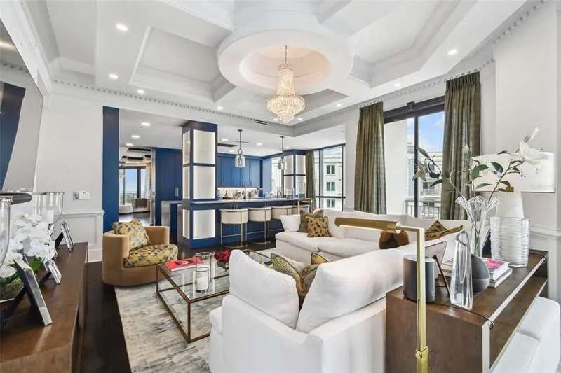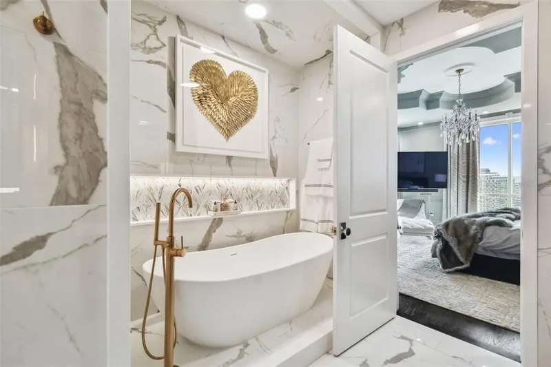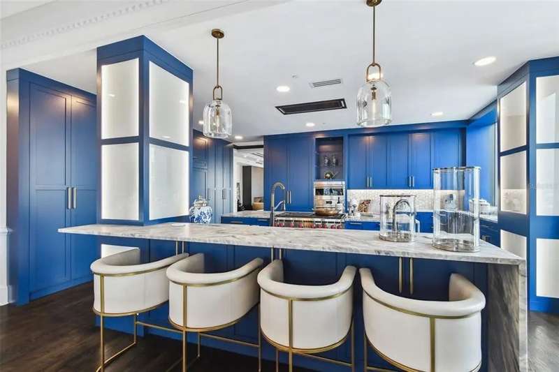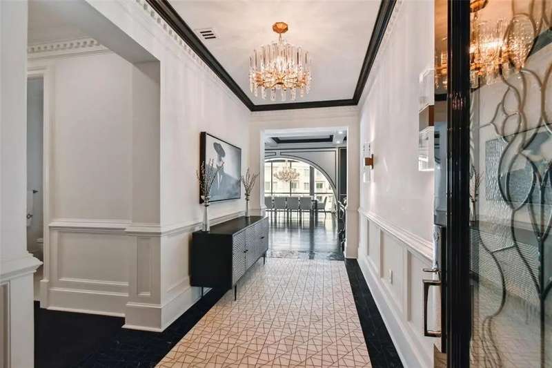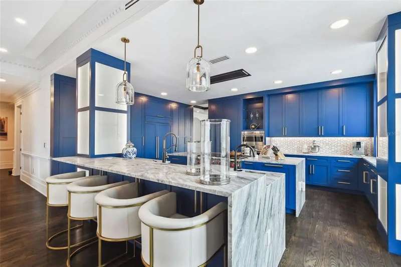 Poised atop the 20th floor of The Plaza, this extraordinary 3,980-square-foot penthouse is a masterclass in refined living. Thoughtfully reimagined in 2023, the residence blends impeccable craftsmanship with sweeping views—capturing the energy of downtown Tampa to the north and the serene beauty of Hillsborough Bay to the south. A private elevator opens to a dramatic marble foyer anchored by a crystal chandelier, leading into formal living and dining rooms adorned with custom millwork, archways, fireplace, and access to a private balcony with downtown water and skyline views. Rich wood and marble flooring, coffered ceilings, and detailed wainscoting underscore the residence’s elevated aesthetic. The chef’s kitchen is as functional as it is striking—featuring waterfall marble countertops, a Wolf 48" dual-fuel range, Sub-Zero appliances, dual dishwashers, farm and prep sinks, bar seating with under-counter storage, and ample space for both hosting and everyday living. A secondary living area offers a more intimate setting, complete with its own chandelier and access to a second balcony with bay views. The primary suite is a true retreat, framed by floor-to-ceiling windows and offering balcony access, a custom walk-in closet with island storage, and a spa-inspired bath with dual vanities, built-in dressing table, soaking tub, and a walk-in marble shower with four shower heads and body jets. Two additional bedrooms provide flexible accommodations—one with an en-suite bath, LED-lit vanity, walk-in closet, and tilt window; the other perfectly suited for use as a spacious office or guest room. A full laundry room with custom cabinetry adds everyday convenience. Additional features include a Brilliant Smart Home system, three deeded parking spaces (#229, #230, #107), and two climate-controlled storage units (#2 and #3). The Plaza’s renowned amenities include 24-hour concierge and valet, resort-style pool and spa with cabanas, fitness center, billiards room, guest suites, and meeting rooms. HOA includes internet, water, trash, security, insurance, recreational facilities, and more. This residence represents a rare opportunity to own a top-tier penthouse in one of Tampa’s most prestigious addresses.
