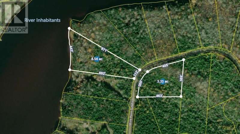 Embrace Tranquility with Two Stunning Lots for Sale! Discover the perfect opportunity to own two exceptional lots in a serene setting, ideally situated for those seeking peace and natural beauty. Only minutes away from Strait Richmond Hospital and 15 minutes from the Town of Port Hawkesbury. The first lot spans 4.47 acres and boasts an impressive 415 feet of waterfrontage on the picturesque Lower River Inhabitants. Here, you can enjoy activities such as fishing, kayaking, or simply relaxing by the waters edge while taking in breathtaking views. Directly across the road, the second lot offers 3.28 acres of fully treed land, providing a wonderful canvas for your dream home or vacation getaway. This beautiful wooded area promises privacy and seclusion, making it an ideal retreat from the hustle and bustle of daily life. The combination of both lots creates a unique opportunity to enjoy the best of waterfront living while also having a spacious, serene sanctuary to call your own. Situated in a quiet area, these properties are perfect for nature lovers and those looking to escape into a peaceful environment. Dont miss the chance to own this incredible piece of paradise, where your dreams of a tranquil lifestyle can become a reality. Contact an agent today to schedule a viewing and explore the endless possibilities that await you! (id:2494)