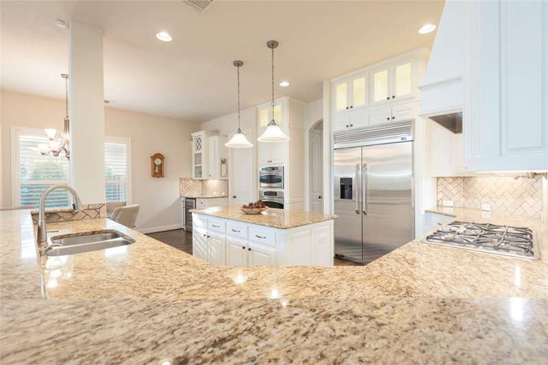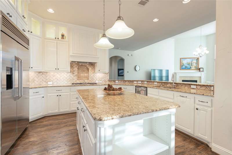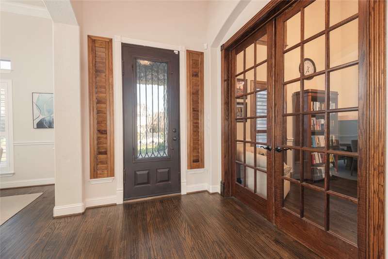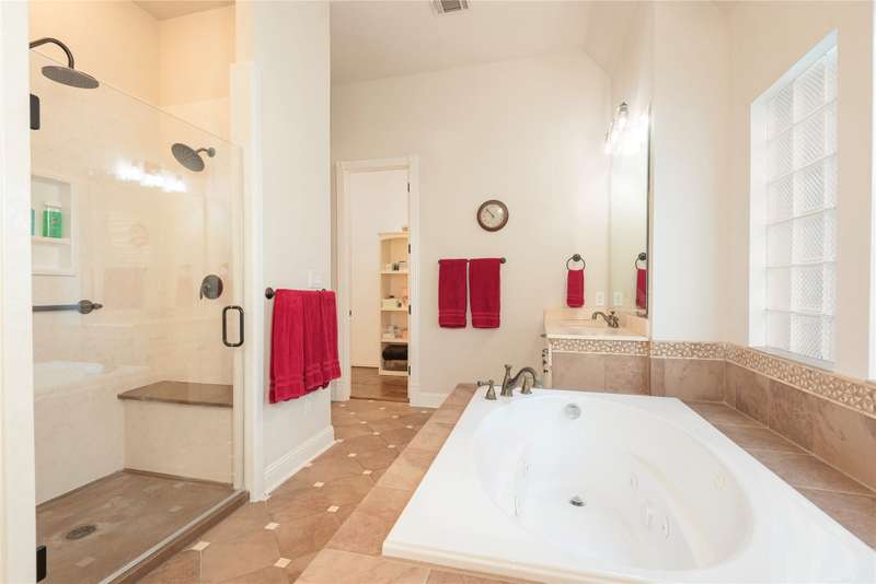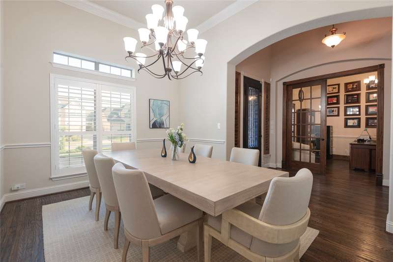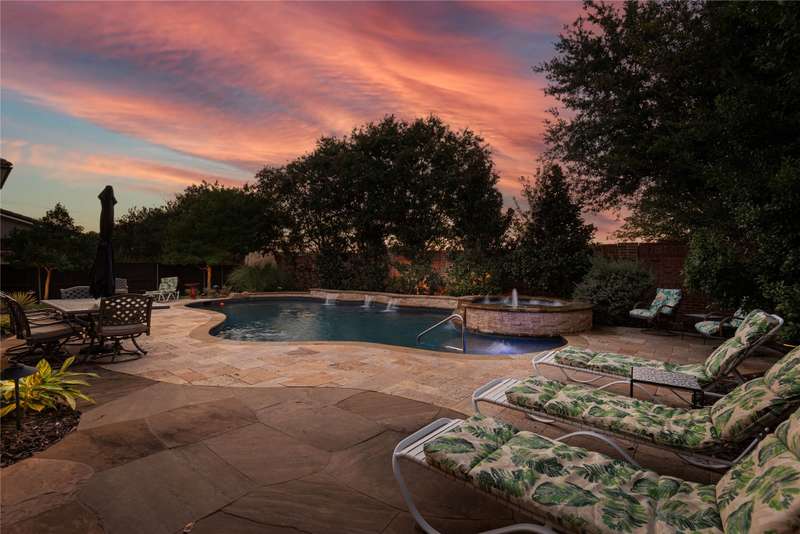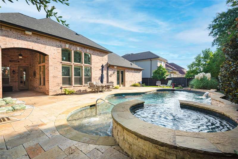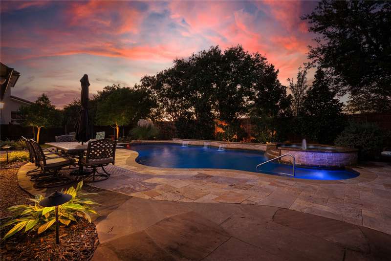 Rare 1 story Toll Brothers Custom with a sparkling pool and spa plus 3 car garage in popular Saddleridge in West Allen! Gorgeous drive up with Stone, Cedar and Brick elevation. High end features include a Custom Iron Front Door, Plantation Shutters, Nail Down Hardwood Floors, Solid Core 8ft doors and Tankless Water Heater! Private study with French doors. Elegant formal dining area. Spacious Family room has wood floors, soaring ceiling and gas fireplace. Amazing island kitchen has rich Granite Counters, Built-in Fridge, Stainless steel appliances, Built-in Wine Cooler, Gas Cook-top, Pot Filler & Custom Cabinetry! Huge Primary Suite with pool Access and luxurious bath with Oversized Shower, Jetted Tub, Separate Vanities and a 20 x 6 Closet! Large Secondary Bedrooms all have Wood floors and one is ensuite and could be 2nd Primary. Private backyard oasis has a sparkling pool and spa, Extended covered patio with Built-in Grill and Fridge and custom landscaping. Perfect location close to all of Allen Shopping & Dining!
