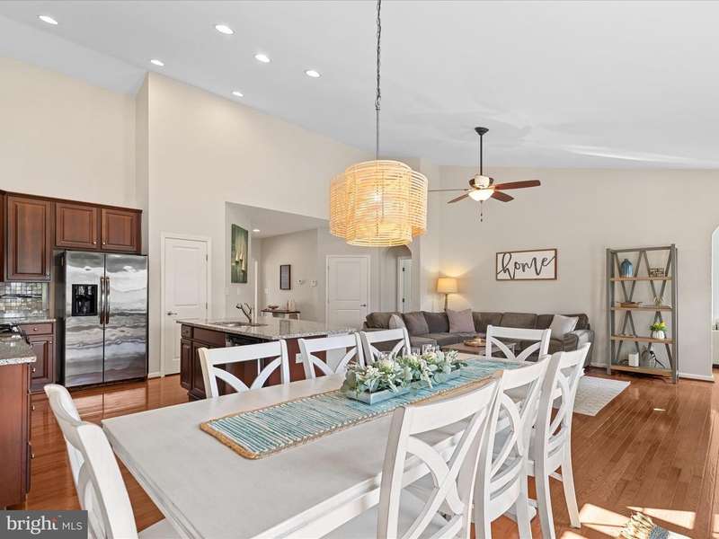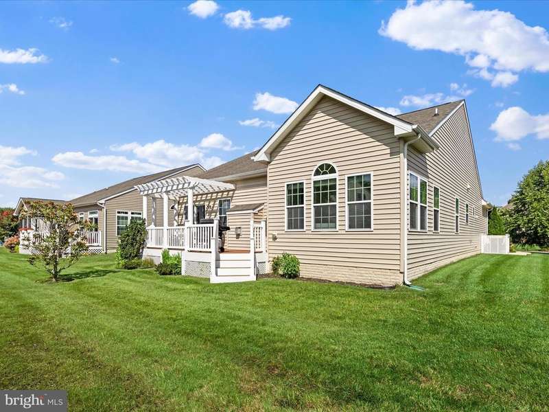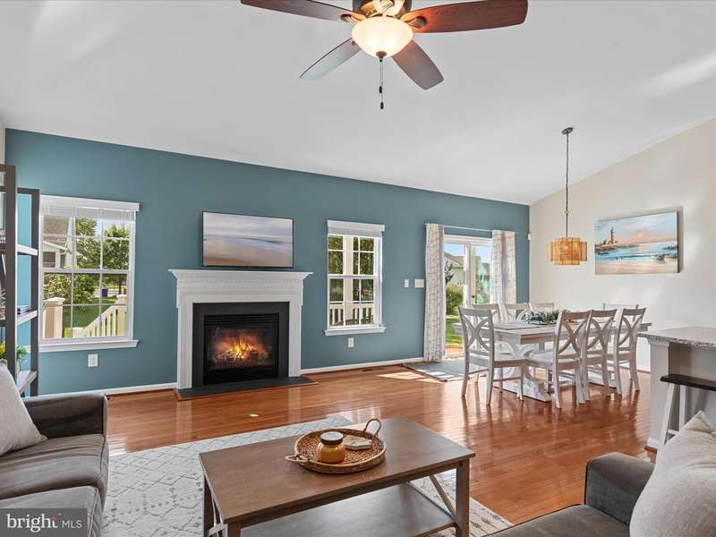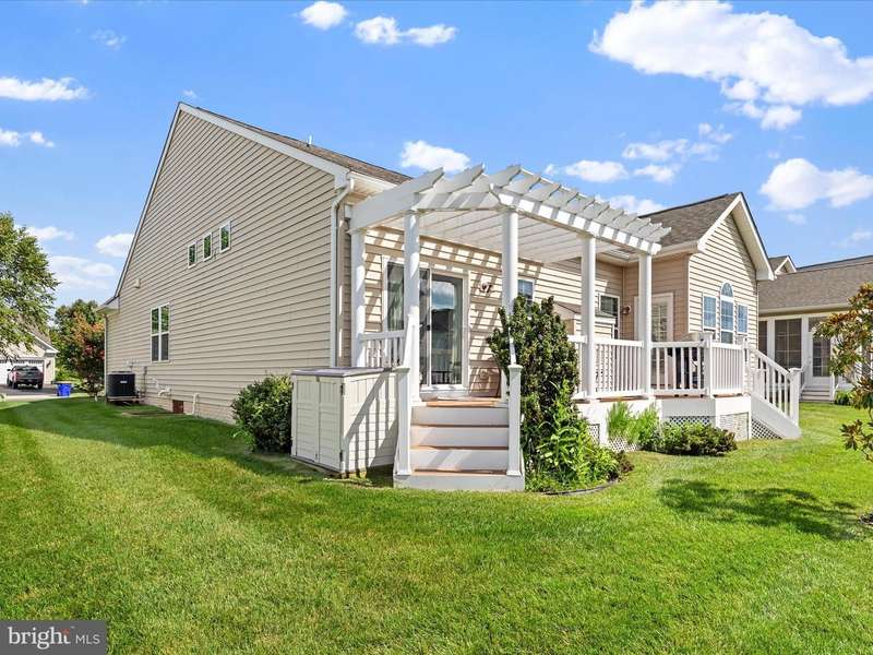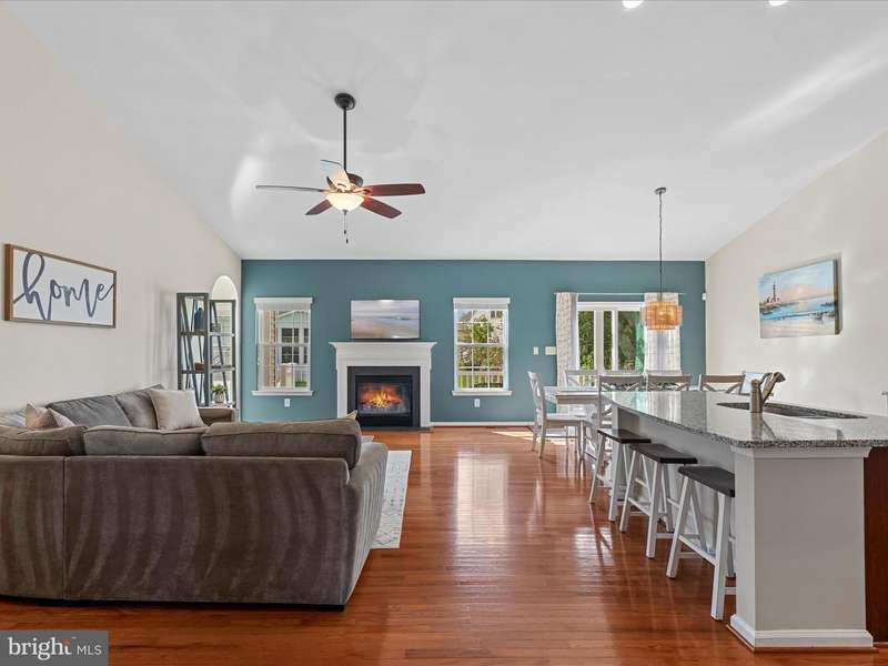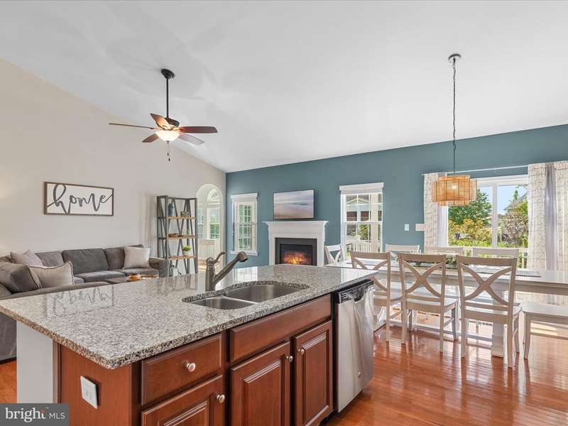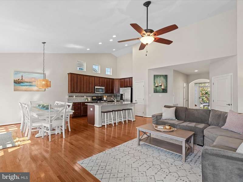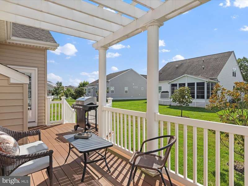 Welcome to this beautifully landscaped contemporary coastal home in the sought-after Vincent Overlook community. From the moment you arrive, the curb appeal is undeniable, and stepping inside, you'll be greeted by gleaming hardwood floors that flow throughout the entire home. The foyer features an elegant tray ceiling with crown molding, setting the tone for the refined design within. The home is complemented by graceful arched doorways throughout. The open-concept main living area boasts soaring vaulted ceilings, abundant recessed lighting, a ceiling fan, and a cozy gas fireplace. The chef's kitchen is both stylish and functional, offering a large island with breakfast bar, granite countertops, 42-inch cabinets, tile backsplash with glass accents, stainless steel appliances, gas cooking, a pantry, and striking celestial windows above the cabinets that fill the space with natural light. Adjacent to the kitchen, the dining area features sliding doors to the rear deck, where you can relax and enjoy views of the tranquil pond. Just off the living room through an arched doorway, a bright sunroom with vaulted ceiling, Palladian window, ceiling fan, and an atrium door, leading out to the rear deck provides another inviting space for relaxing or entertaining. The primary suite is tucked away through an arched doorway and features hardwood floors, and a spa-like en suite with a soaking tub and separate shower. A small room off the living room (currently used as additional sleeping space) could possibly be converted into a spacious walk-in closet for the primary suite. Two additional bedrooms, a full hall bath, and a laundry room complete the main level. The outdoor living spaces include a rear deck perfect for enjoying coastal breezes, plus a two-car garage for convenience, and trash receptacle enclosure. Vincent Overlook residents enjoy access to a clubhouse, community pool, tennis courts, and a playground, all while being just minutes from Lewes, Rehoboth Beach, Downtown Milton shopping, dining, and area attractions.
