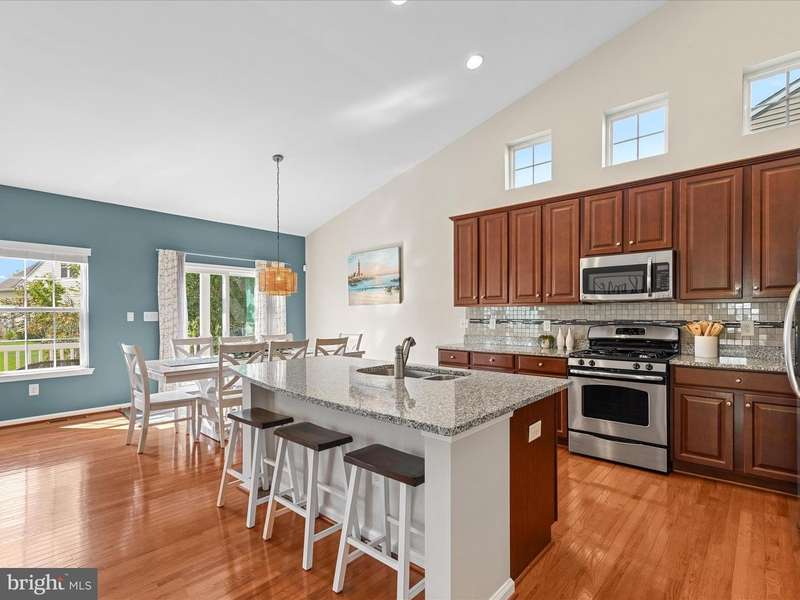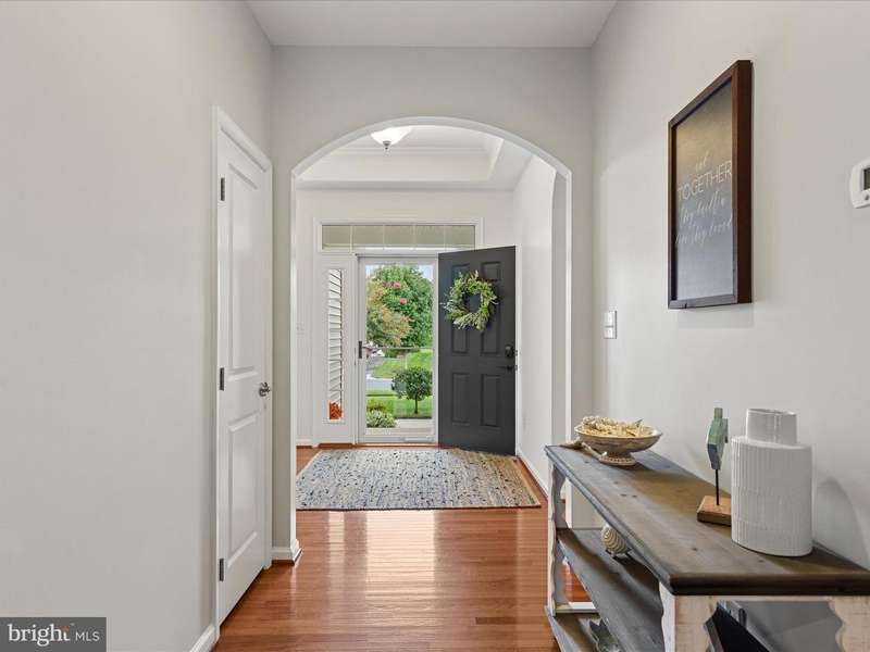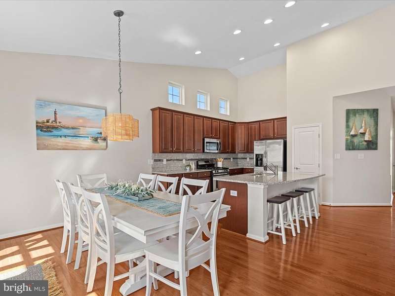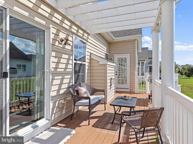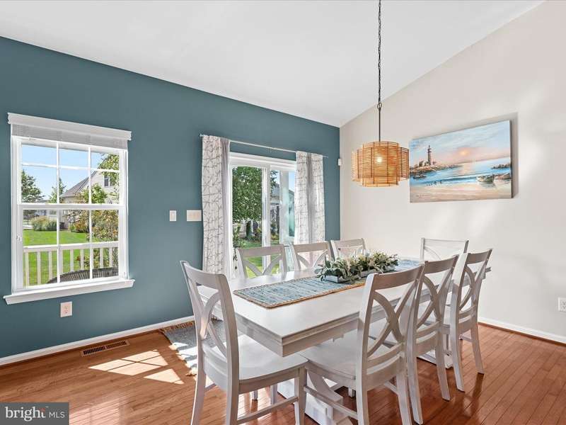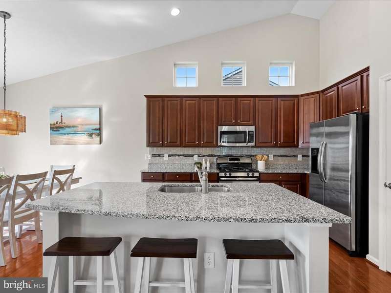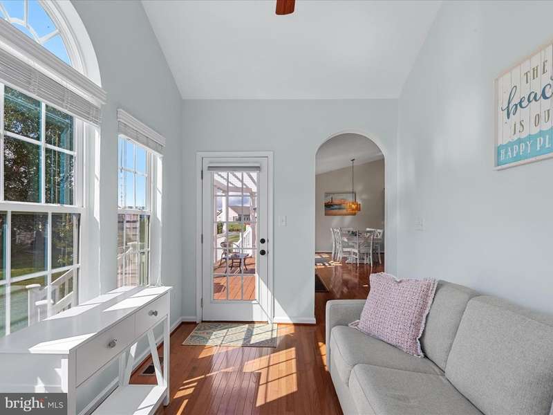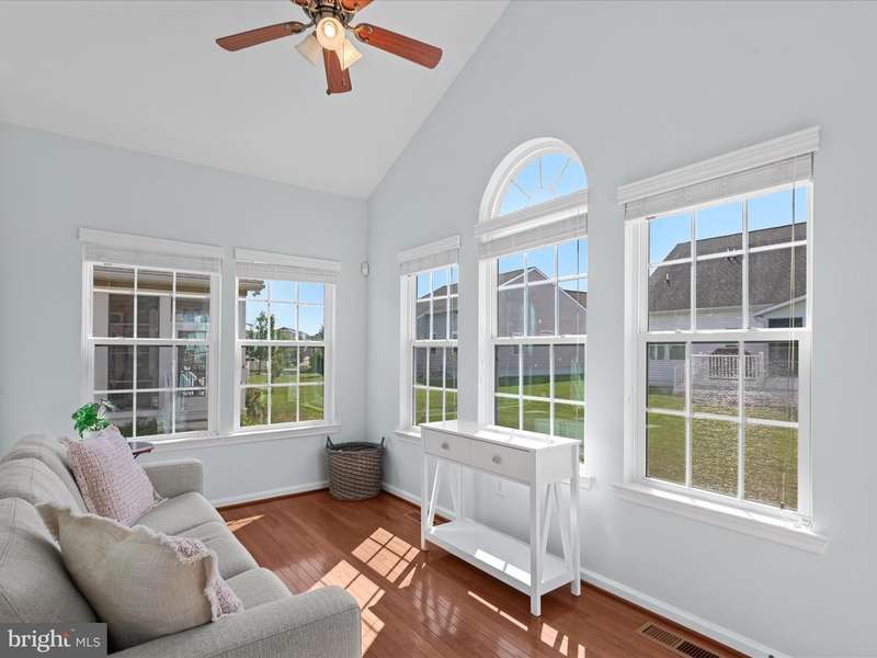 Welcome to this beautifully landscaped contemporary coastal home in the sought-after Vincent Overlook community. From the moment you arrive, the curb appeal is undeniable, and stepping inside, you'll be greeted by gleaming hardwood floors that flow throughout the entire home. The foyer features an elegant tray ceiling with crown molding, setting the tone for the refined design within. The home is complemented by graceful arched doorways throughout. The open-concept main living area boasts soaring vaulted ceilings, abundant recessed lighting, a ceiling fan, and a cozy gas fireplace. The chef's kitchen is both stylish and functional, offering a large island with breakfast bar, granite countertops, 42-inch cabinets, tile backsplash with glass accents, stainless steel appliances, gas cooking, a pantry, and striking celestial windows above the cabinets that fill the space with natural light. Adjacent to the kitchen, the dining area features sliding doors to the rear deck, where you can relax and enjoy views of the tranquil pond. Just off the living room through an arched doorway, a bright sunroom with vaulted ceiling, Palladian window, ceiling fan, and an atrium door, leading out to the rear deck provides another inviting space for relaxing or entertaining. The primary suite is tucked away through an arched doorway and features hardwood floors, and a spa-like en suite with a soaking tub and separate shower. A small room off the living room (currently used as additional sleeping space) could possibly be converted into a spacious walk-in closet for the primary suite. Two additional bedrooms, a full hall bath, and a laundry room complete the main level. The outdoor living spaces include a rear deck perfect for enjoying coastal breezes, plus a two-car garage for convenience, and trash receptacle enclosure. Vincent Overlook residents enjoy access to a clubhouse, community pool, tennis courts, and a playground, all while being just minutes from Lewes, Rehoboth Beach, Downtown Milton shopping, dining, and area attractions.