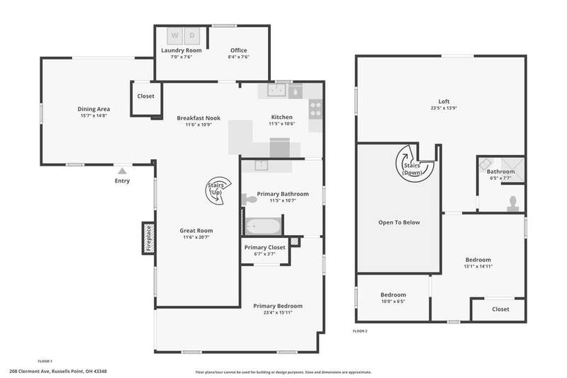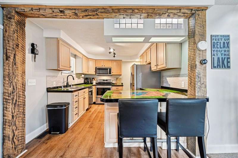 Welcome to your fully furnished, turn-key retreat or vacation rental just steps from the waters of Indian Lake! This beautifully updated home offers a relaxing hot tub, water views, and plenty of space to entertain or unwind. Inside you'll find a thoughtfully refreshed interior with all new wall and ceiling paint, new lighting, new blinds, and even some new flooring and kitchen updates. The main floor features a bright and open 2-story great room plus extra space in a game/dining room, offering ample square footage to host your guests with room to spread out while still being together. The upstairs sleeps many in the loft and bedroom spaces, and even includes a full bathroom for guests. This leaves you with a private owner's retreat - including a large bathroom - on the main floor. The kitchen shines with 2-year-old appliances, one-of-a-kind custom countertops, and plenty of cabinet space. Additional highlights include: newly added first-floor laundry room with new washer and dryer; spacious 2+ car detached garage with long driveway - ideal for storing lake toys, boats, or extra vehicles; fully furnished for a seamless, move-in or rental-ready experience; relaxing hot tub; deck with water views. All of this in a convenient location just steps from the lake or a short walk/drive to all of the Russells Point shops and restaurants! Whether you're looking for a personal getaway, a permanent home near the water, or a turn-key investment property, 208 Clermont Avenue delivers it all. This home is a part of a 100% Money Back Guarantee program, certain terms and restrictions apply. Don't miss your chance to call this beautiful property home--schedule your showing today!