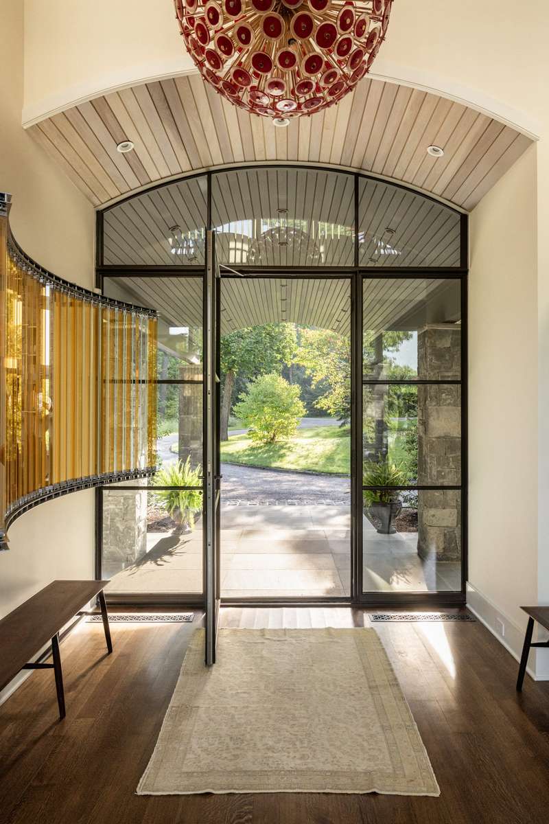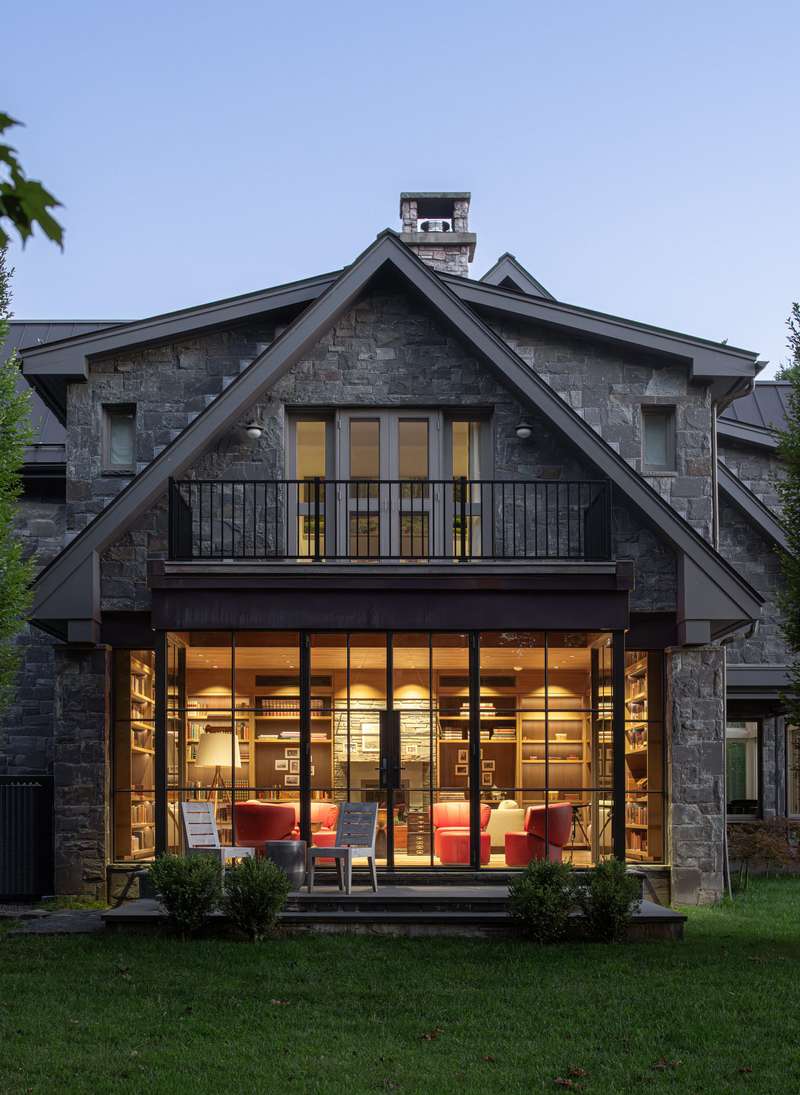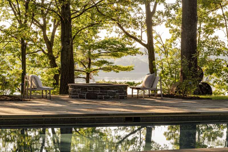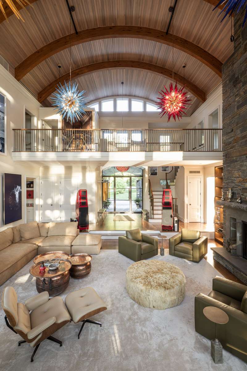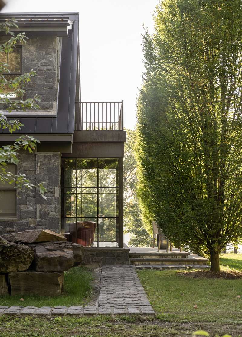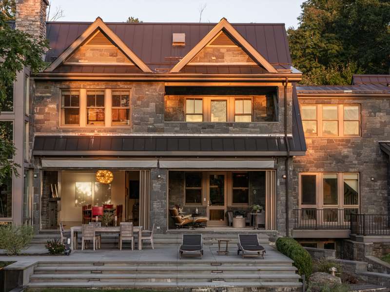 Stonecrest on the Hudson is a stunningly designed home on 16 inspiringly landscaped acres with extensive views of the river and the Catskills. A creation of stone, metal, and glass, the home, though imposing, inhabits its environment with seamless grace and is curated for comfort and meditative living. Many exquisite features make Stonecrest one-of-a-kind, impossible to duplicate. Upon approach, visitors notice the striking geometric roof lines and large portico. Inside, the home is open to light and nature through windows and soaring walls of glass. In the great room, forty-foot ceilings, a floor-to-ceiling stone fireplace surround, and curved transoms atop doors and windows make entry into Stonecrest a breathtaking experience. At the same time, there are many private spots for contemplation and quiet reflection that balance the grandeur of this remarkable home.In the south wing are a chefs kitchen with butlers pantry and a formal dining room that opens to a bluestone terrace. Top of the line appliances, honed granite countertops, and double sinks and dishwashers ensure that anything can happen in this room, from an afternoon snack to a formal dinner for 30 people. The butlers pantry has a second subzero refrigerator, a wine cooler, and sink. Also on this side of the house is an all-season sitting room and a mud room with its own covered portico for deliveries and access to the 3-car garage.On the north end of the home is a hallway art gallery, a private deck, an en suite guest bedroom, and best of all, a hidden library awaiting behind a secret door, with floor to ceiling windows, a fireplace, access to a private bluestone patio, and views of the river.The second floor can be reached by one of two gracious open stairways. A wide walkway that overlooks the great room extends the length of this second level. At one end is the primary suite that includes a private deck, a walk-through closet with separate dressing rooms and vanity space, and a spacious bathroom with jacuzzi and glass-bricked shower. The primary bedroom has windows on both sides with views of the river and sloping lawns. Next door is a second en suite bedroom that could also serve as a sitting room, den, or office.At the south side of the second story are two more en suite bedrooms, a media room, and entrance to an apartment annex with an open concept kitchen and living space, bedroom, and full bath. Perfect for employees or guests, this cozy space can be accessed from the back staircase for added privacy.On the lowest floor, a walk-out basement, an enormous space for creative pursuits, has easy access from inside or outside the home. Ample windows, a surround-sound system, and generous storage make this area versatile and convenient. Also on this level is a theater room and a second laundry/utility room.This property as it exists today cannot be recreated. For example, directly above the Hudson River, there is a resort-style saltwater swimming pool with stone pool house that includes a full kitchen and gathering space. Current zoning laws do not permit this kind of design nowadays.Countless stunning gems throughout the property include a reflecting pool with firepit and river views, an amphitheater facing the Hudson, a quarter-mile spiral labyrinth with stone paths divided by wild thyme, and a Koi-stocked pond with falling water. Seating areas dot the edge of the property above the river where spending hours watching the ships go by becomes a tranquil act of meditation.Though the home is an easy distance from charming Hudson Valley towns like Rhinebeck and a one-minute drive to the Rhinecliff Amtrak station, Stonecrest on the Hudson is as private and lost to time as an enchanted kingdom